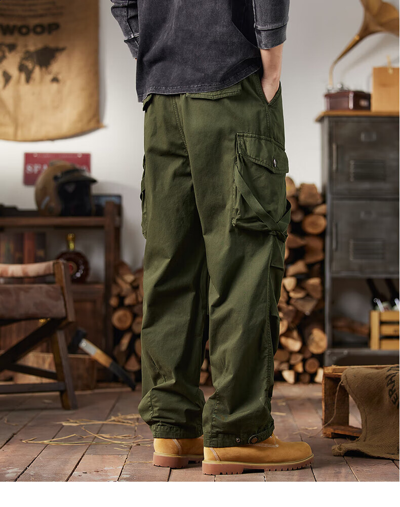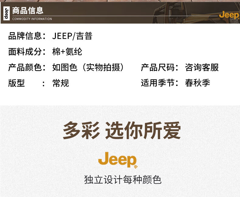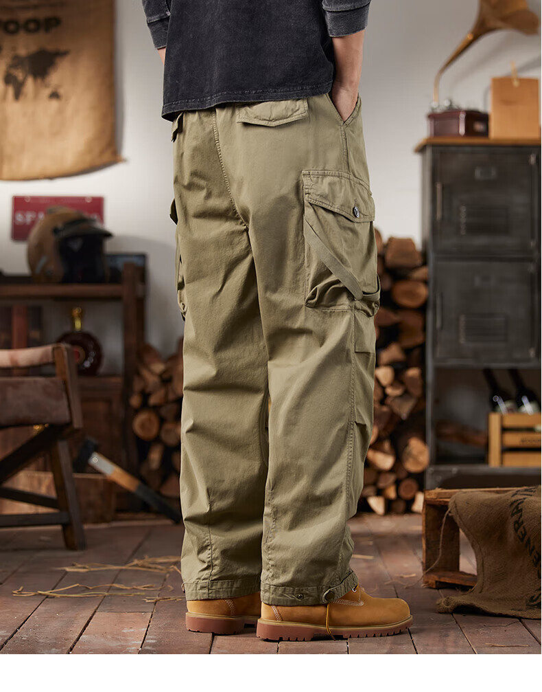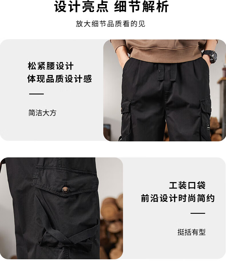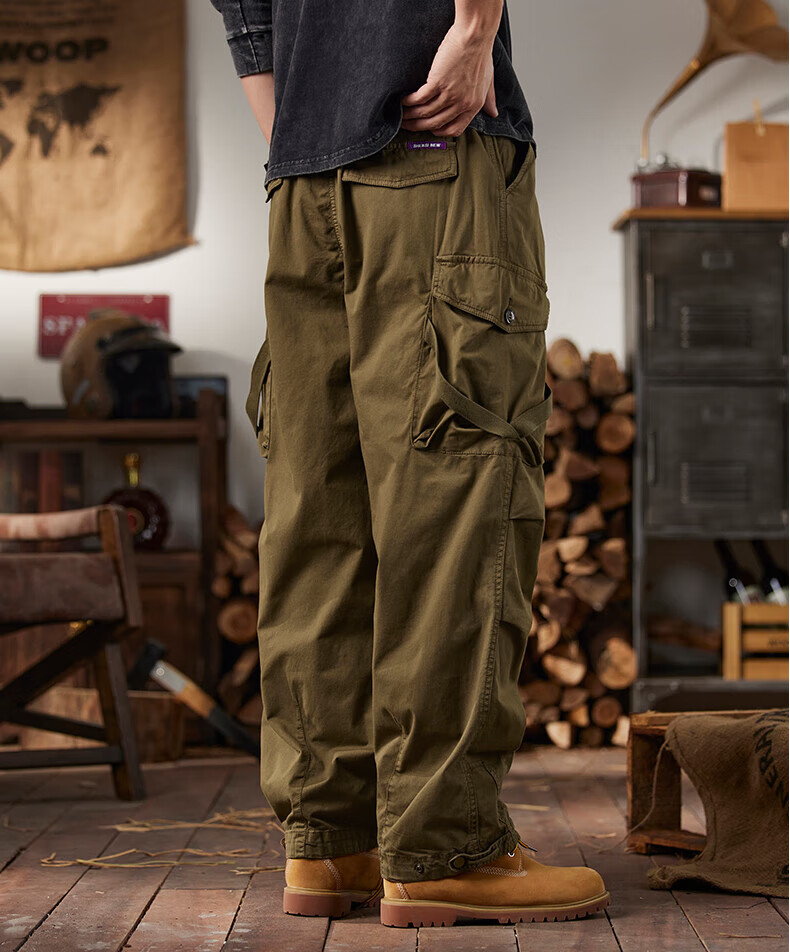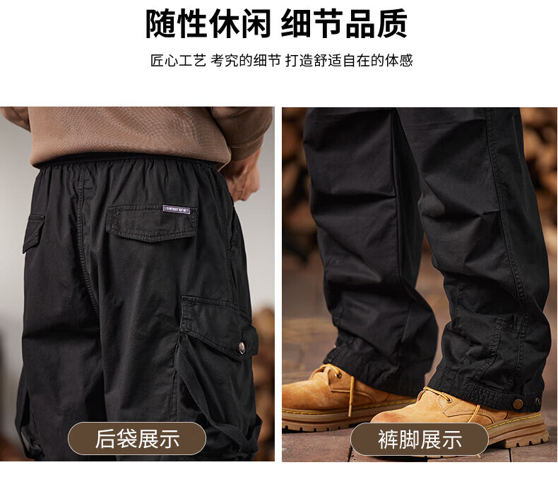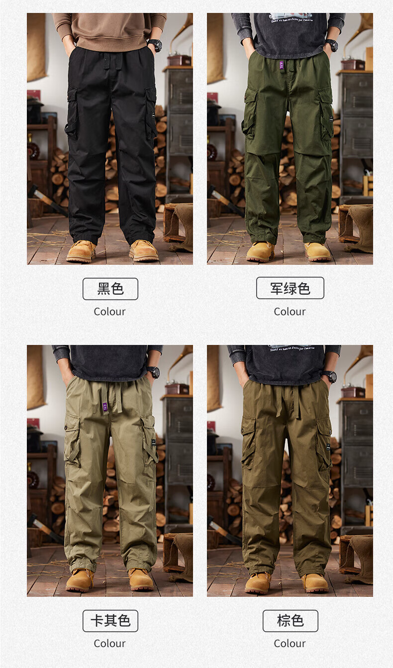 JEEP美国正品Jeep高端纯棉工装休闲裤春秋男士户外宽松多口袋阔腿长裤 1723卡其色 【官方正品】 3XL 【推荐体重180-200斤】