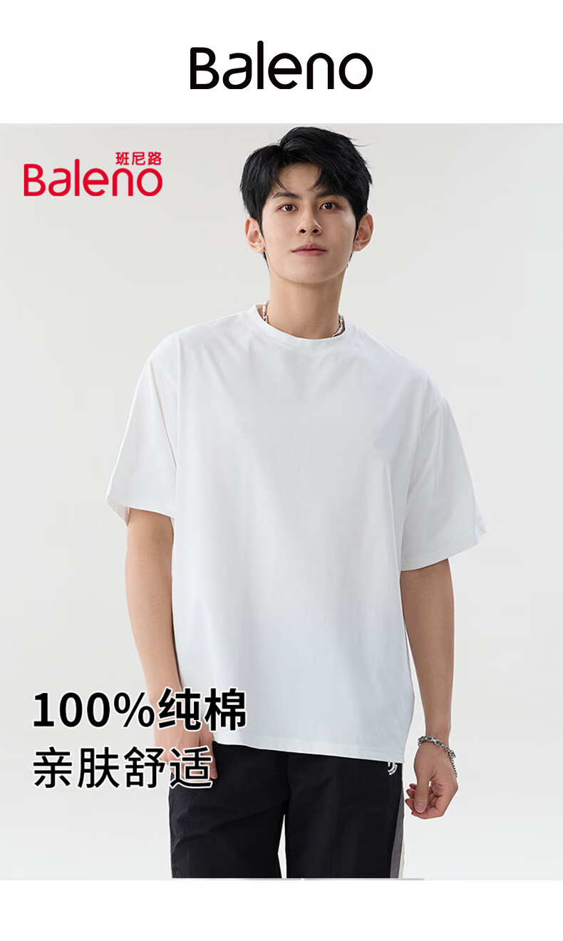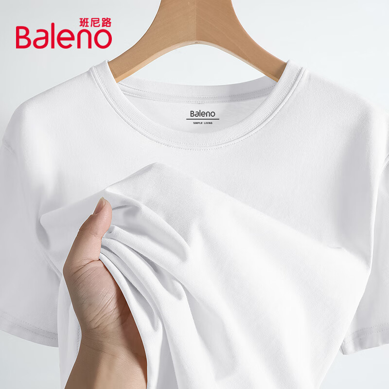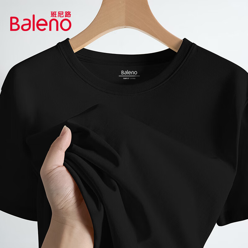 班尼路(Baleno)两件装短袖男夏季重磅纯棉t恤学生简约休闲百搭纯色男士半袖上衣