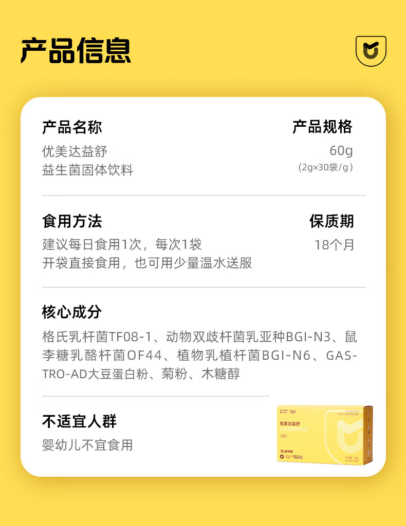 优美达华大基因益舒胃部益生菌粉成人儿童调营养理后生元