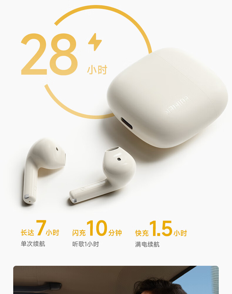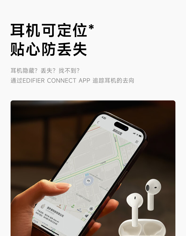 漫步者 ZERO AIR真无线半入耳式学生音乐通话运动时尚半入耳式运动长续航蓝牙耳机适合苹果华为小米手机 【定位防丢失+同声传译】云絮白
