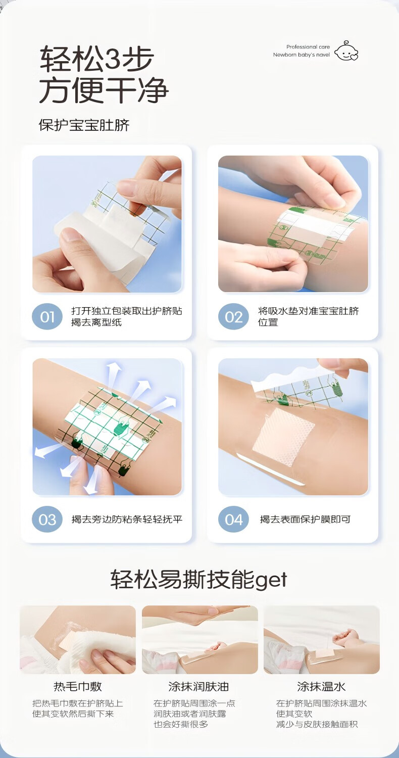 小蕴印象新生儿婴儿护脐贴宝宝洗澡游泳脐带贴透气肚脐贴疫医用创口防水贴 30片装【高品质&且划算】