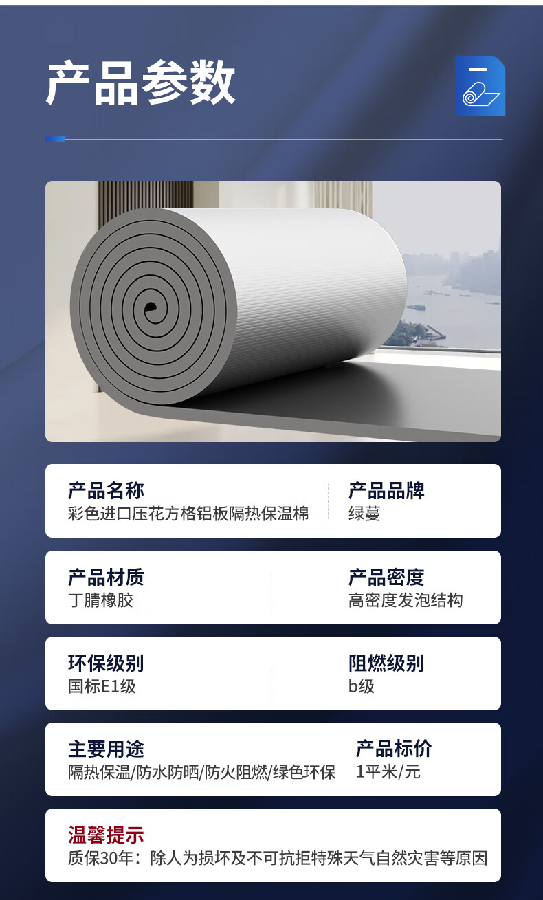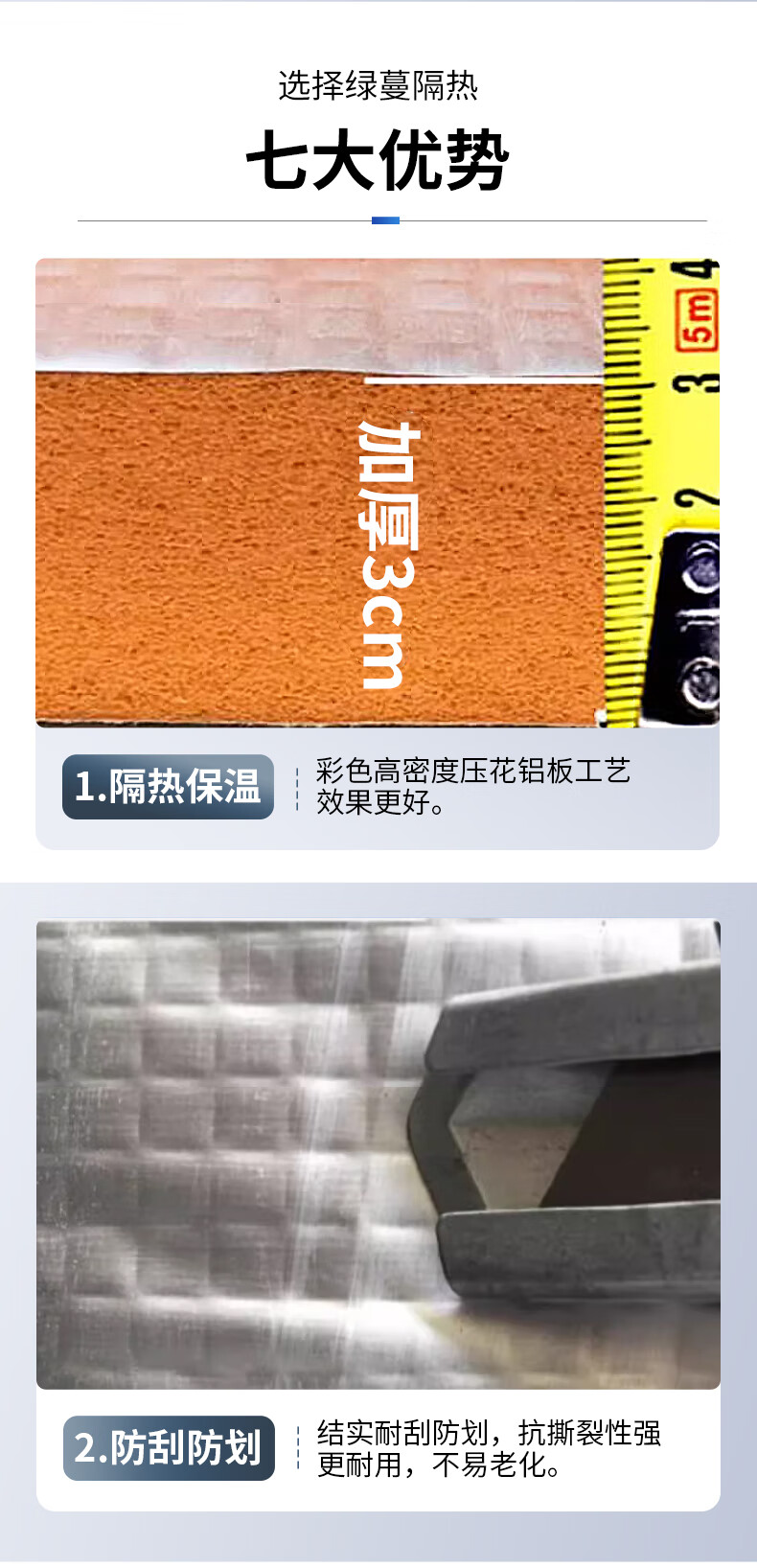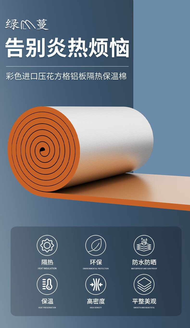 绿蔓(Lm)彩色隔热棉耐高温楼顶隔热板自粘防水隔热材料屋顶防晒阳光房保温 米白色10mm方格铝板自粘1平