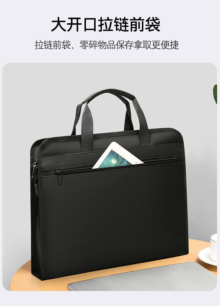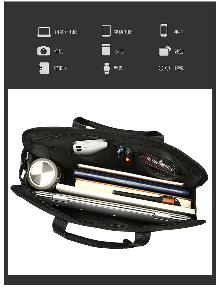 851公文包定制男士文件包a4文件袋拉链式手提包公文袋商务 灰色-带水杯位和笔插位 38*31*7(单位/CM)