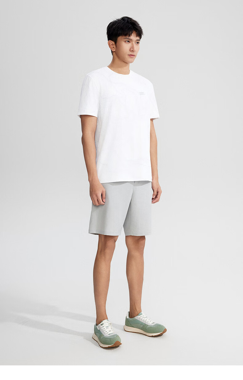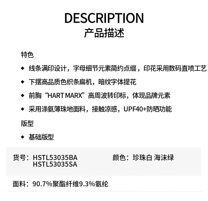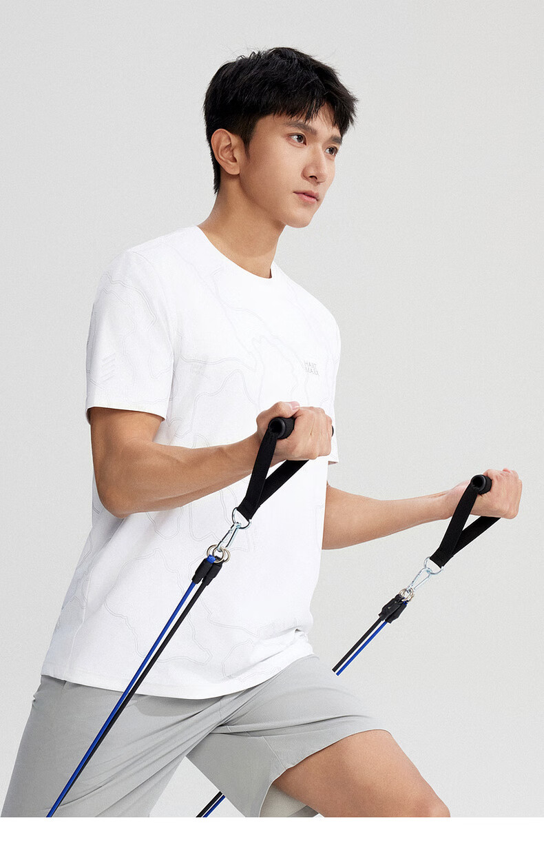 哈特马克斯男士涤氨薄珠地凉感大印花短袖T恤 珍珠白 M (170)