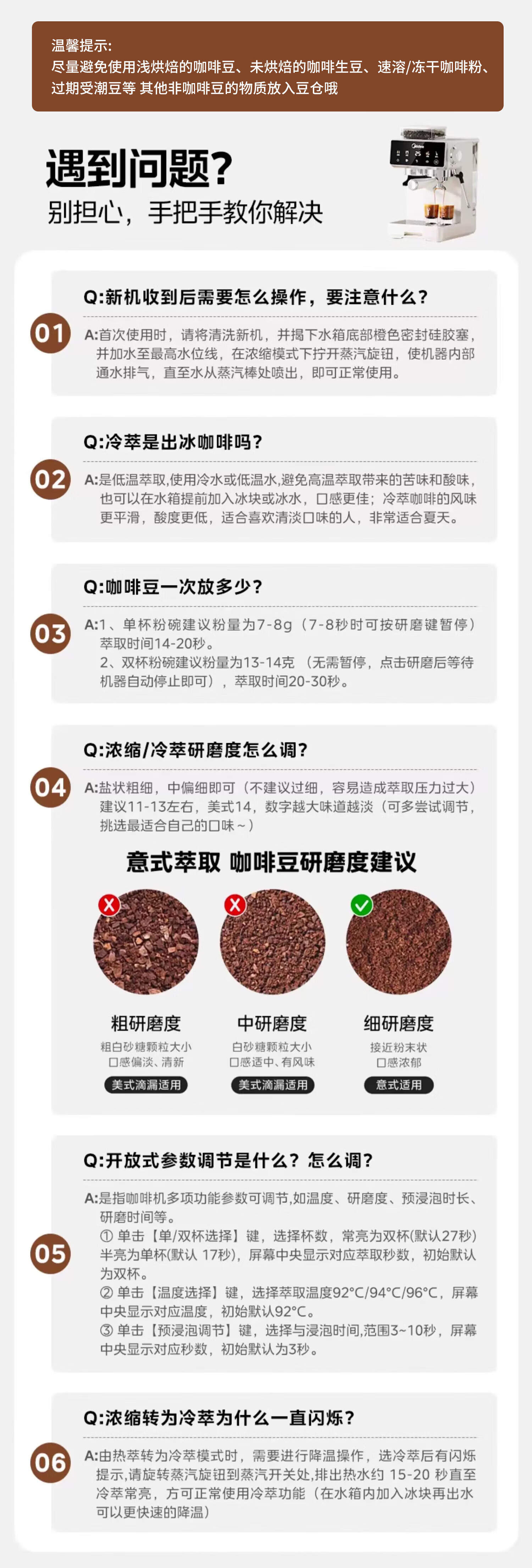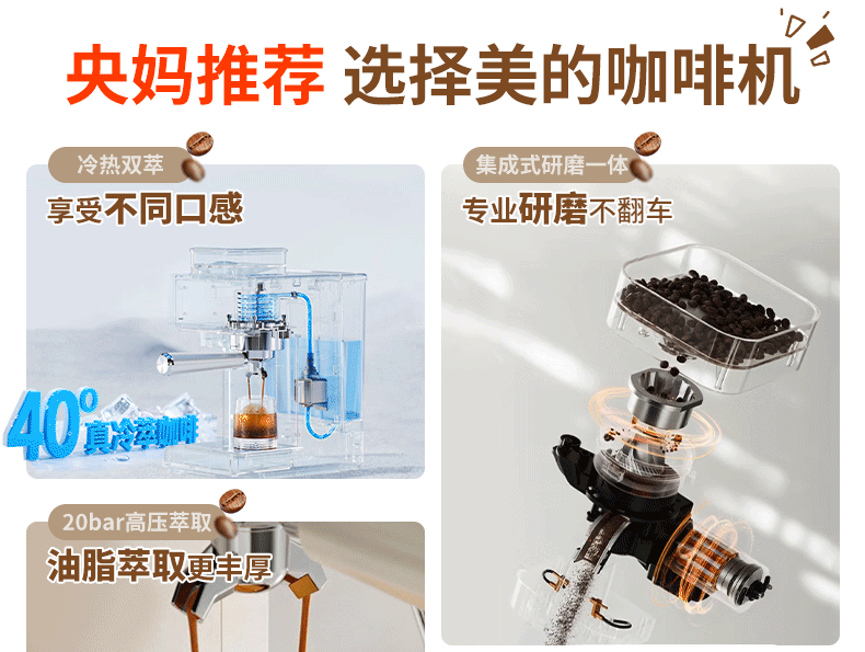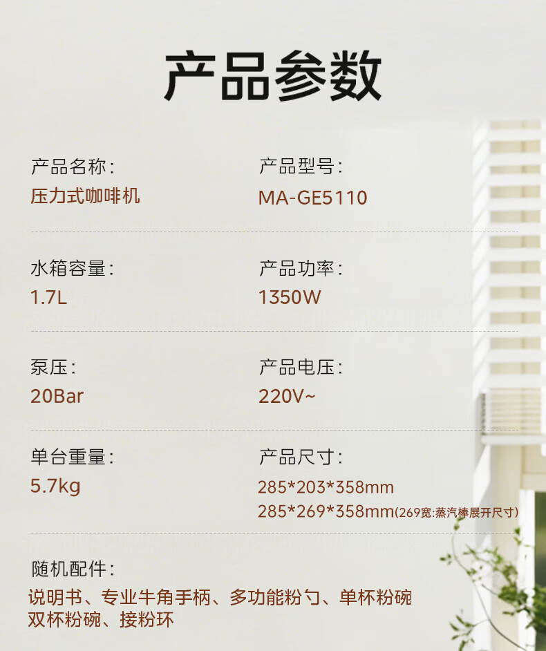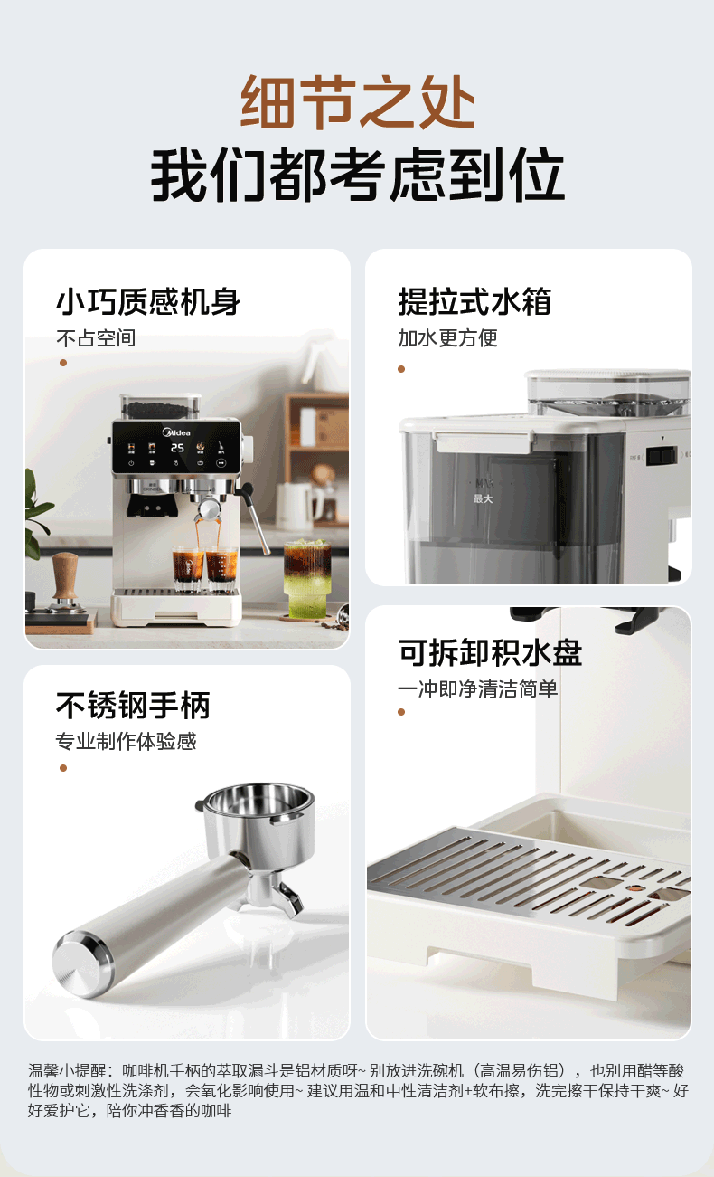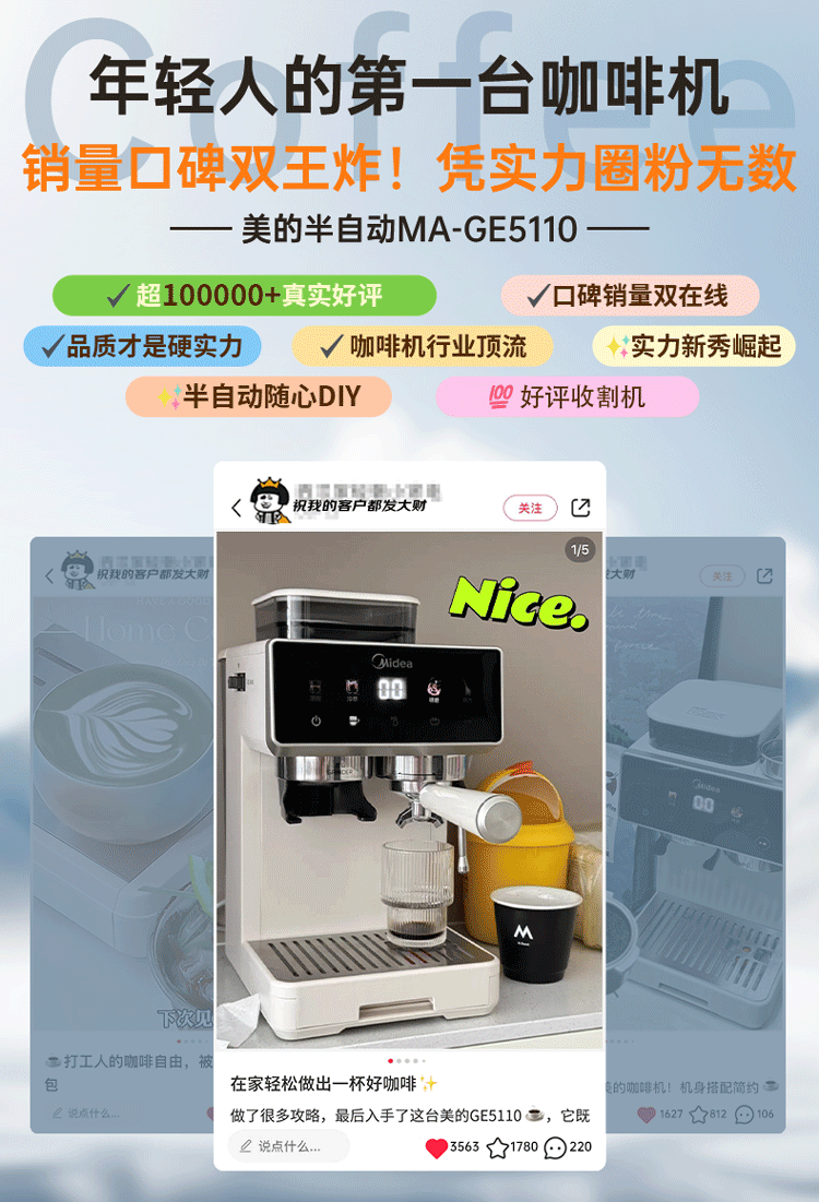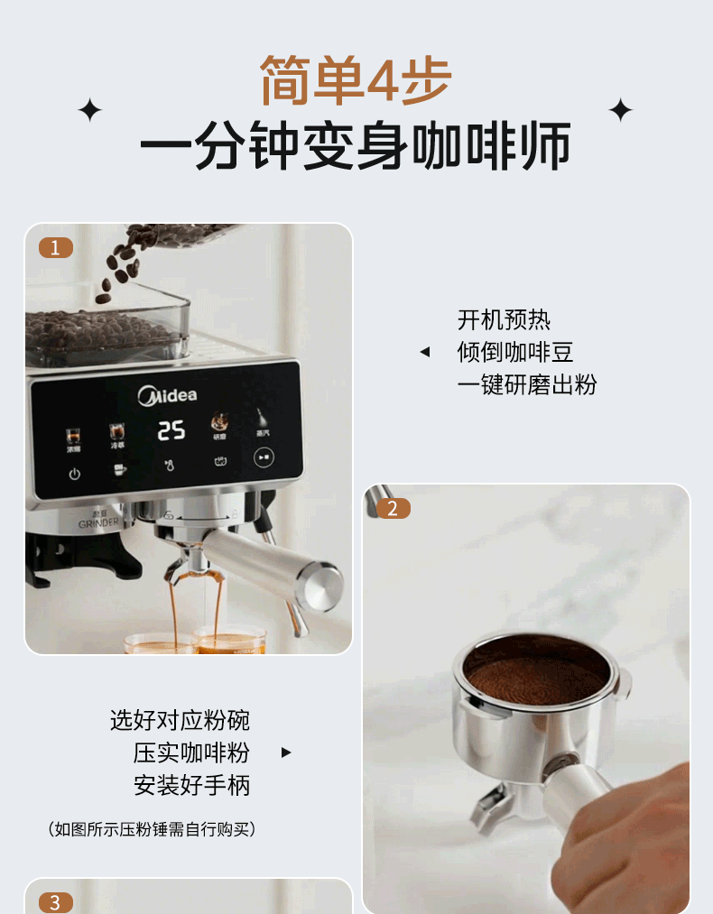美的(Midea)意式半自动咖啡机冷热双萃研磨一体机全自动家用磨豆咖啡机可打奶泡MA-GE5110
