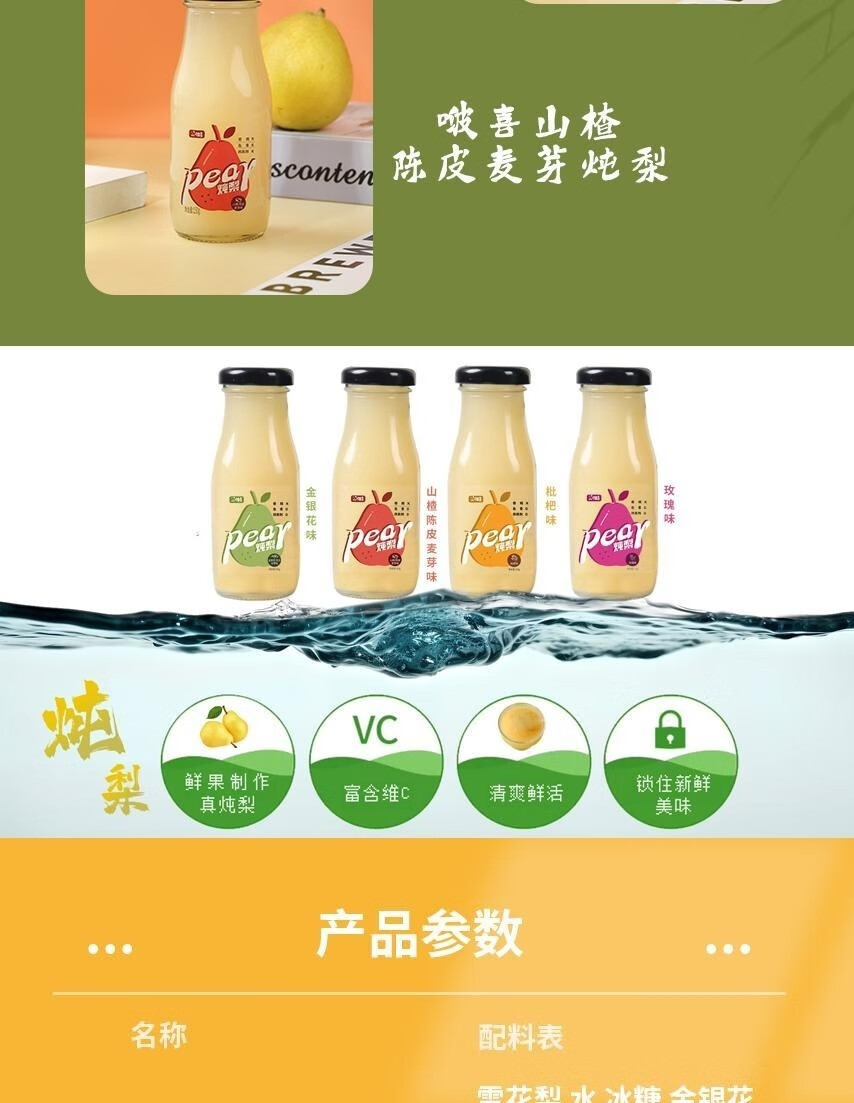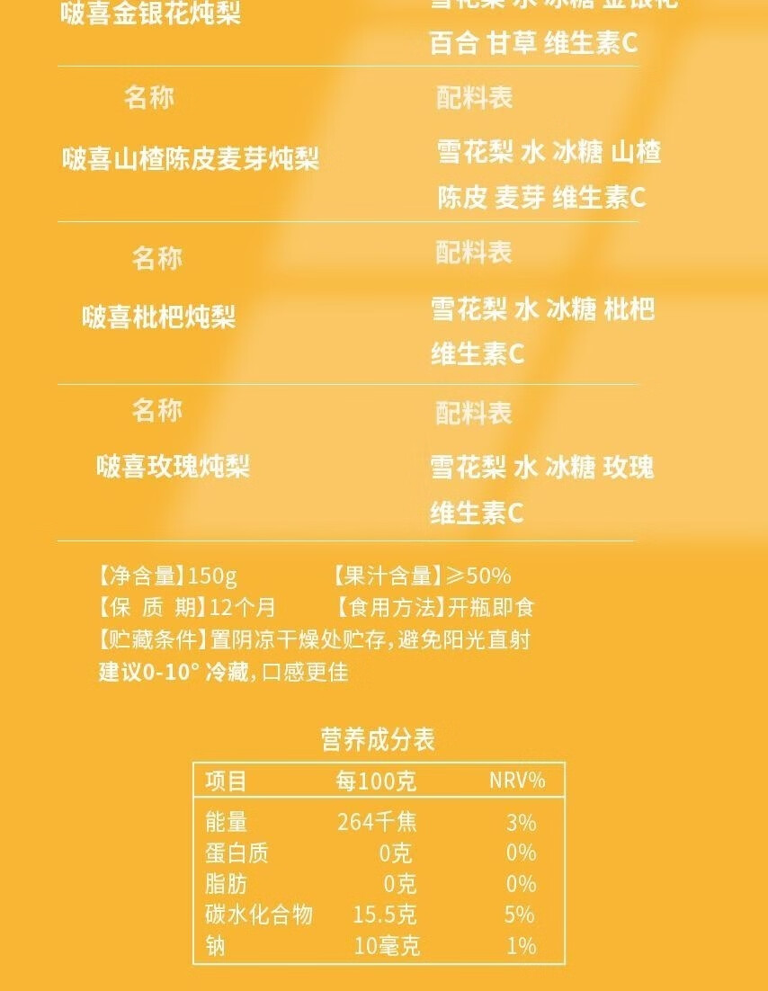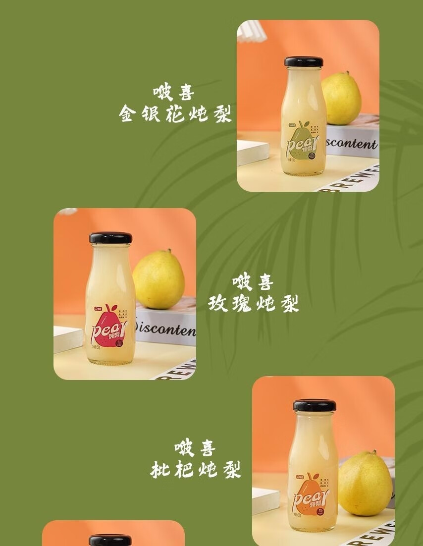 金银花冰糖炖梨果泥小瓶装梨汁梨浆果汁熬制玻璃瓶果浆150g啵喜 金银花炖梨6瓶