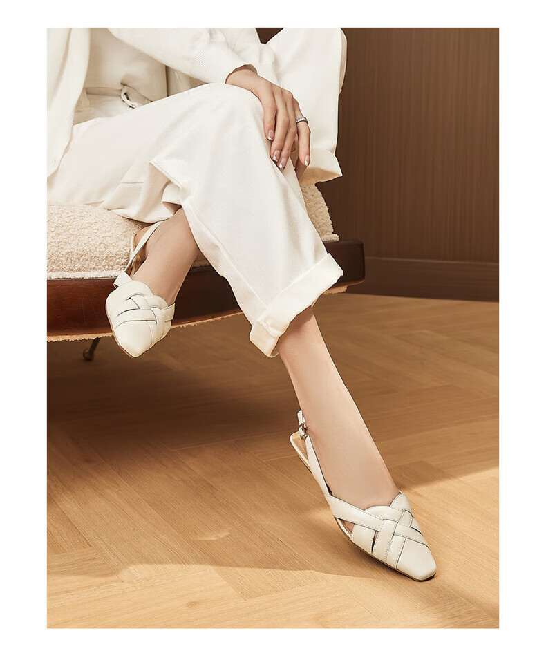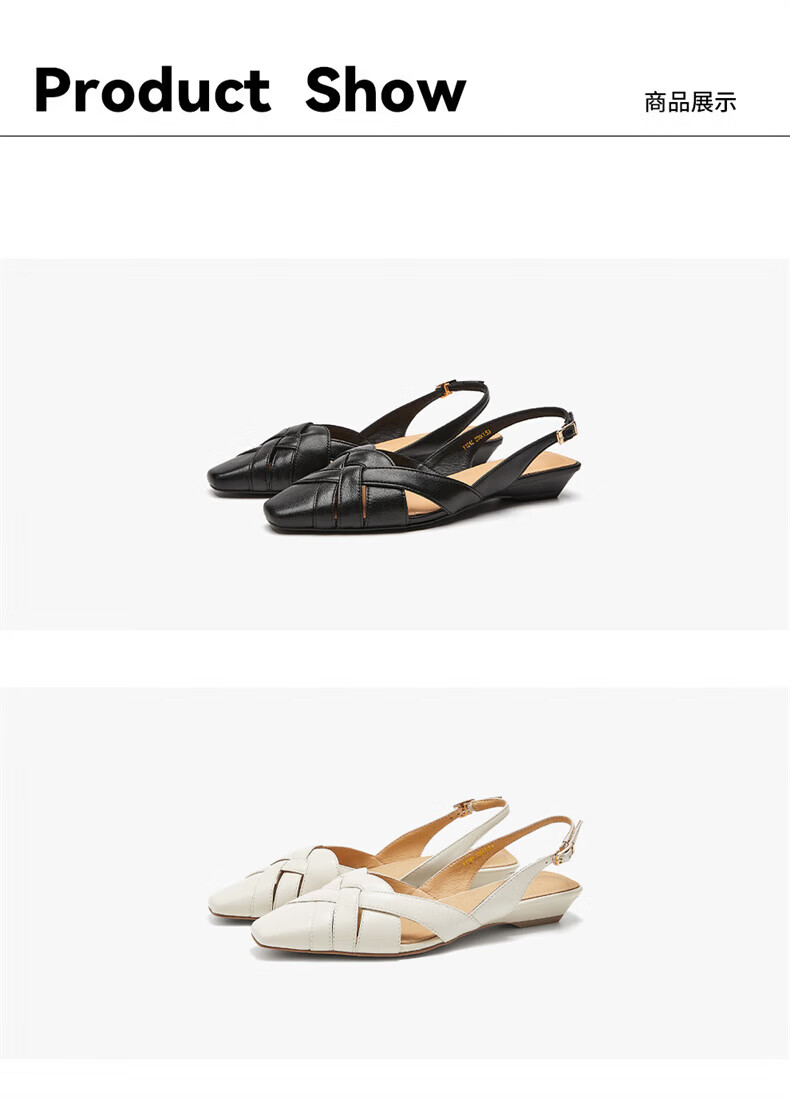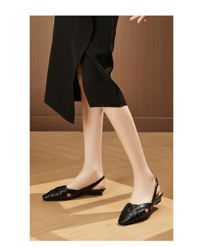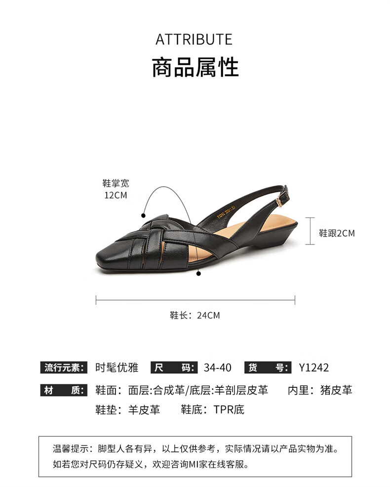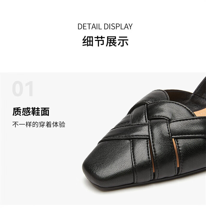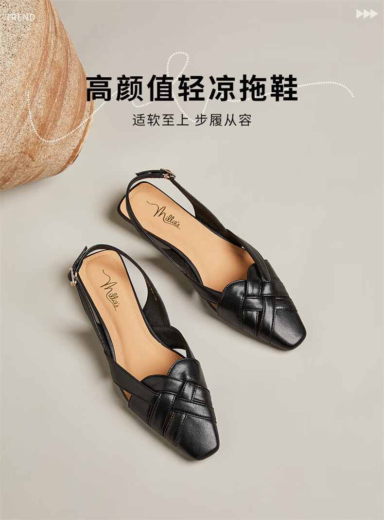 妙丽(Millies)凉鞋女包头低跟编织复古后绑带休闲百搭2025夏季新款 黑色 38 (240mm) 标准码