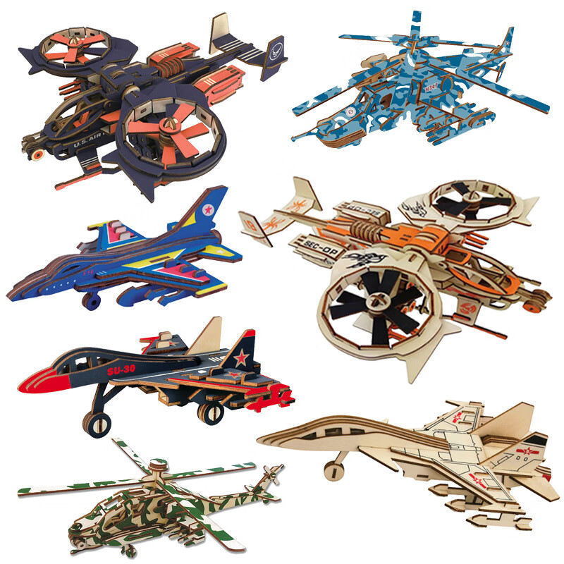 【优选百货】儿童木质拼图立体3d玩具模型男孩力动脑拼装飞机积木 战斗机(JM激光版