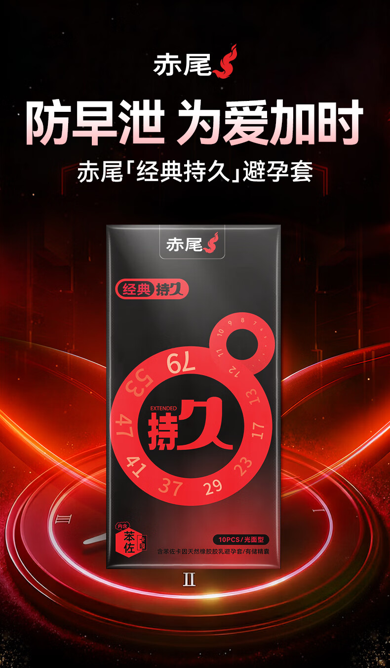 赤尾延时避孕套男专用国产持久防早泄敏感套超薄含苯佐卡因 持久7只+黑金至薄10只共17只