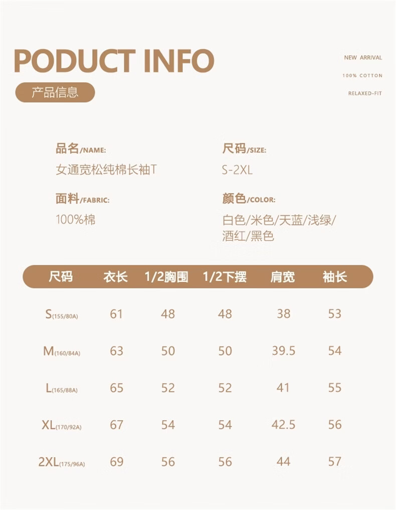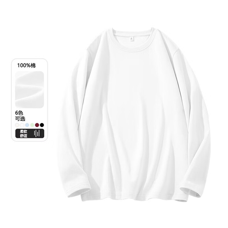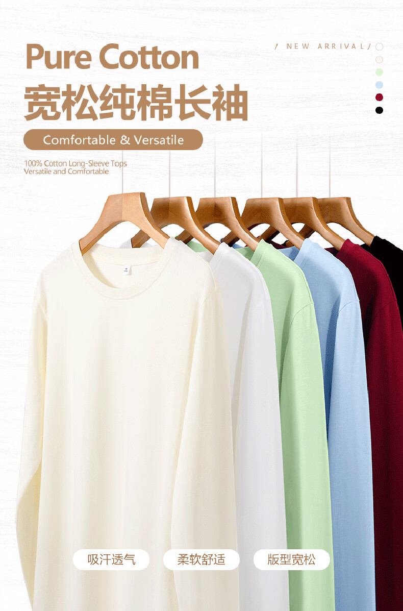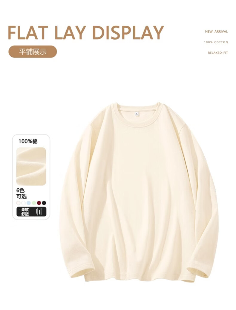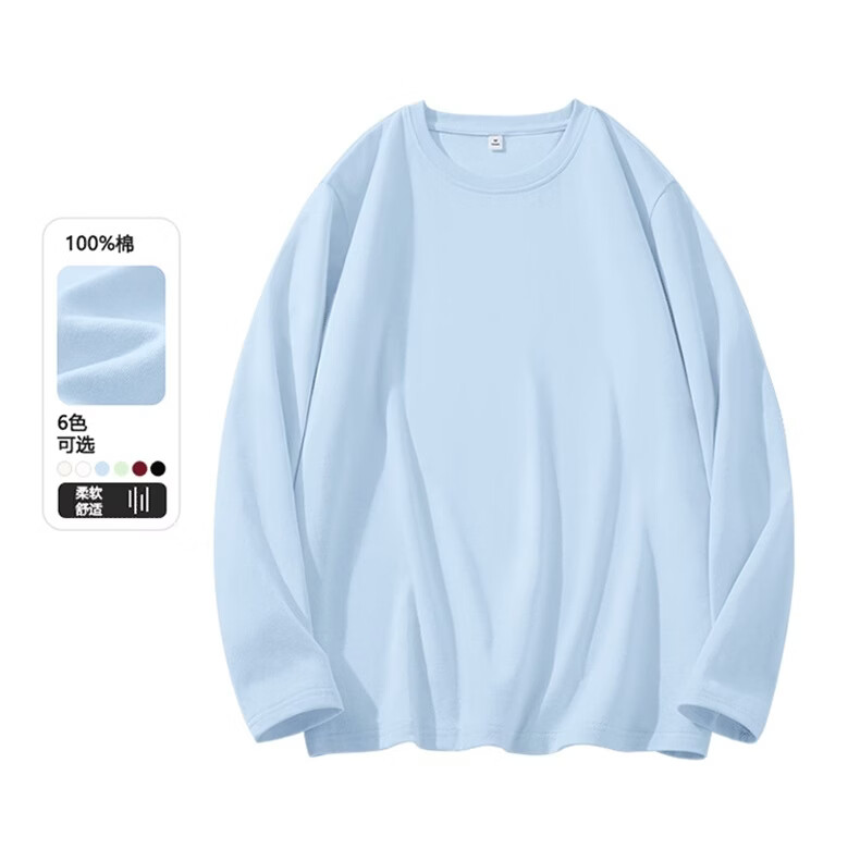 真维斯(Jeanswest)早春纯棉长袖t恤女酷帅女孩2026新款通勤内搭打底衫宽松显瘦上衣 天蓝 极光沙漠 S