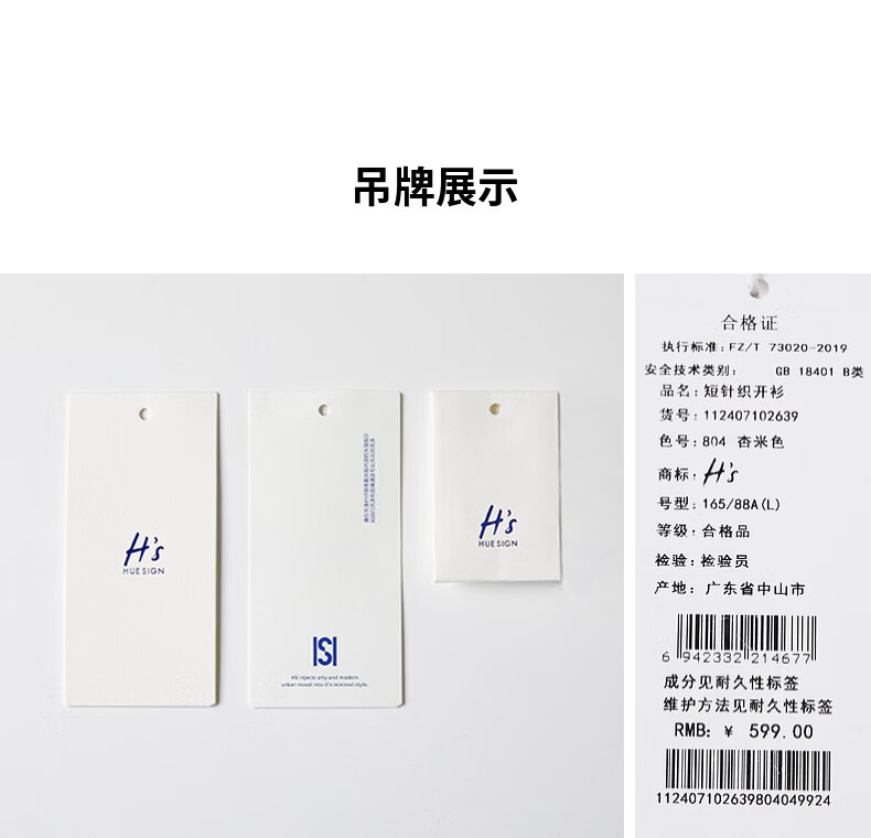 H'sH's女士开衫毛衣/针织衫112407102639 杏米色 S