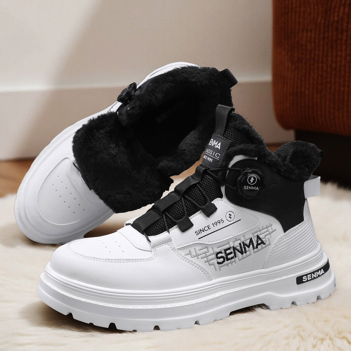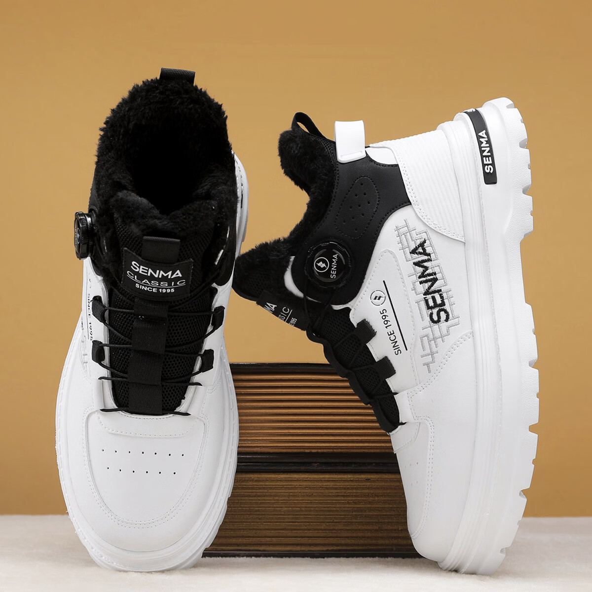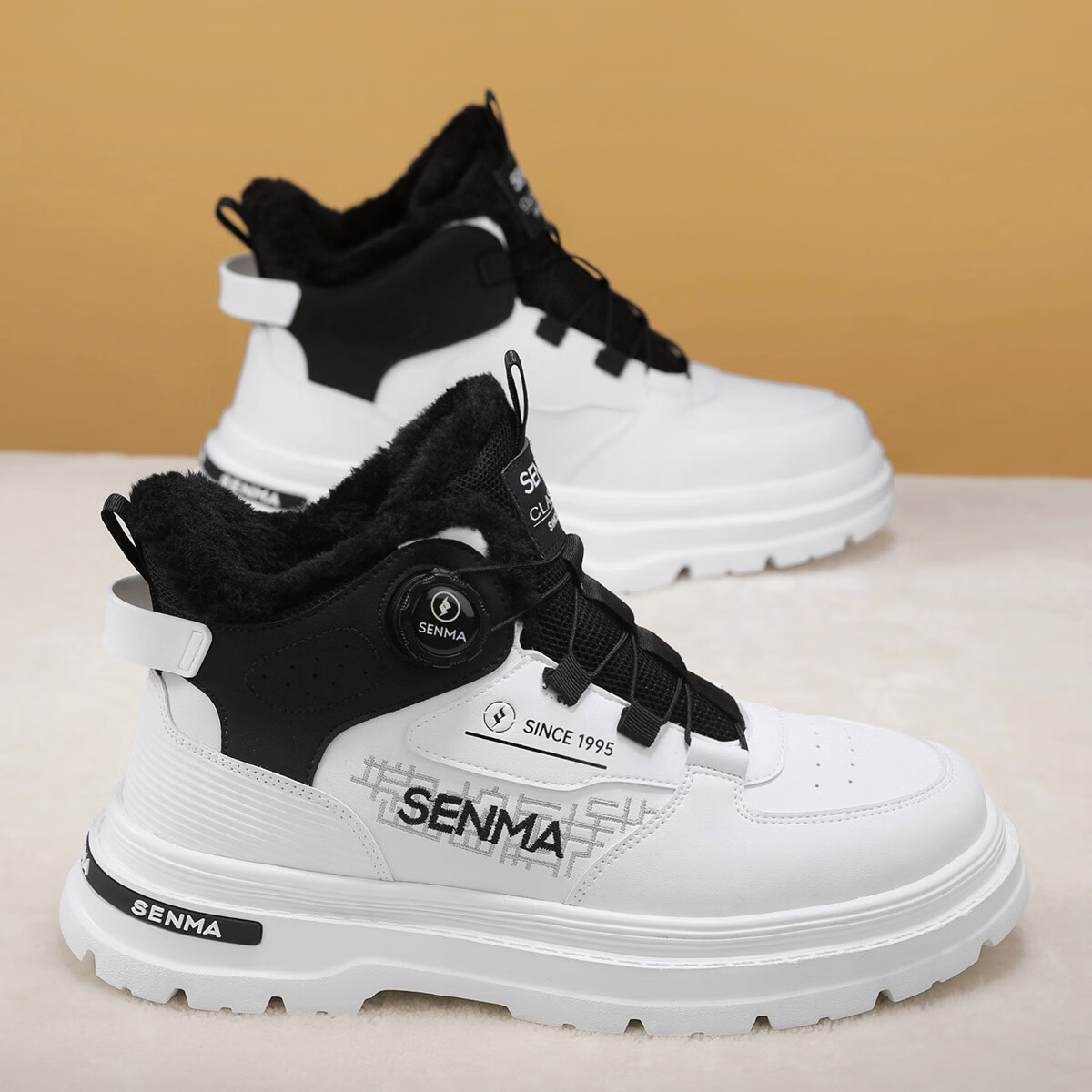 森馬高帮男鞋冬季加绒保暖棉鞋休闲小白板鞋男士户外防滑运动马丁潮鞋 白黑【基础款】 39 标准码数/现货秒发