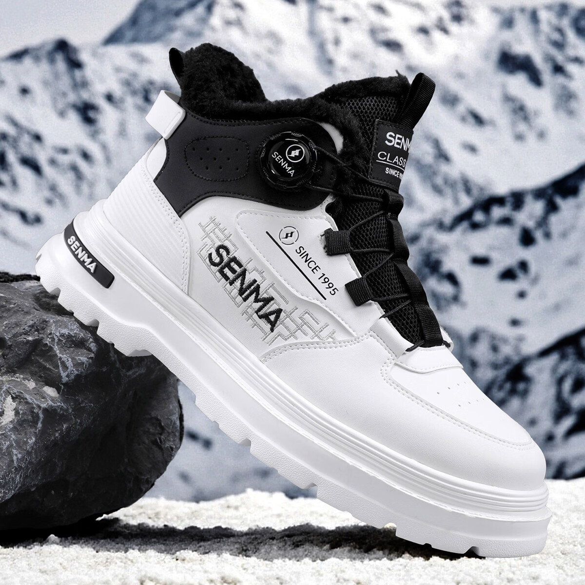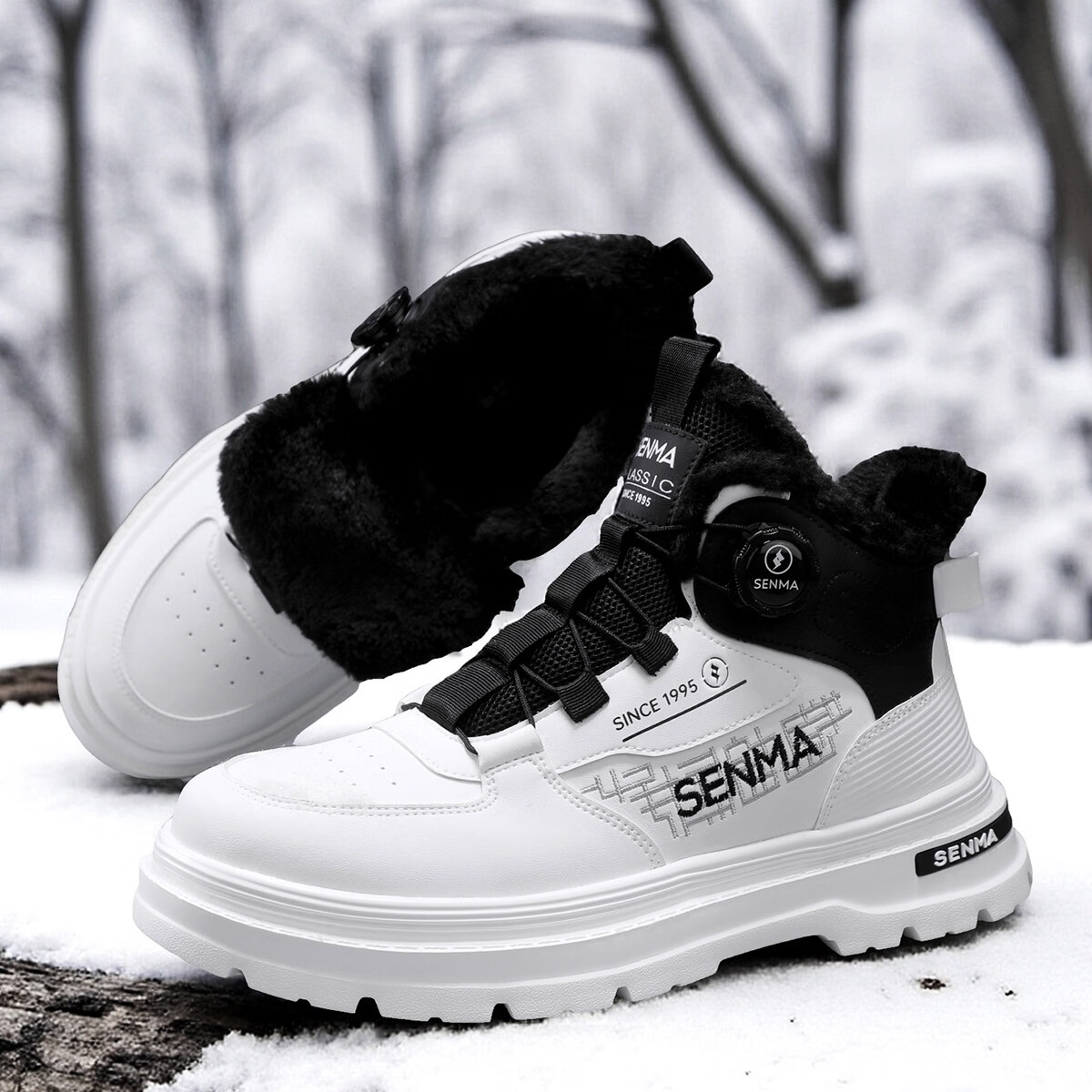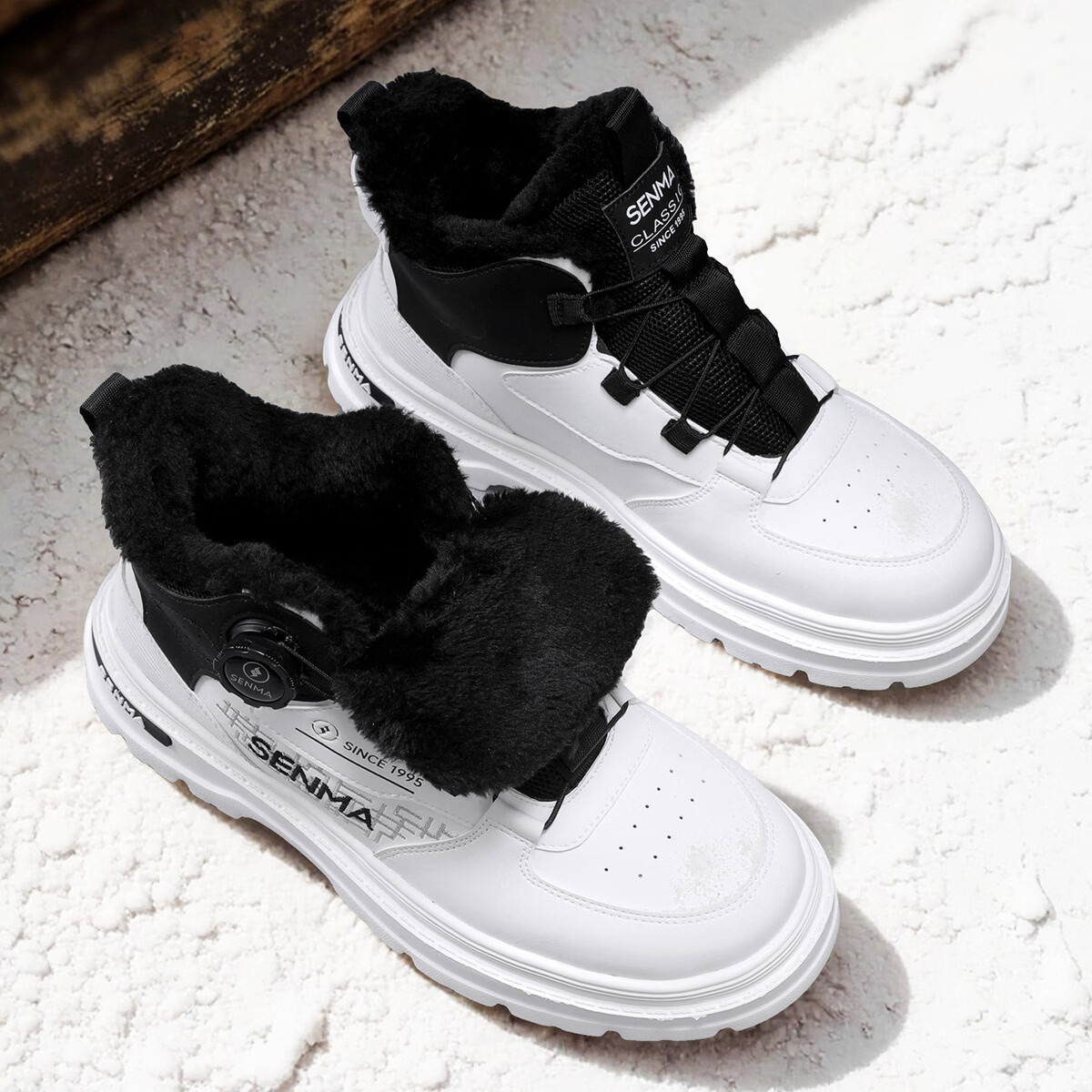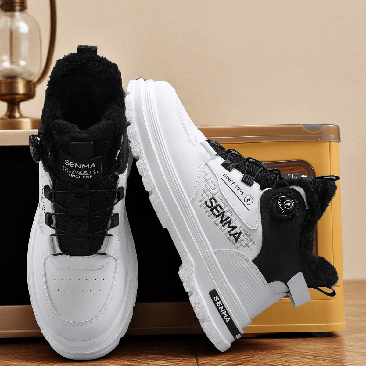 森馬高帮男鞋冬季加绒保暖棉鞋休闲小白板鞋男士户外防滑运动马丁潮鞋 白黑【基础款】 39 标准码数/现货秒发