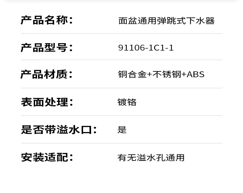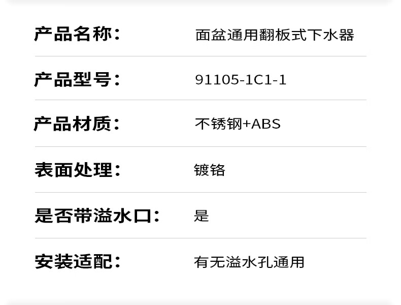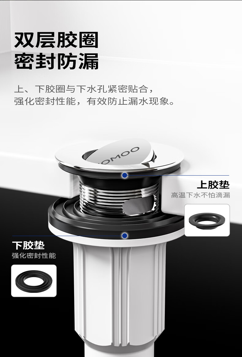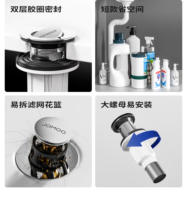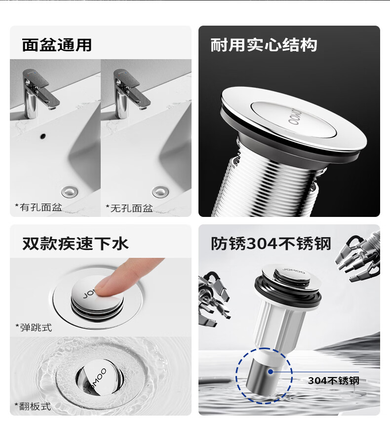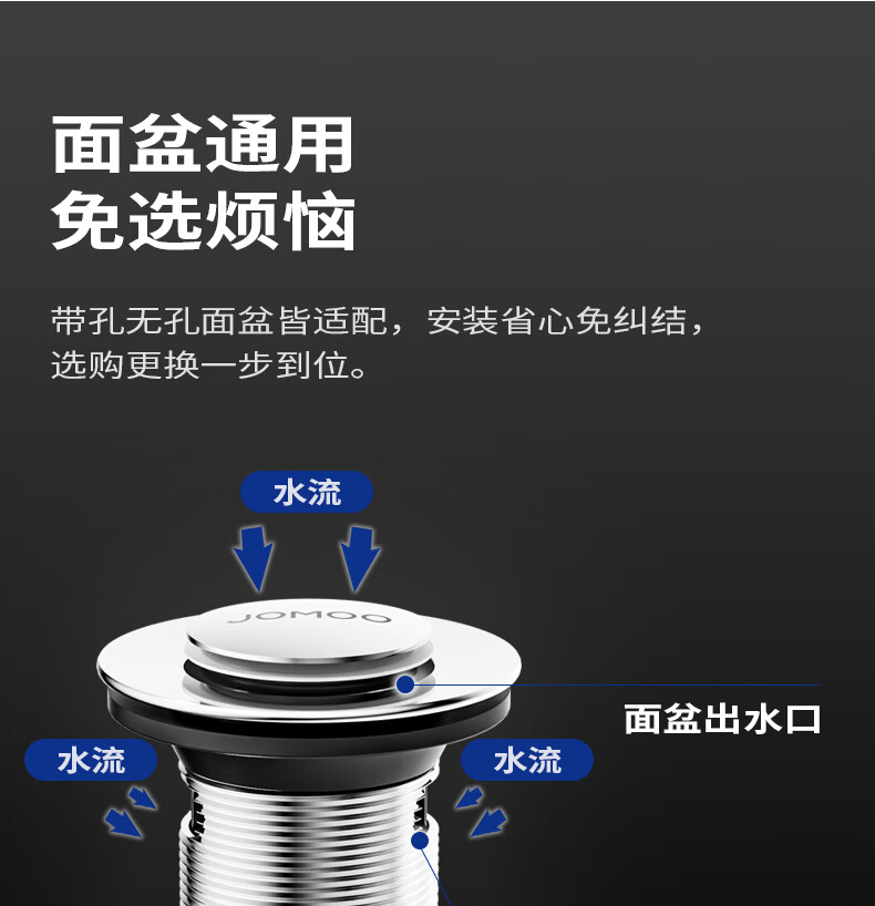 九牧(JOMOO)下水配件弹跳式翻版式面盆下水器加厚电镀卫浴配件 HG 【翻板式面盆下水器91105】