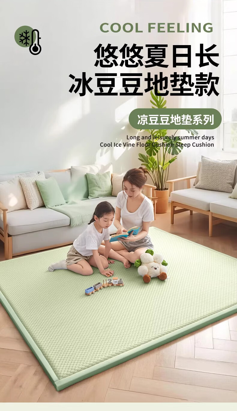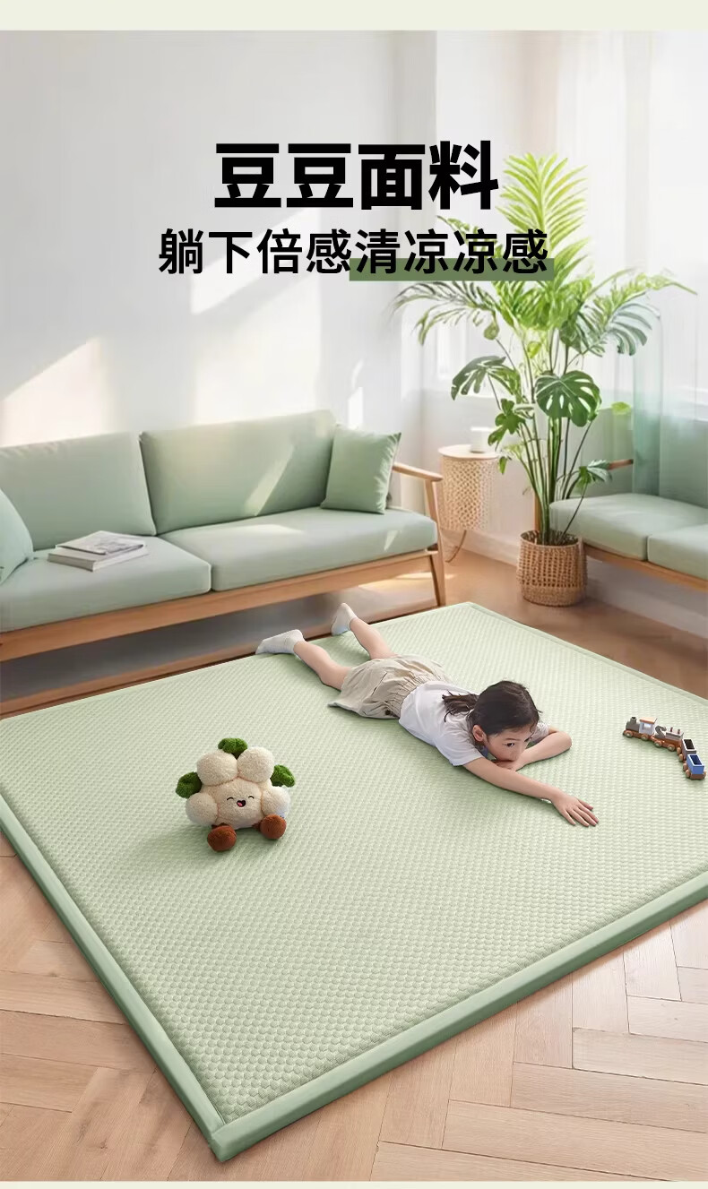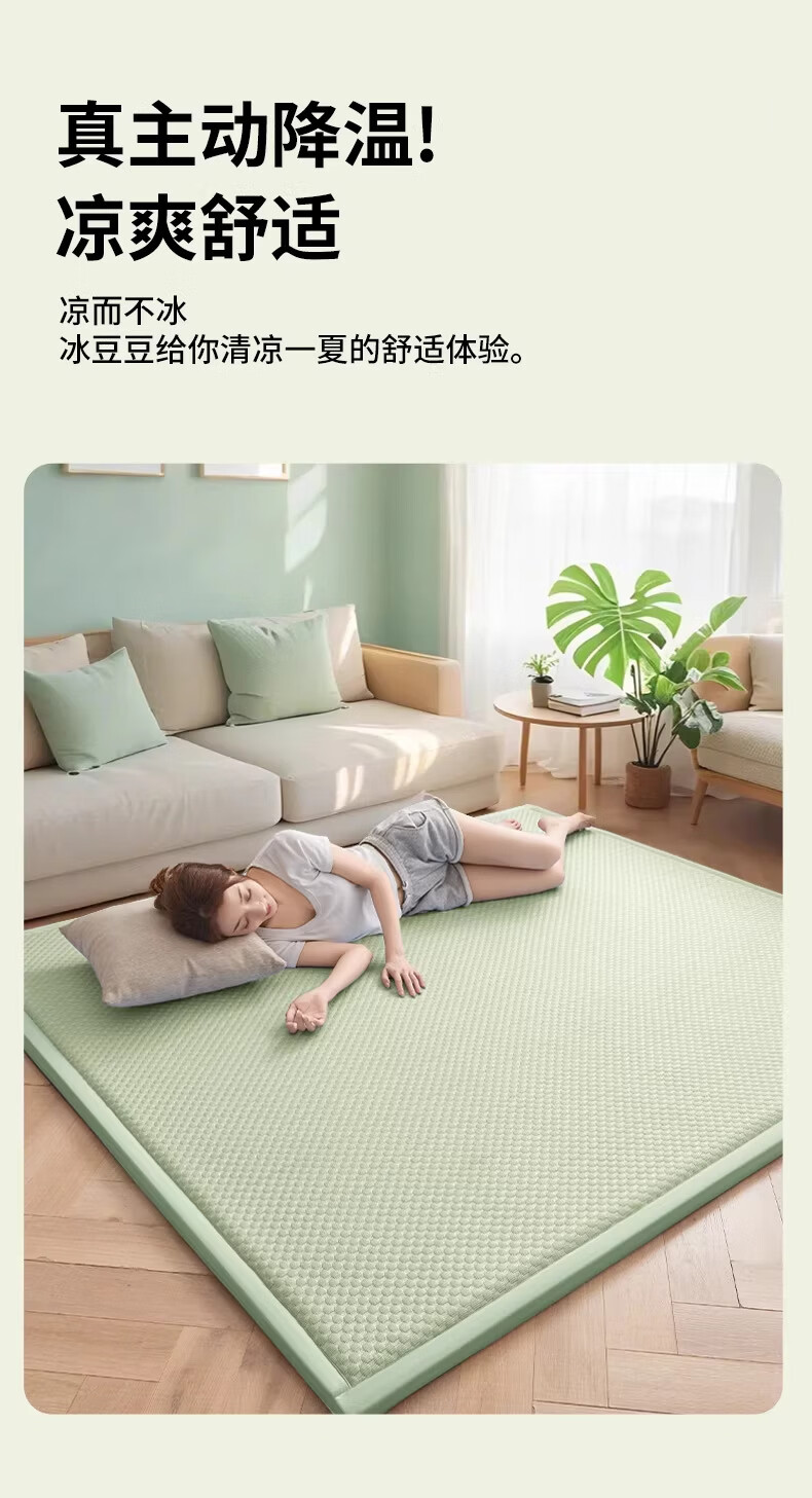 猫人(MiiOW)夏季冰丝凉席地垫2x2.2m家用卧室打地铺神器榻榻米夏天藤席软垫子 冰豆豆-天蓝【凉而不冰丨亲肤透气】 60*120cm【凉爽舒适】