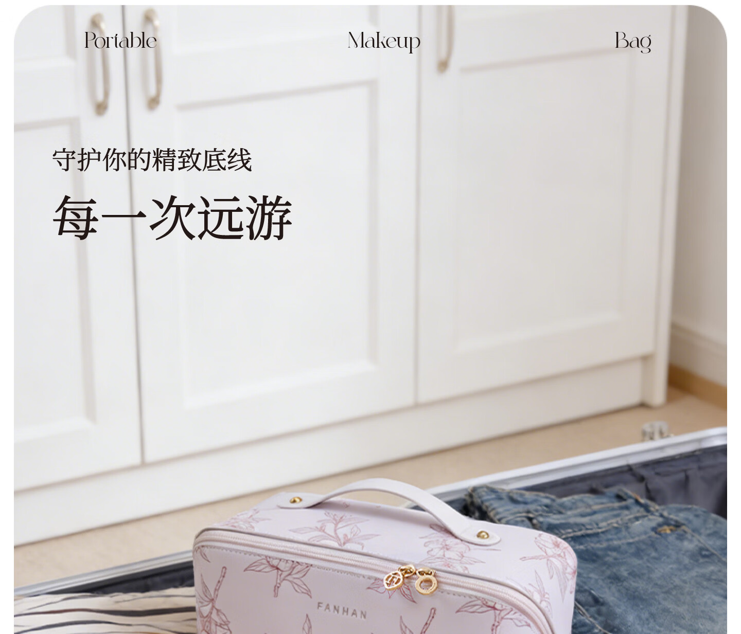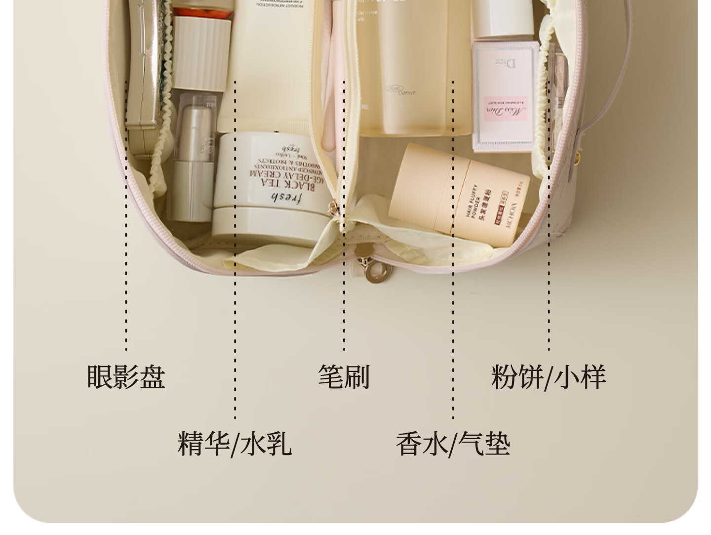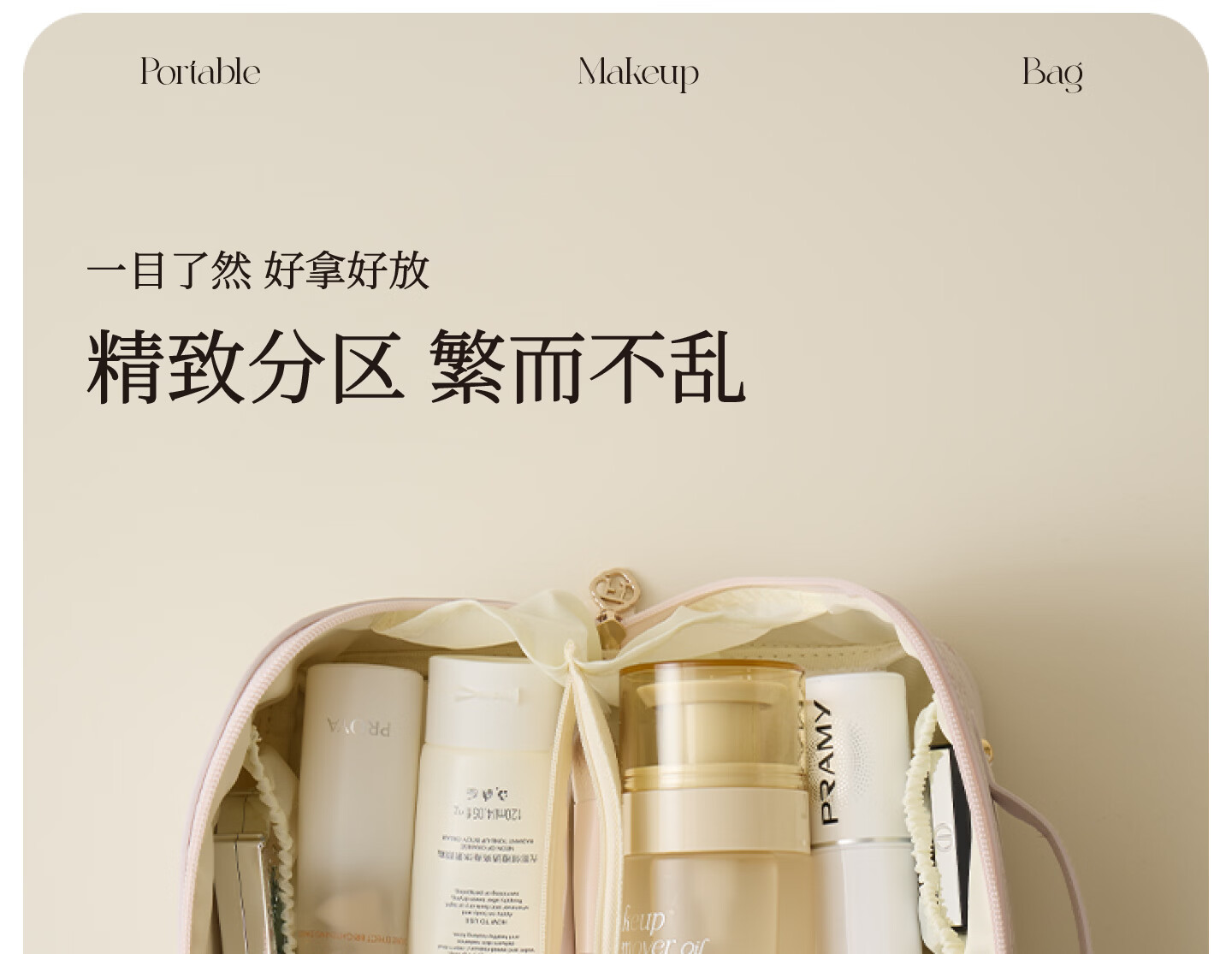 梵瀚轻奢高级化妆包便携外出旅行女2026新款高颜值大容量分区洗漱包 便携化妆包 沙粉色