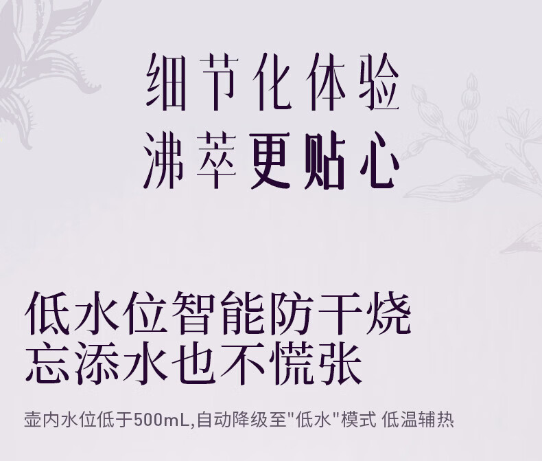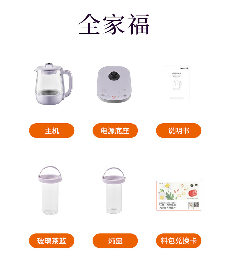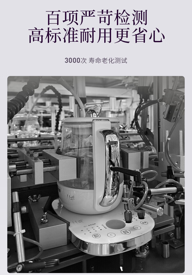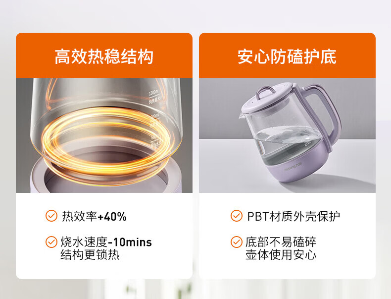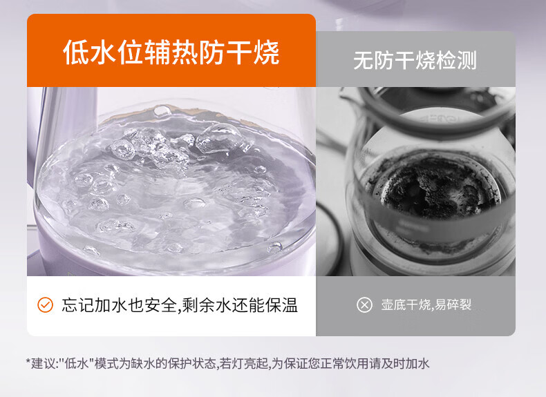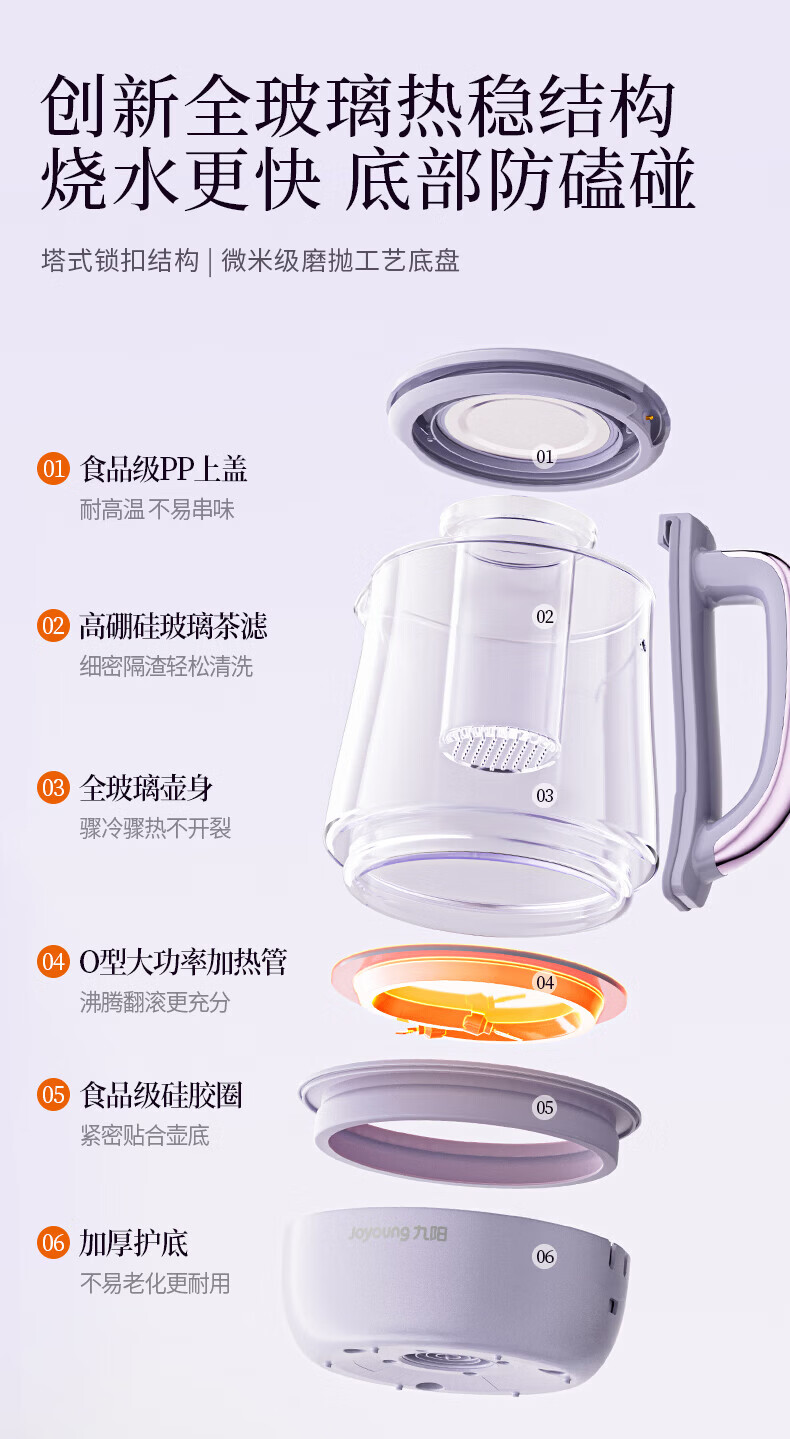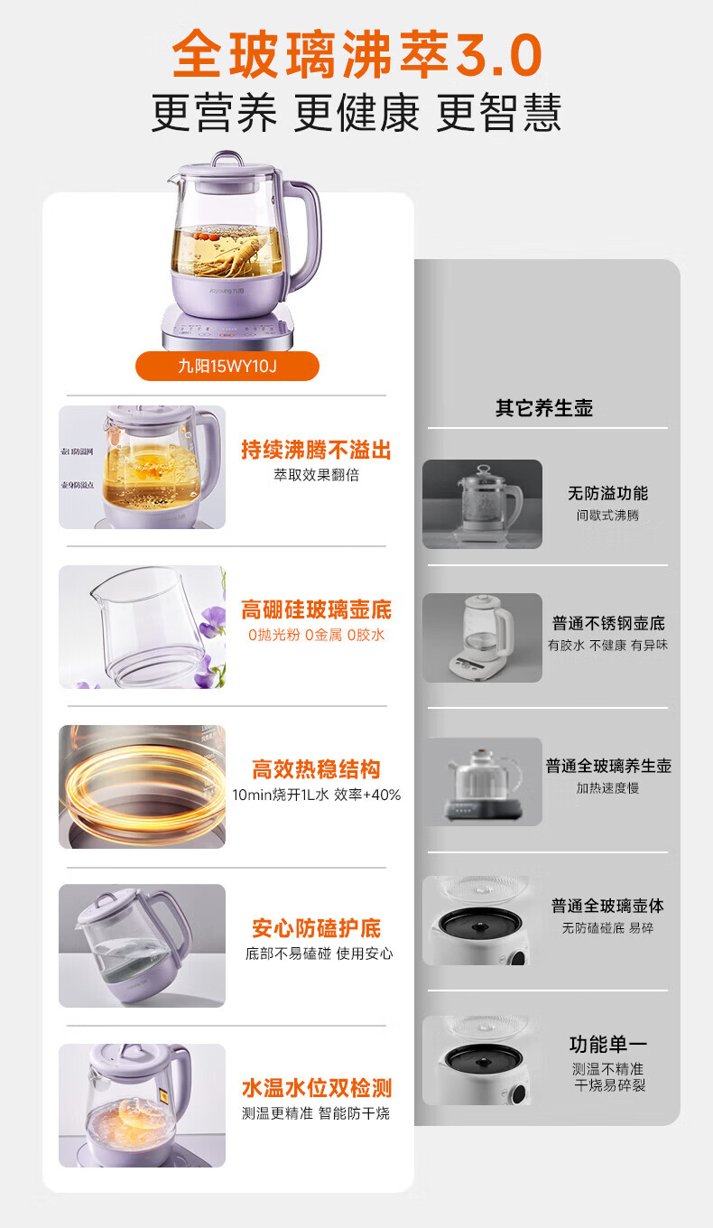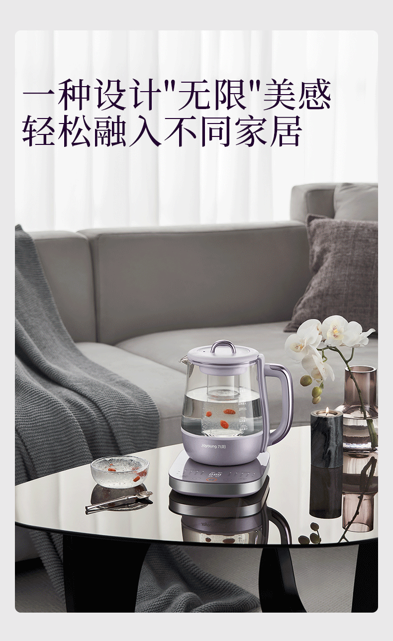 Joyoung全玻璃沸萃养生壶1.5L煮茶器 0胶水玻璃滤网炖盅 花茶壶烧水保温一体全自动恒温电热水壶15WY10J 1.5L 【全玻璃沸萃】限定离火紫