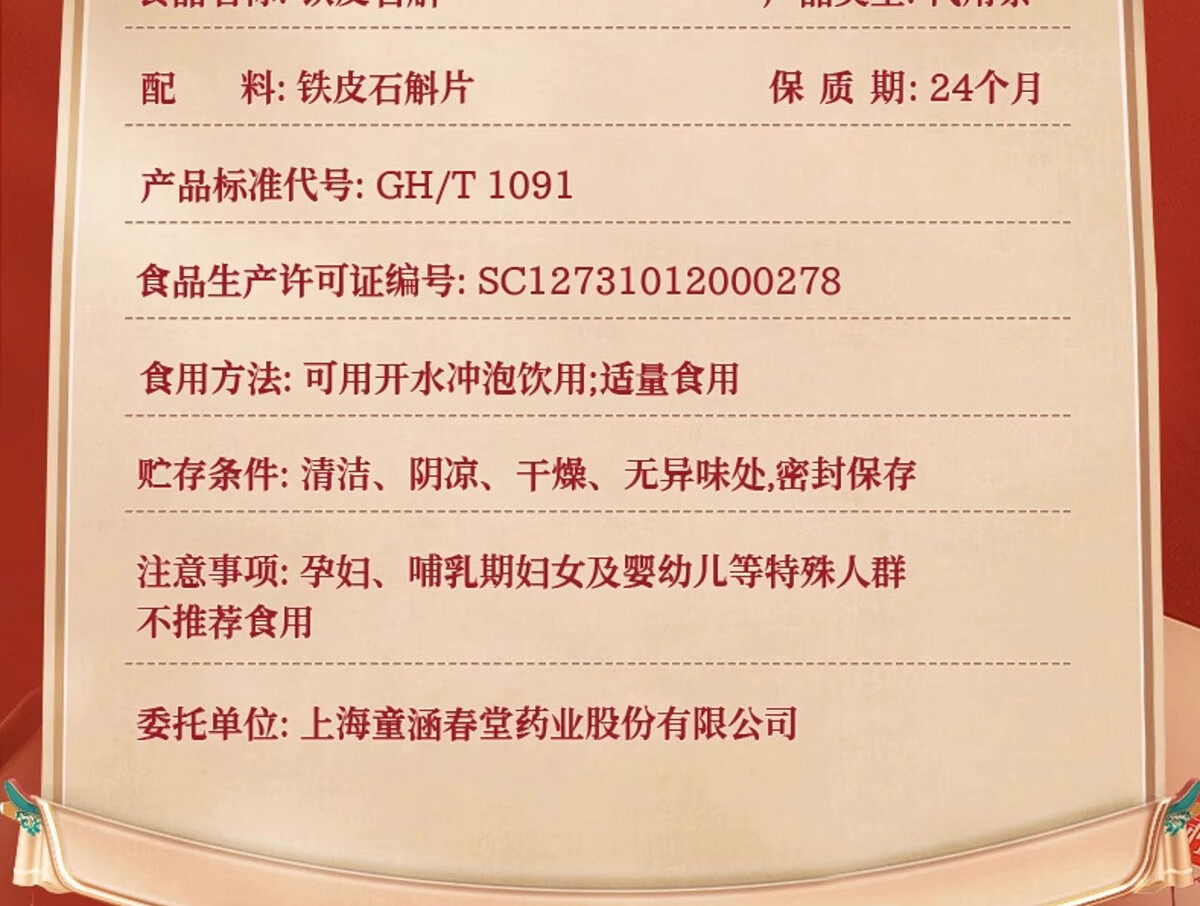 童涵春堂铁皮石斛代用茶90g(15罐*6g) 小罐礼盒 滋补营养品 佳节送礼