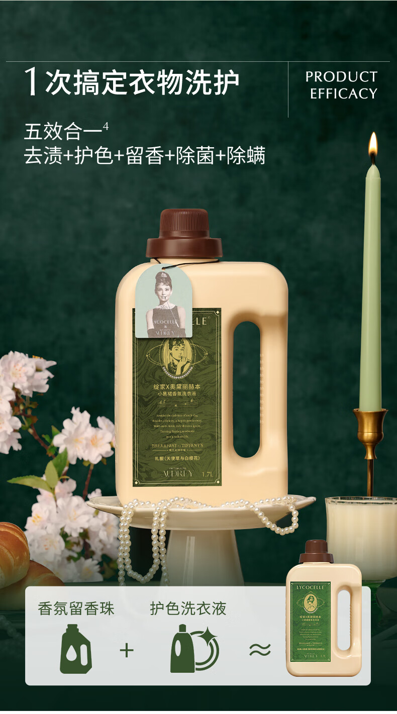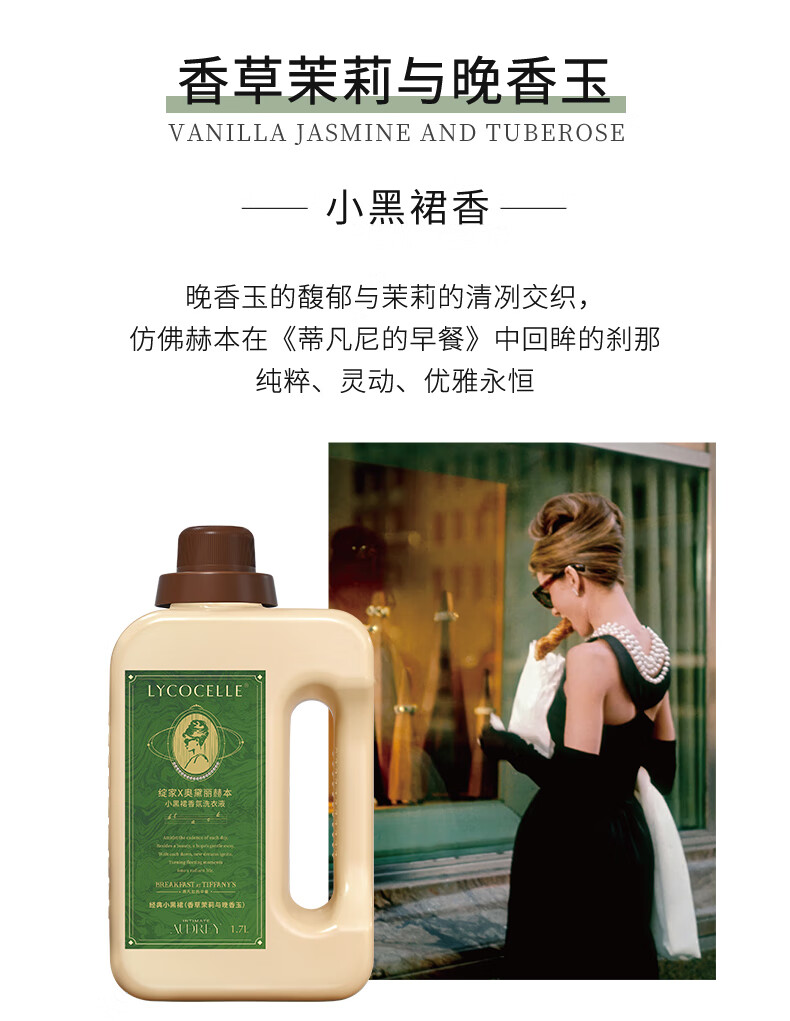 绽家X亲密的奥黛丽·赫本联名款香氛洗衣液家用持久留香护色除菌除螨 【茉莉与晚香玉】 1.7L*1瓶