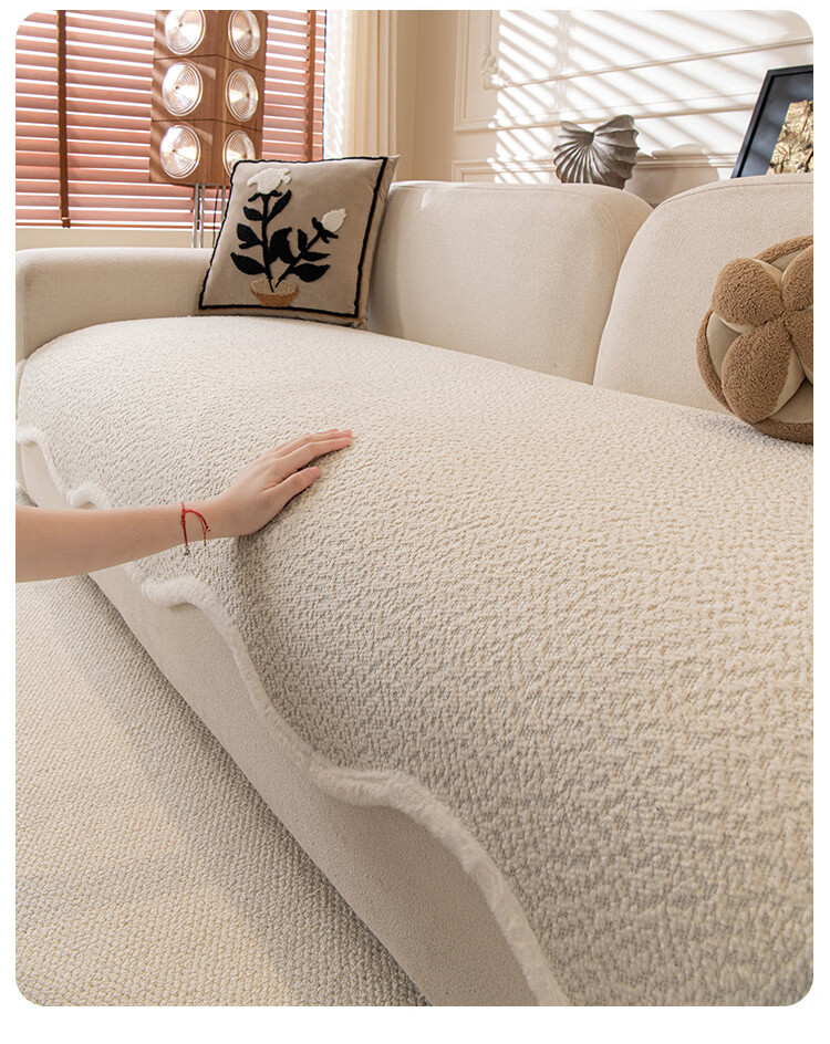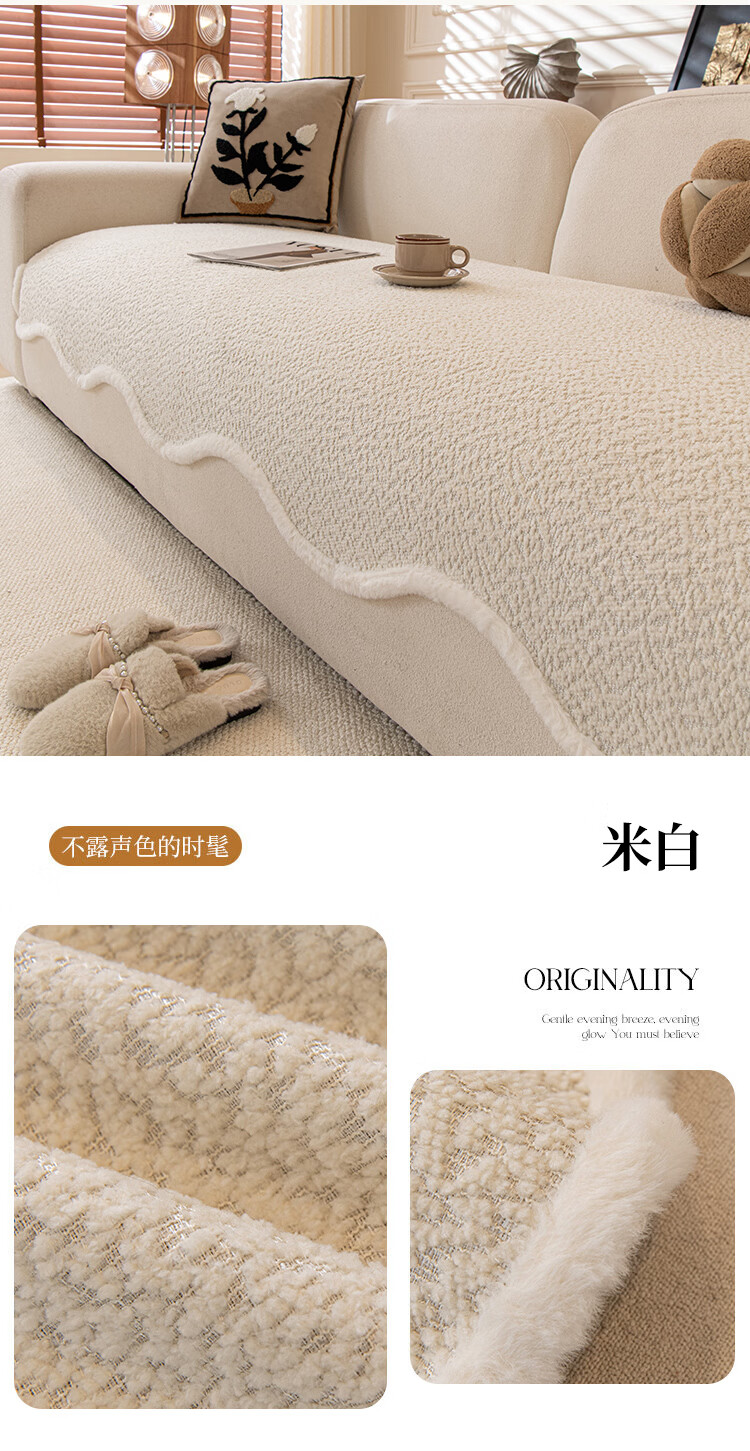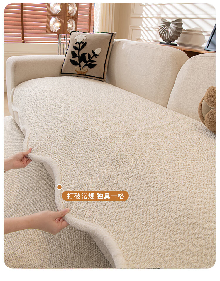 金拾美月奶油风高级感沙发垫冬2025新款加厚毛绒异形沙发坐垫防滑套盖布 异形婉沁-米白 70cm*70cm