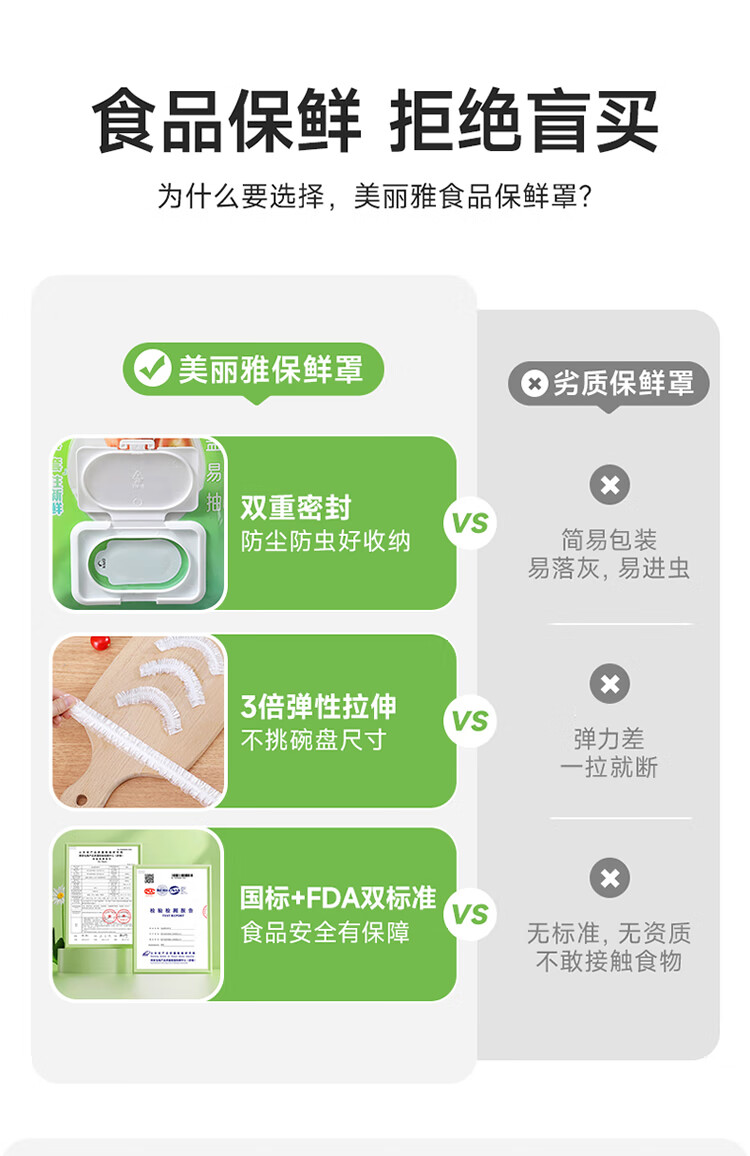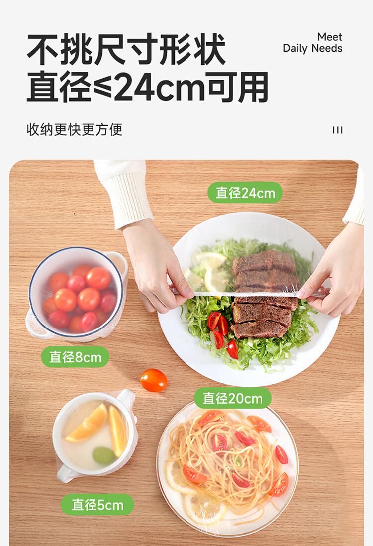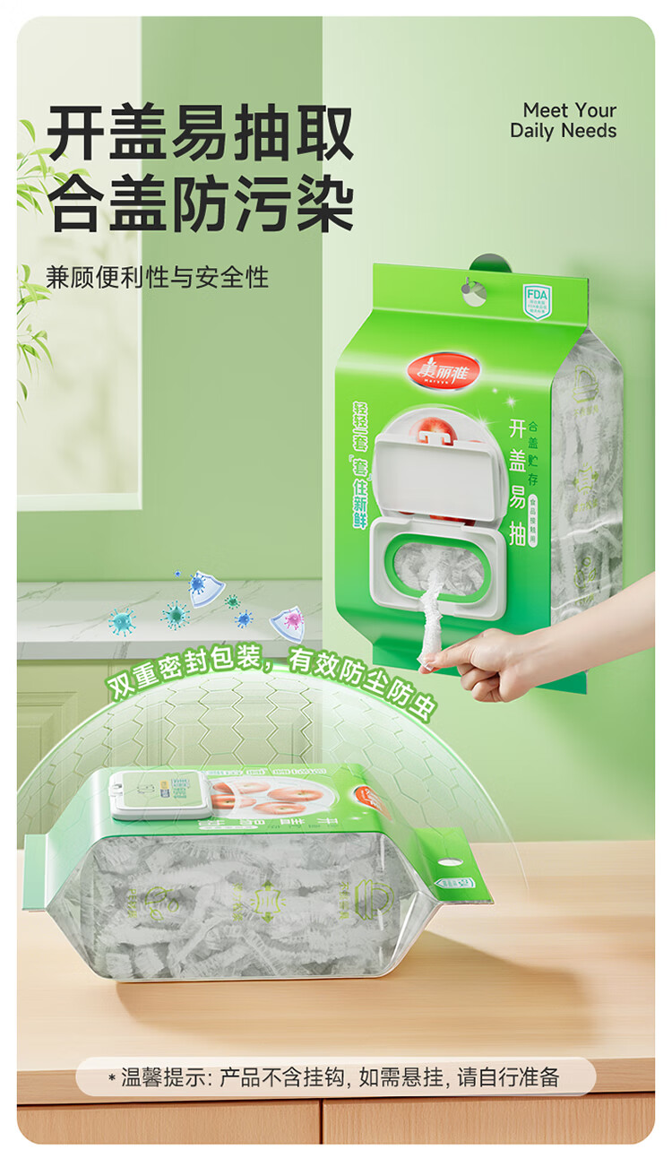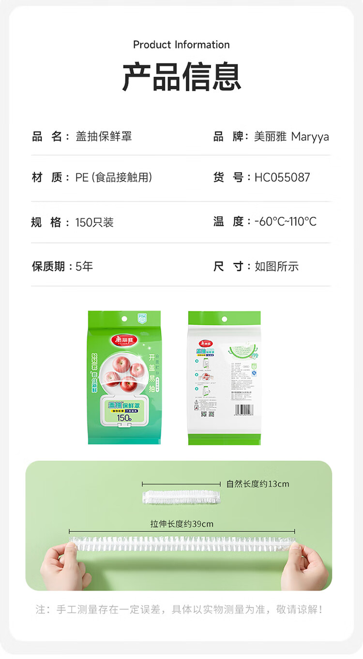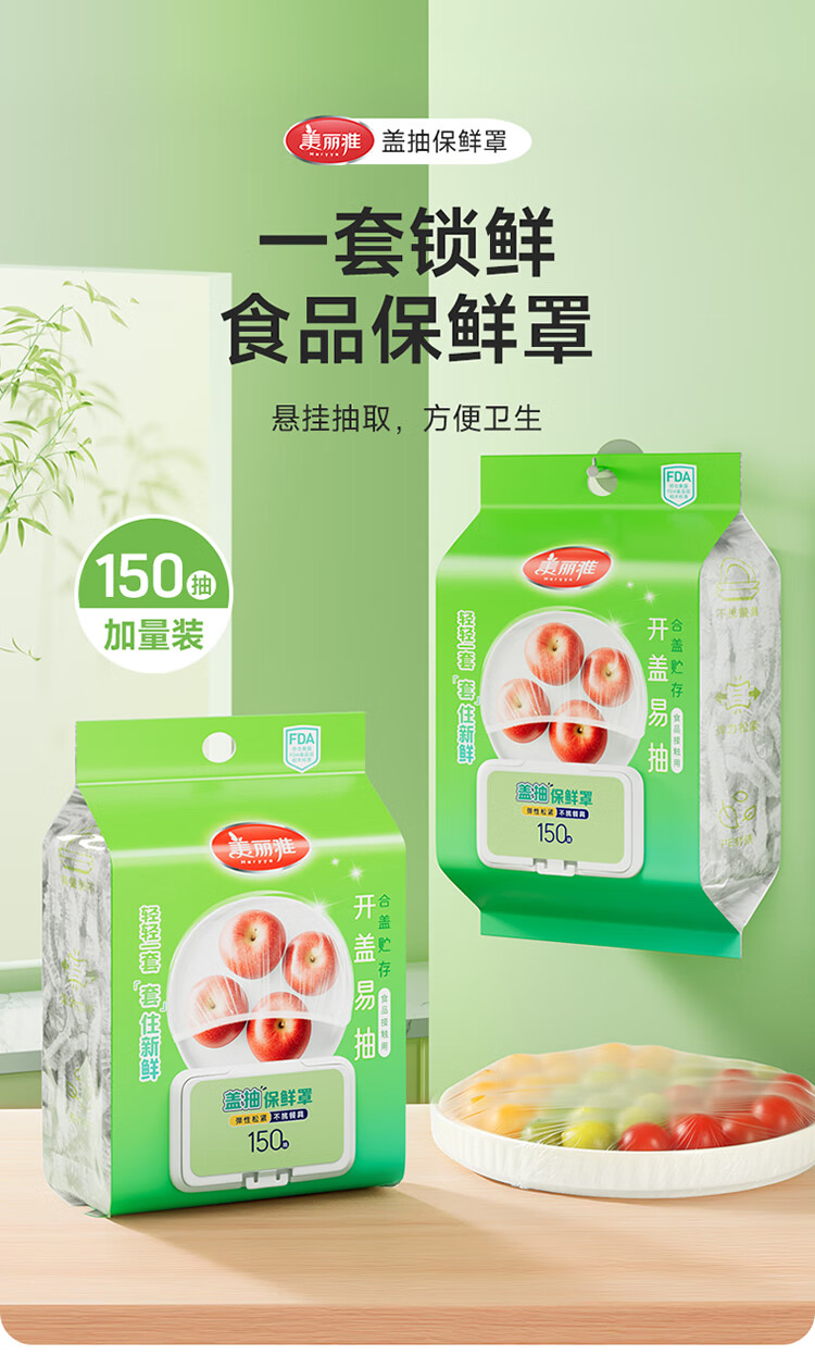 美丽雅保鲜罩食品级150只 一次性保鲜膜套 剩菜专用防尘碗套