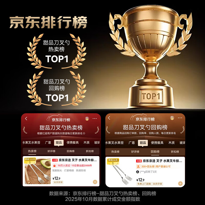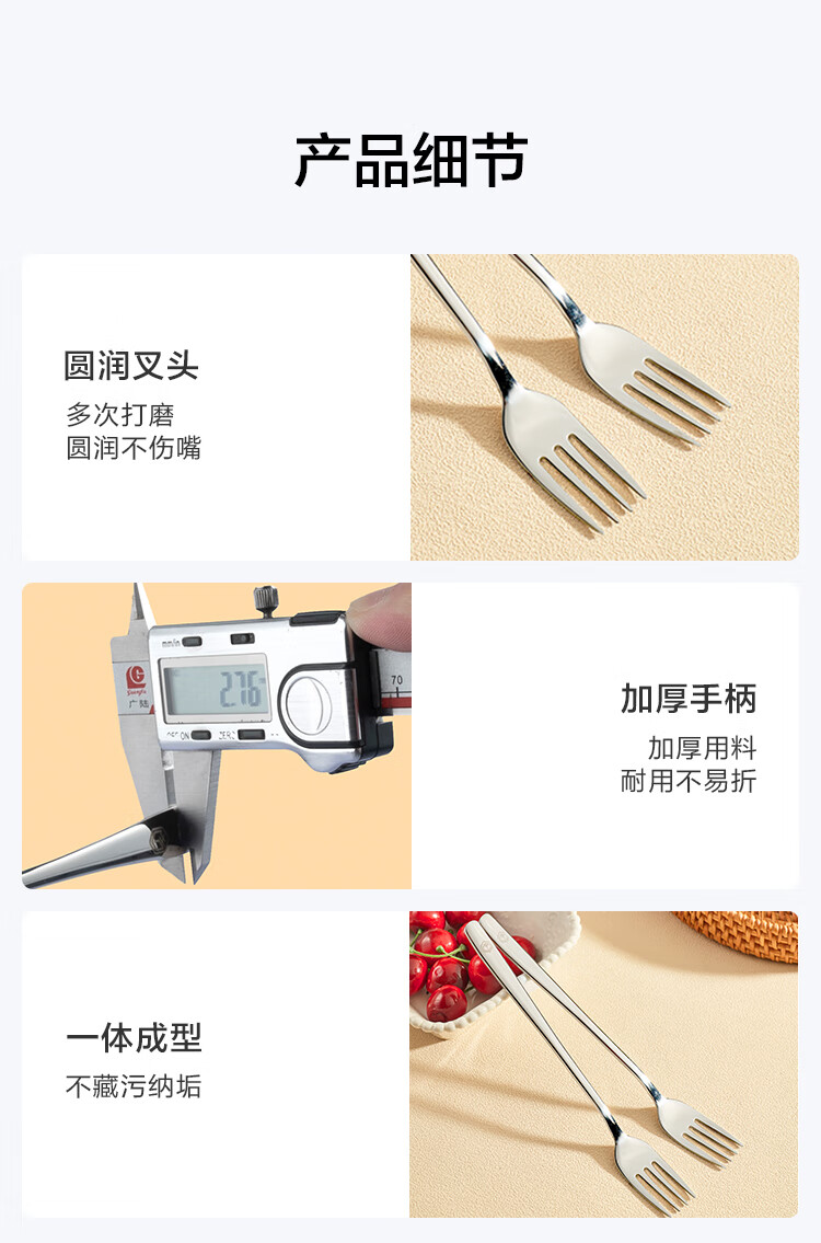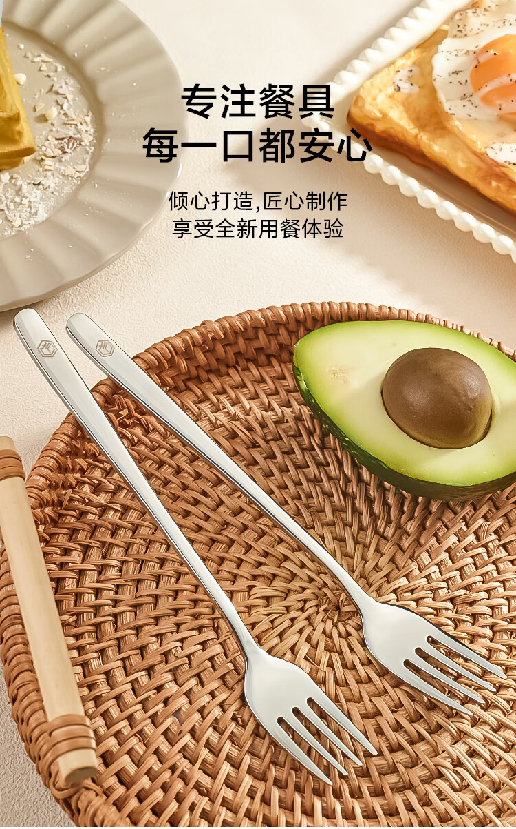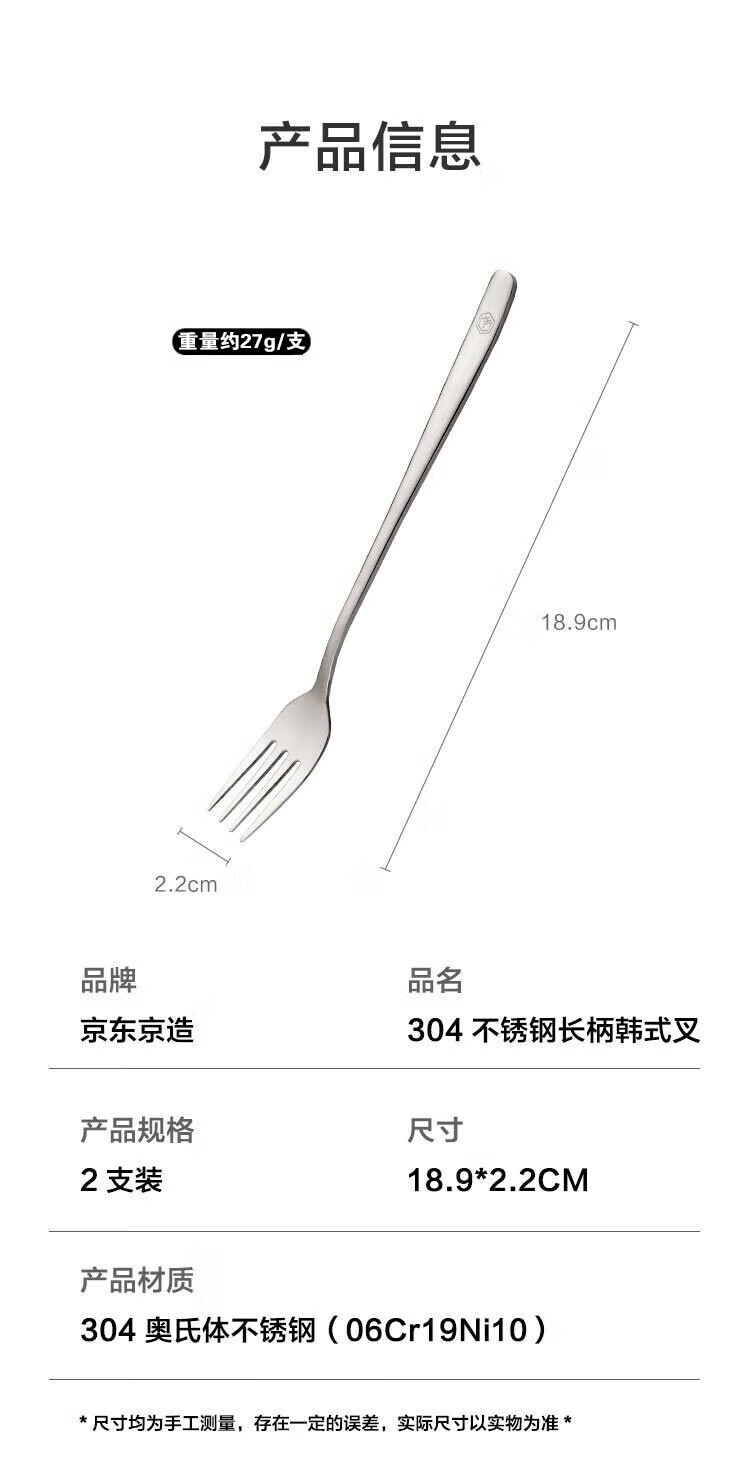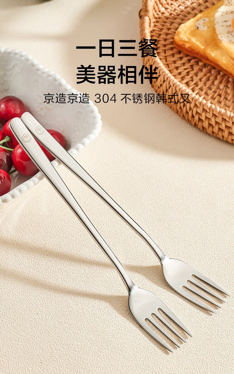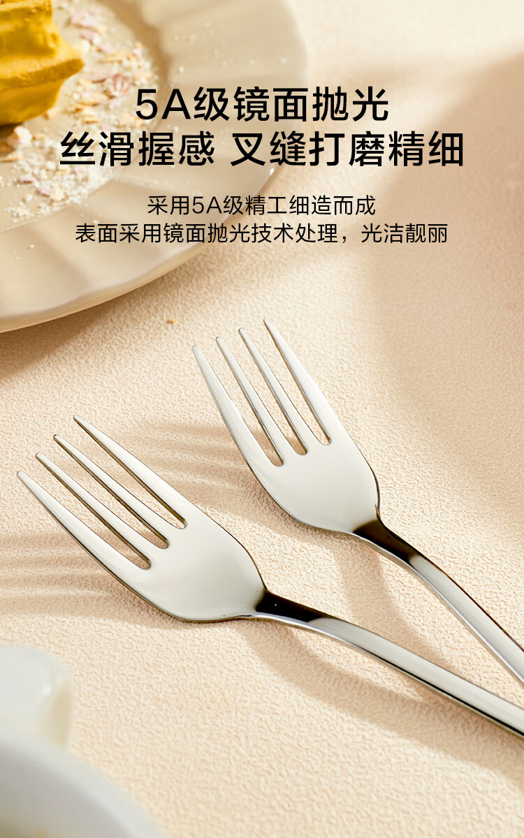 京东京造 叉子 水果叉牛排西餐不锈钢食品用韩式甜品叉【坚固耐用】2只装