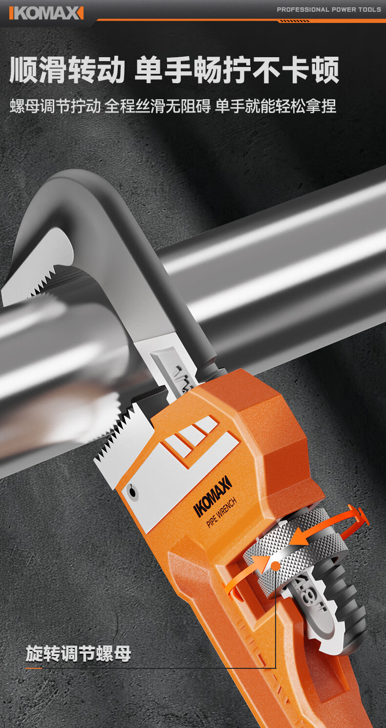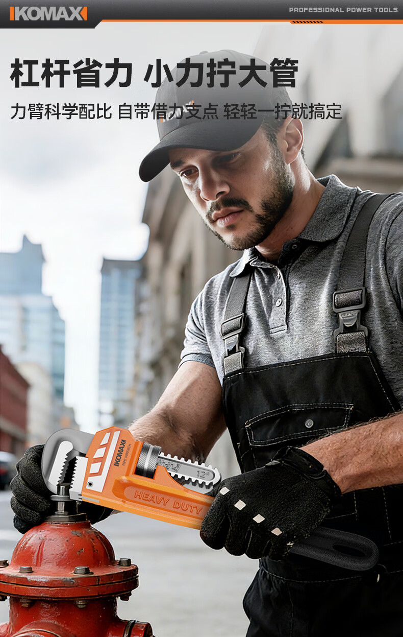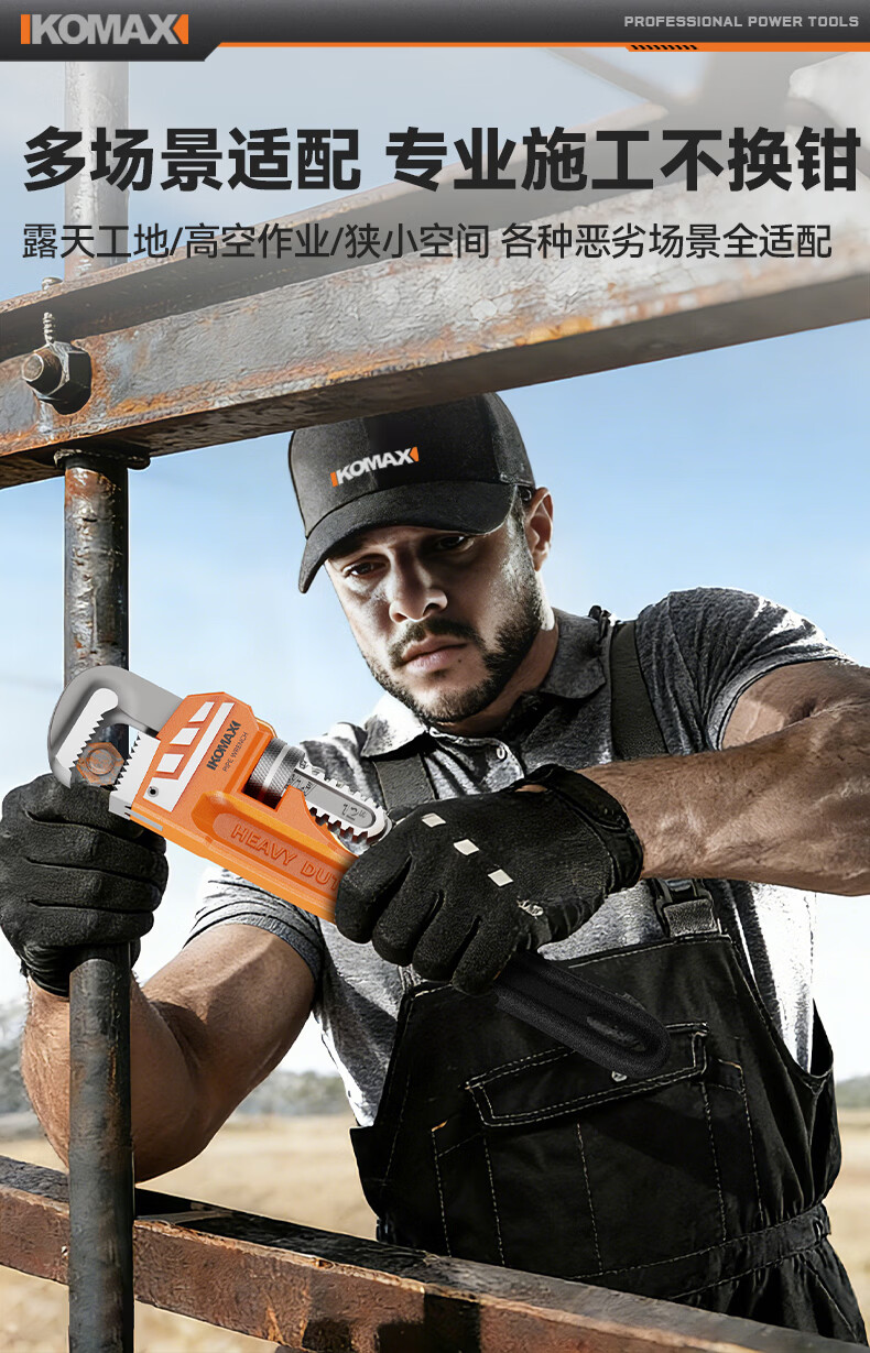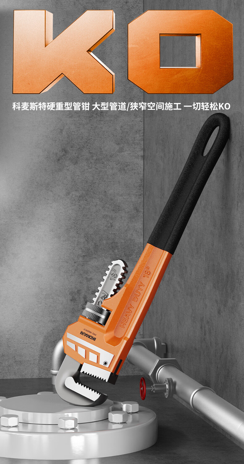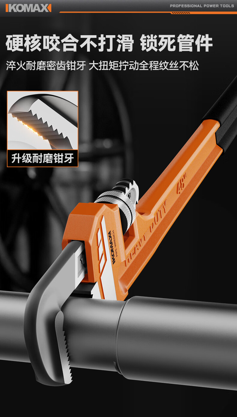 科麦斯(KOMAX)重型管钳管子钳扳手加强水管钳子 大开口紧喉钳多功能沾塑管钳 特硬重型管钳8寸