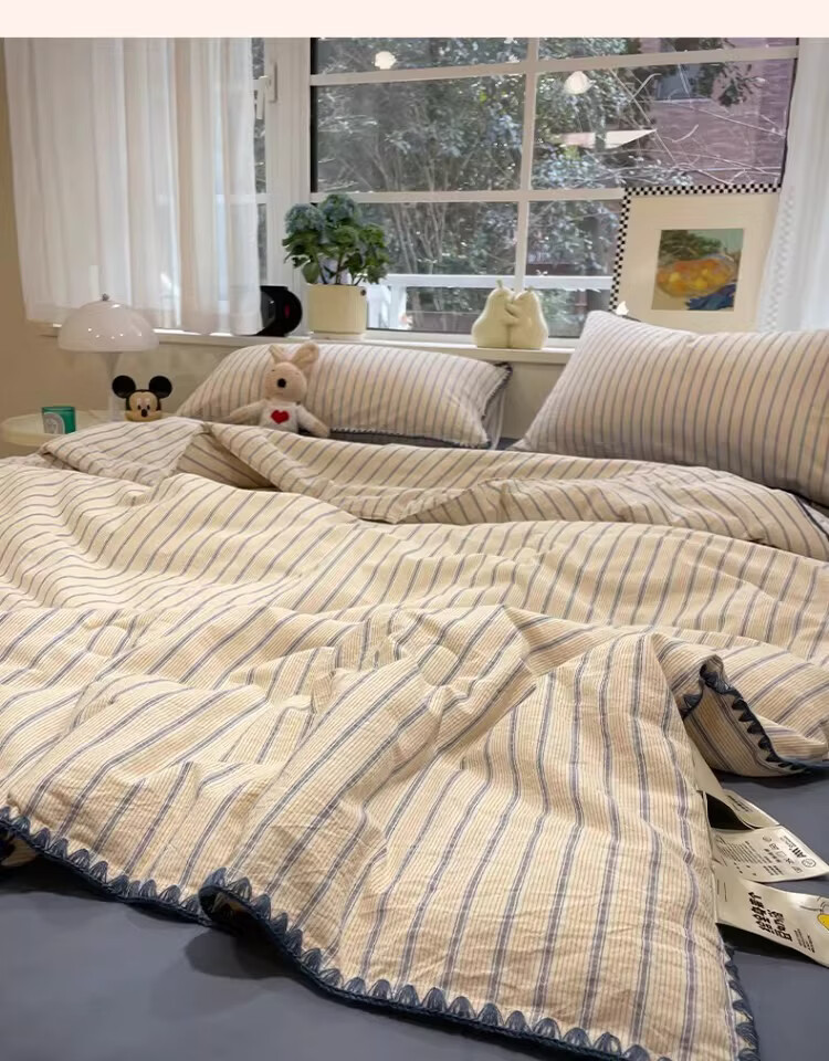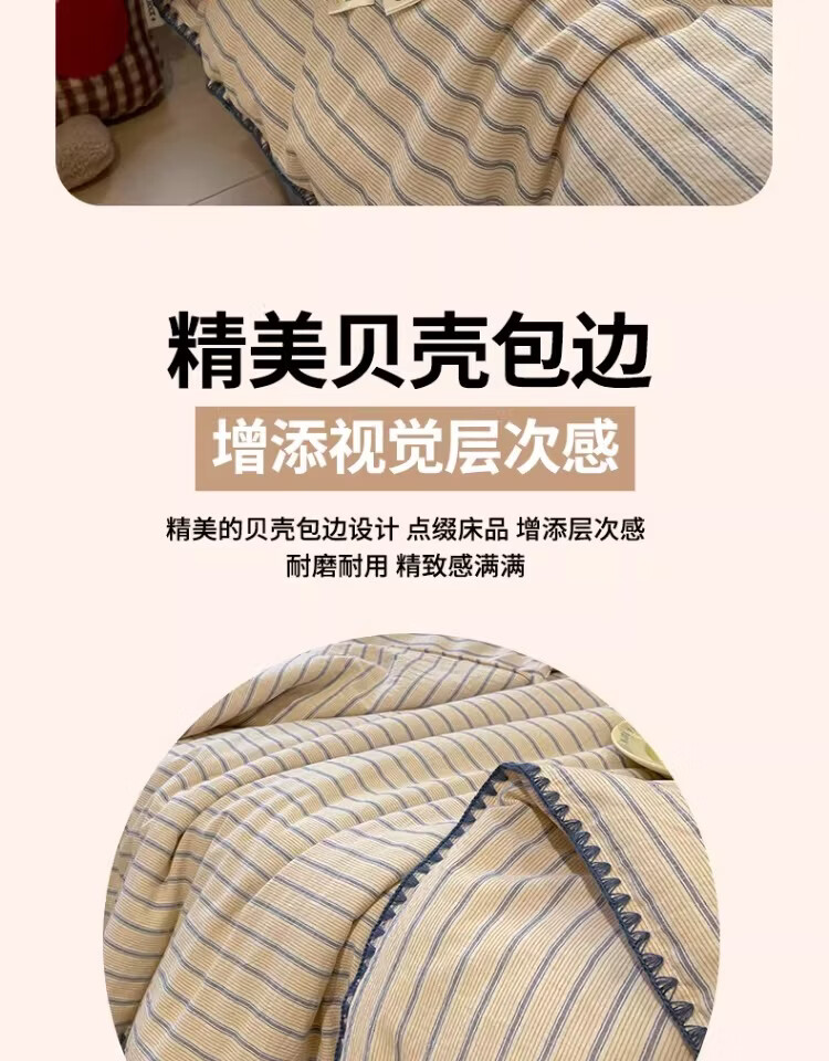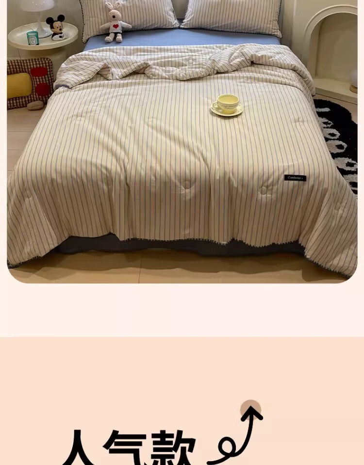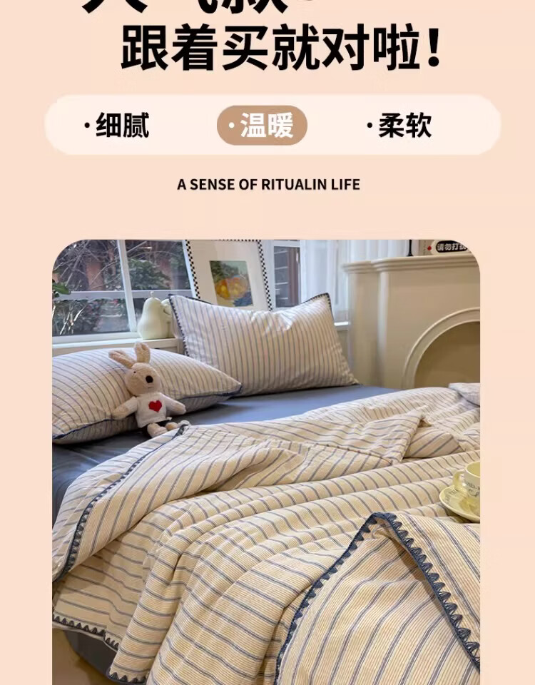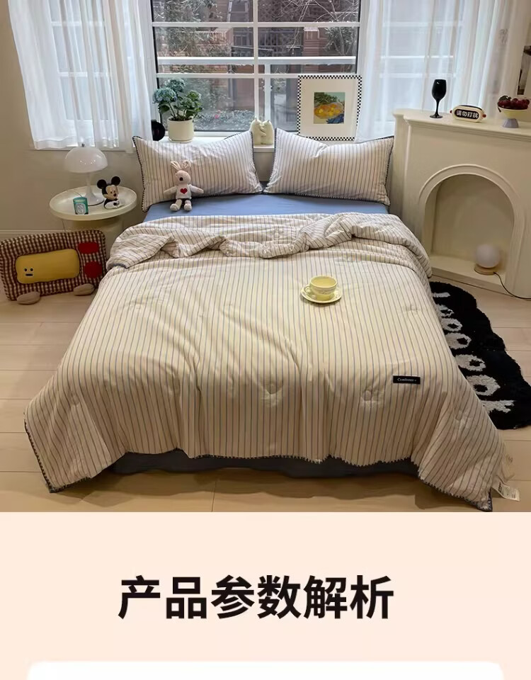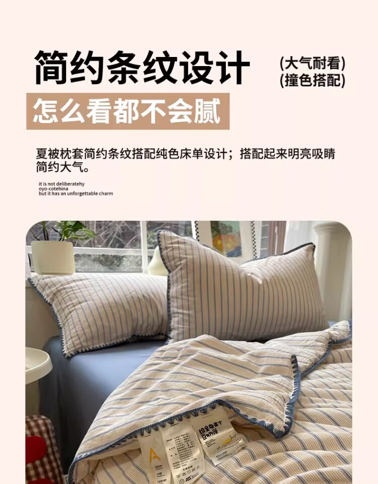无印良品大豆纤维夏凉被纯棉全棉夏季空调被宿舍单人可机洗裸睡薄被子被芯 色织条纹-铃兰【全棉面料 大豆填充 蓬松透气】 150cmx200cm单夏被