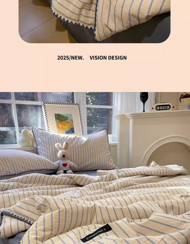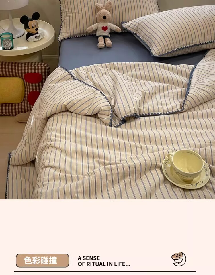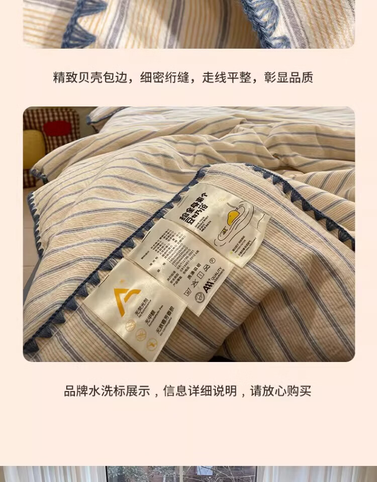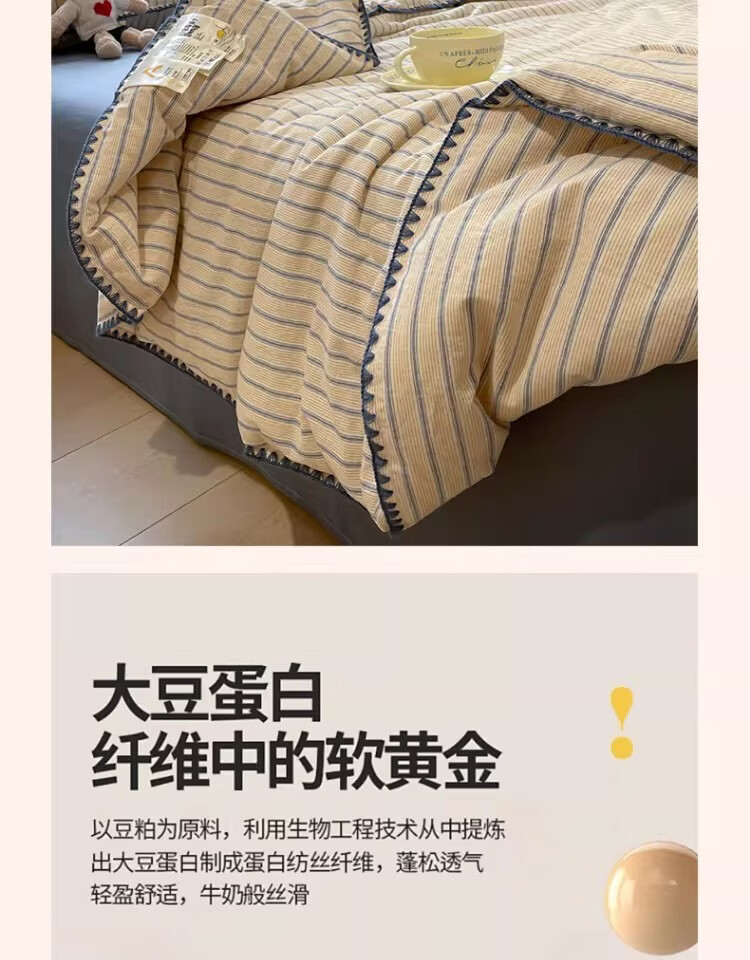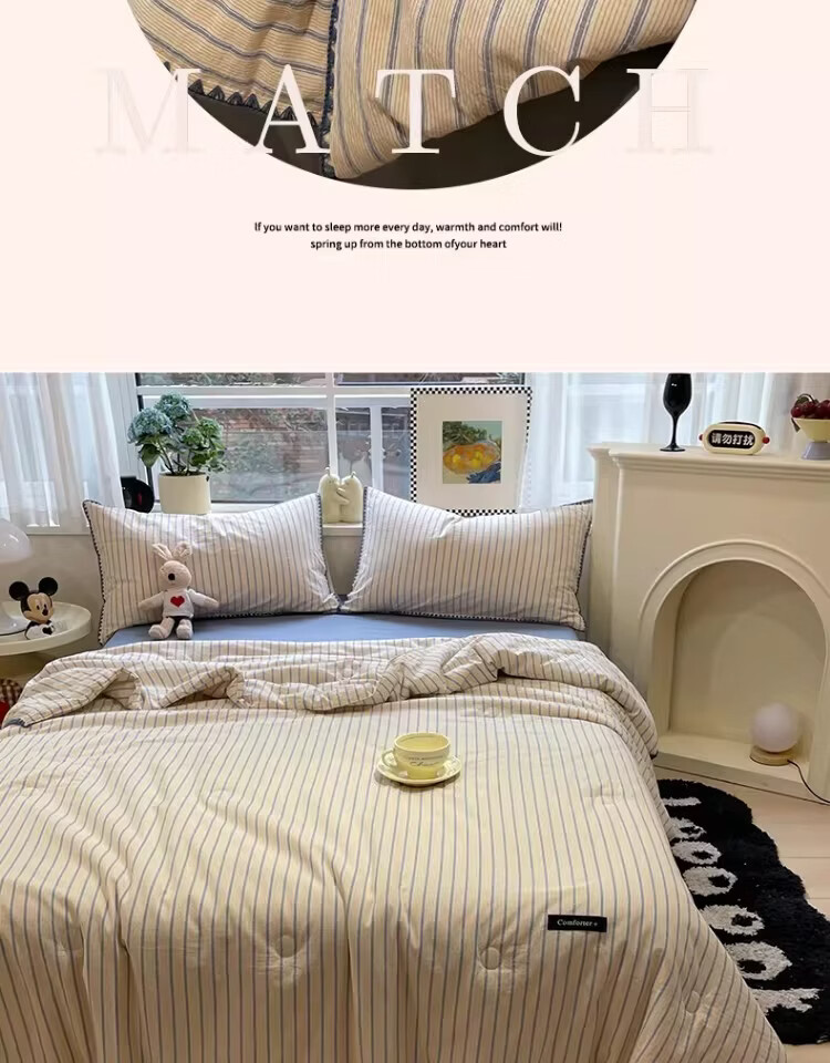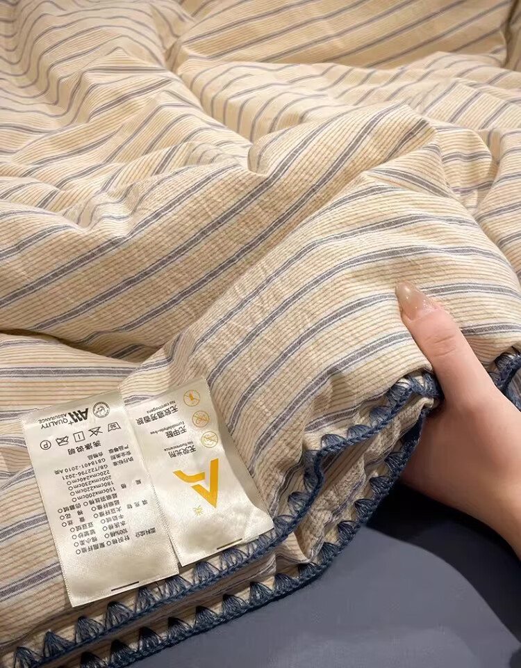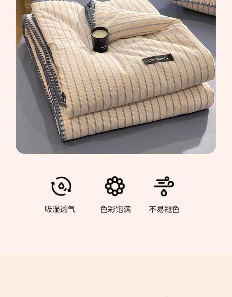 无印良品大豆纤维夏凉被纯棉全棉夏季空调被宿舍单人可机洗裸睡薄被子被芯 色织条纹-铃兰【全棉面料 大豆填充 蓬松透气】 150cmx200cm单夏被