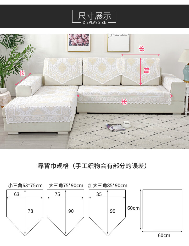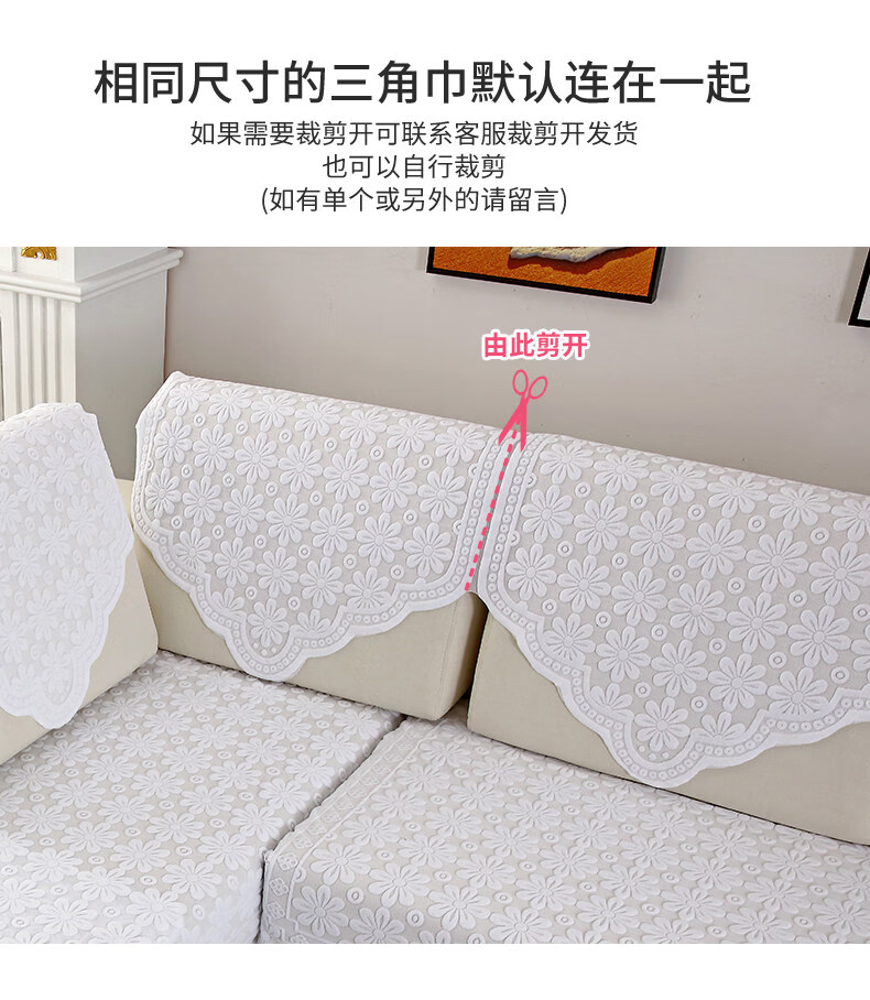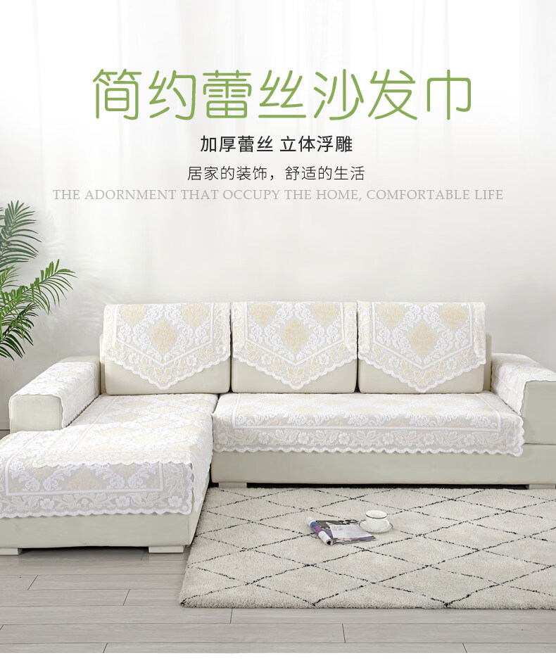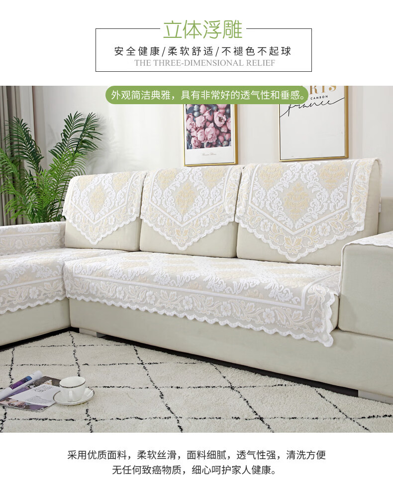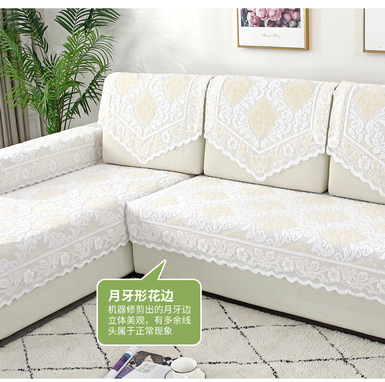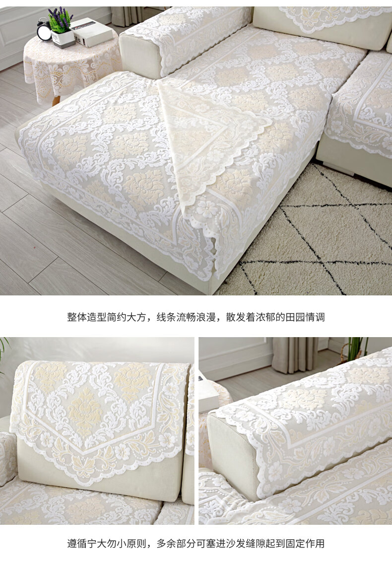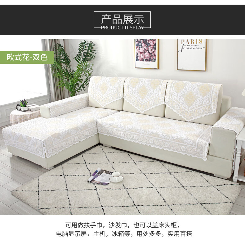 正圣单人沙发巾加厚蕾丝沙发靠背巾加厚防滑四季通用沙发扶手巾盖布 欧式花双色(黄白) 60cm*60cm 方巾