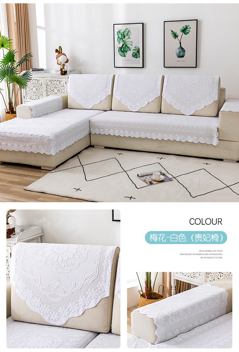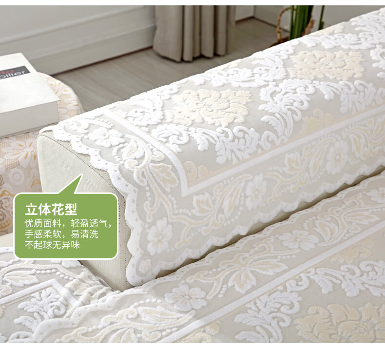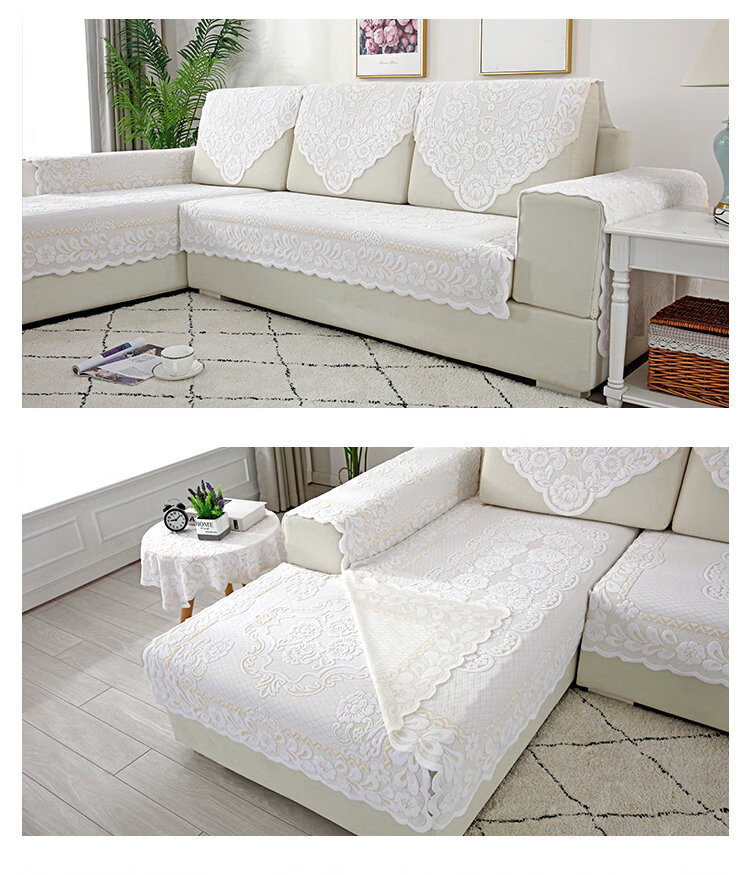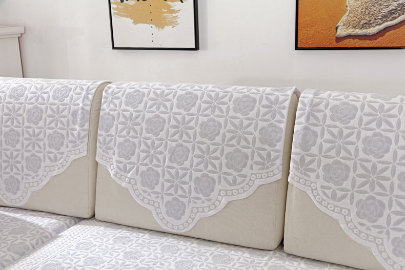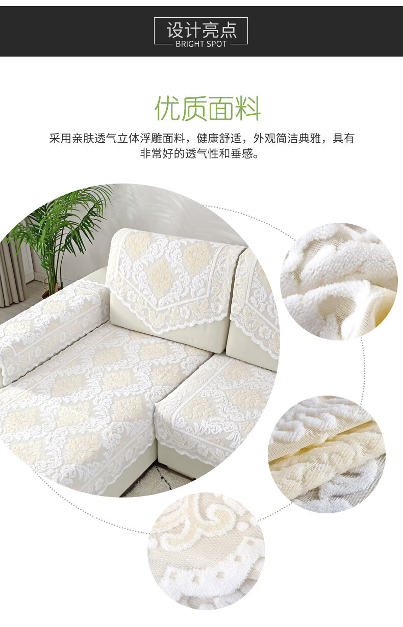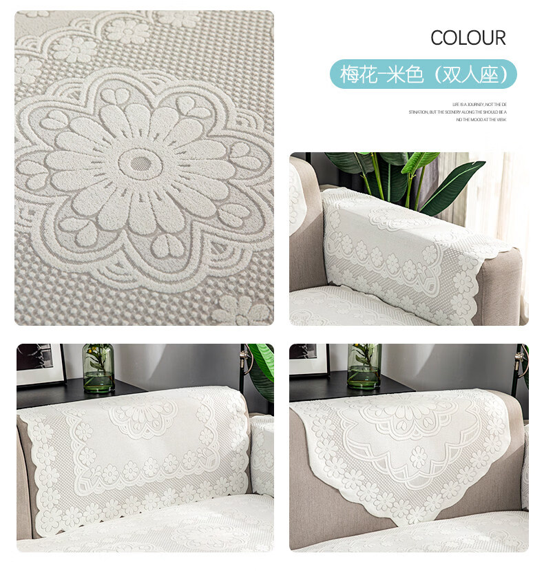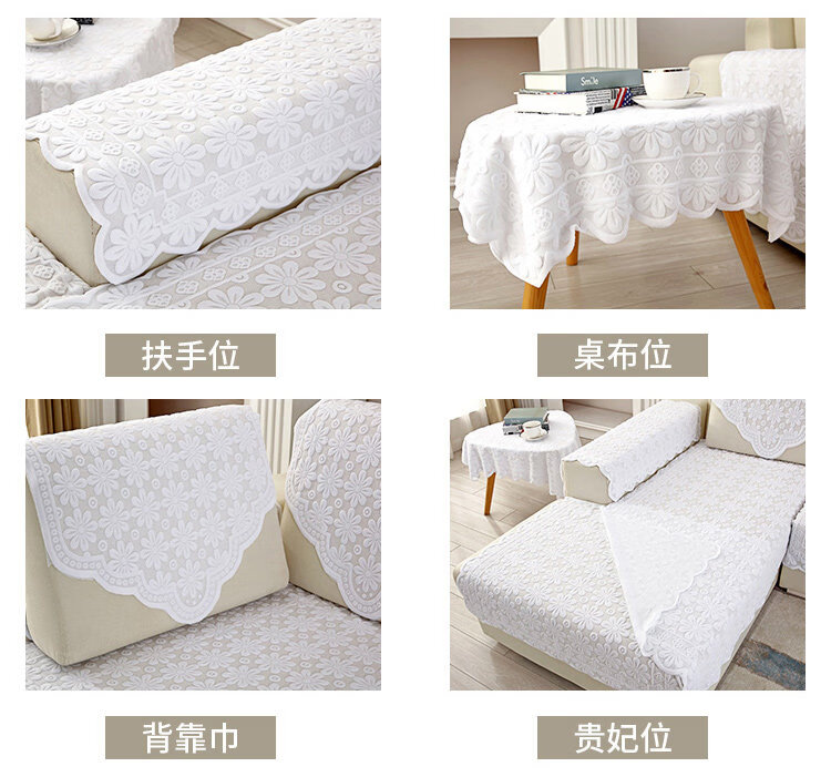 正圣单人沙发巾加厚蕾丝沙发靠背巾加厚防滑四季通用沙发扶手巾盖布 欧式花双色(黄白) 60cm*60cm 方巾