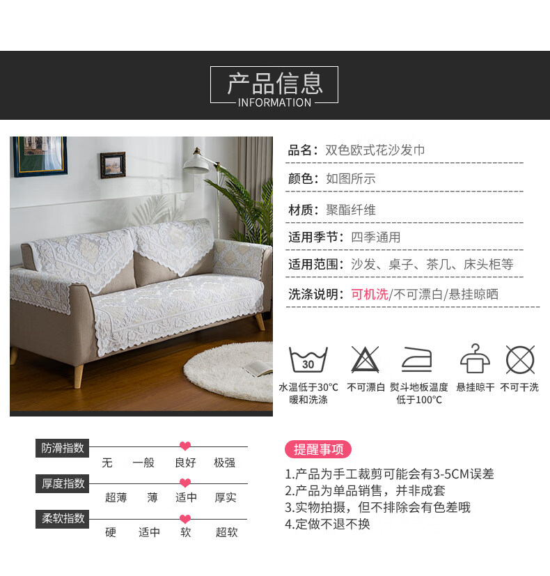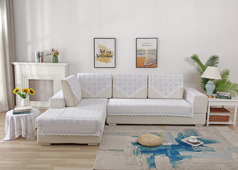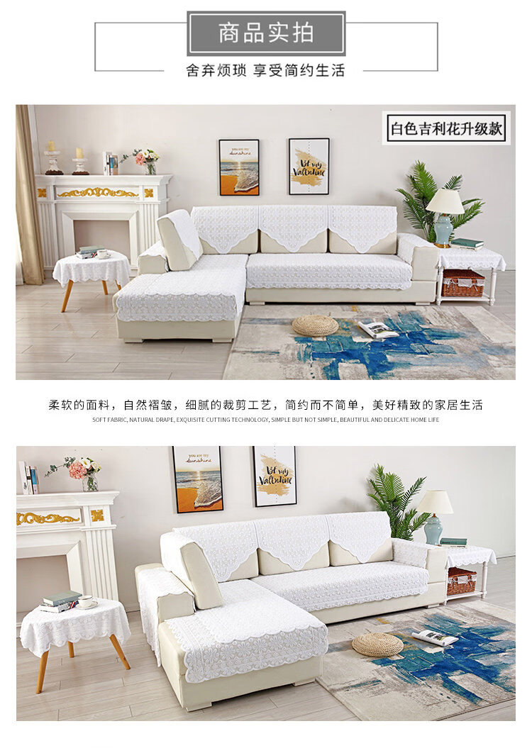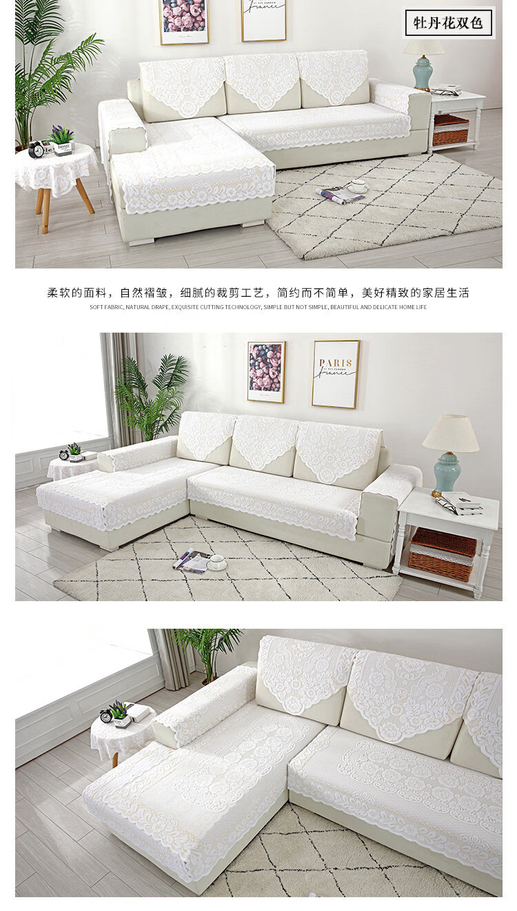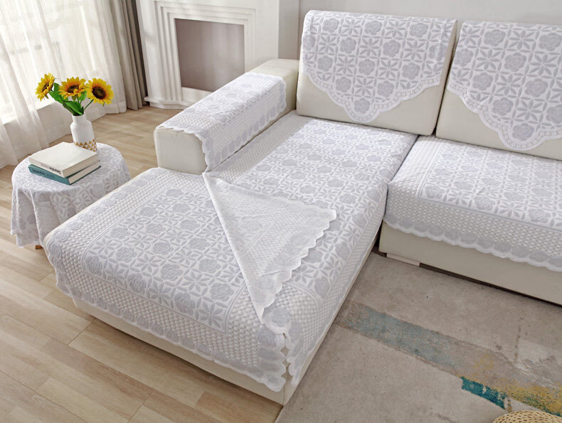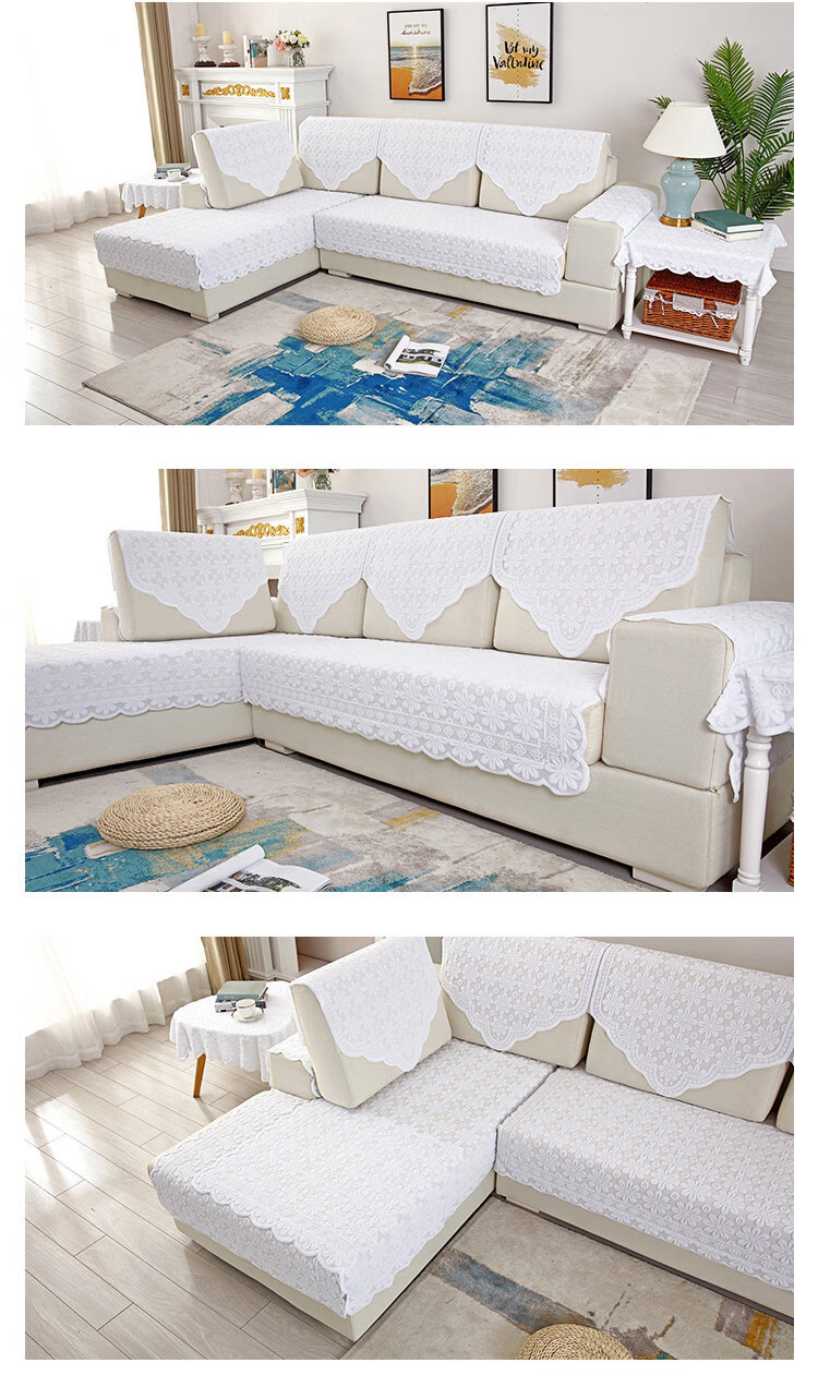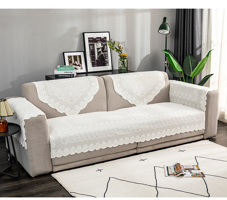 正圣单人沙发巾加厚蕾丝沙发靠背巾加厚防滑四季通用沙发扶手巾盖布 欧式花双色(黄白) 60cm*60cm 方巾