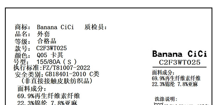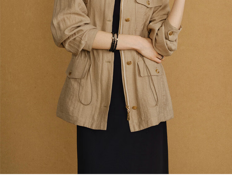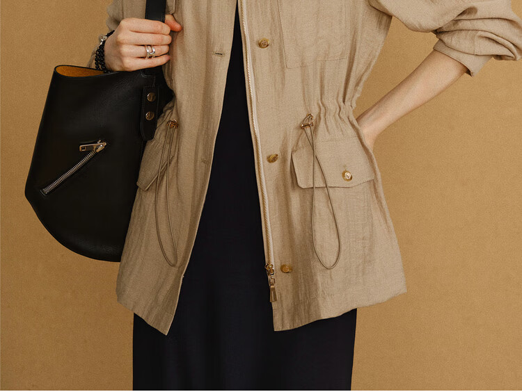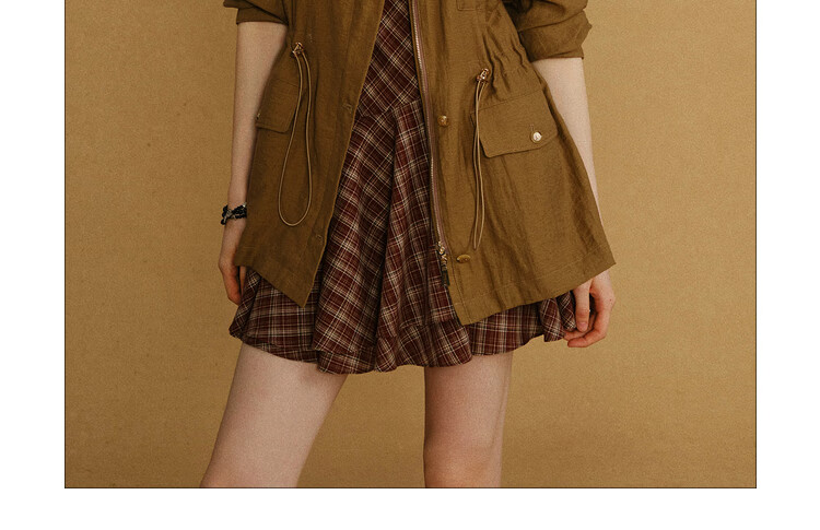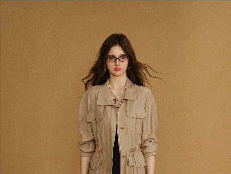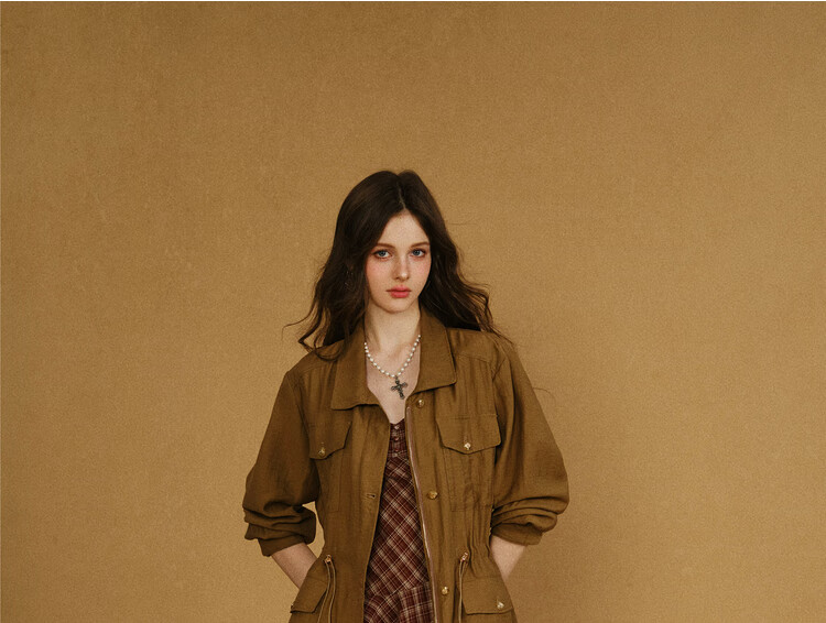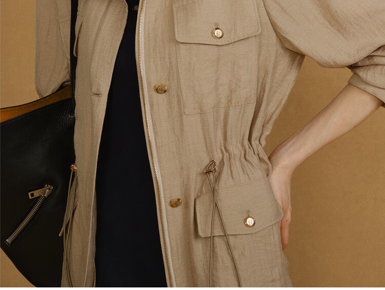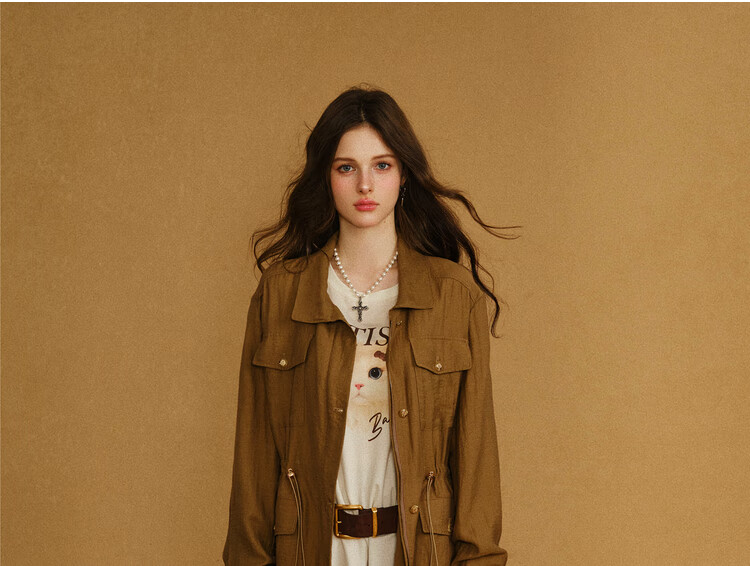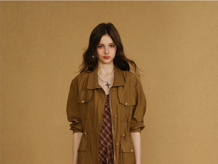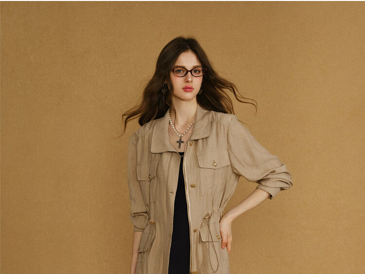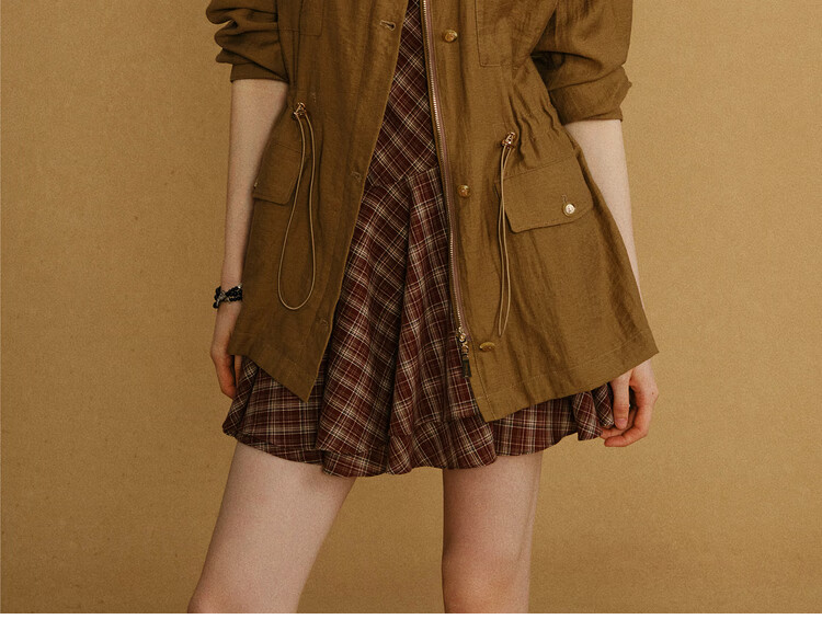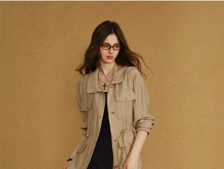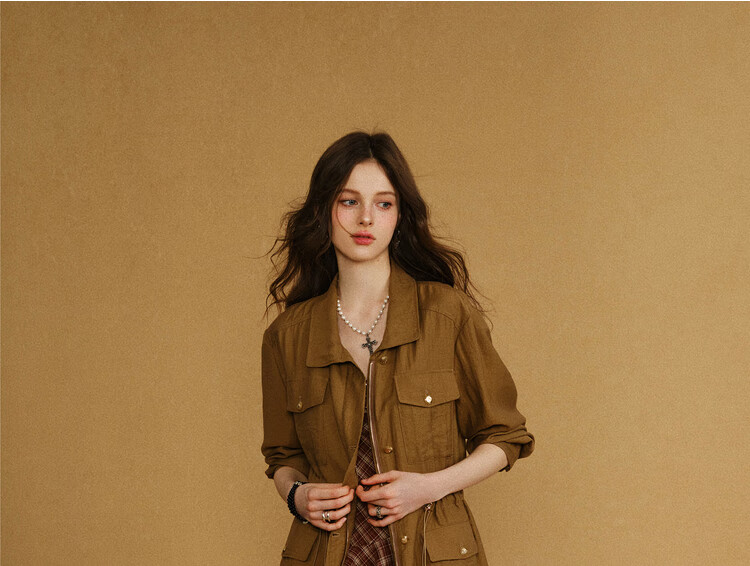 banana cici2025年秋季新款休闲工装风抽绳收腰风衣猎装夹克外套C2F3WT025 咖啡色 S