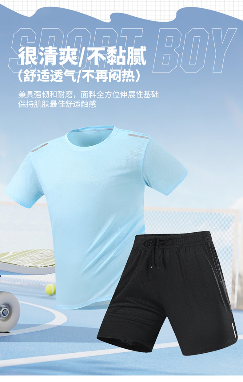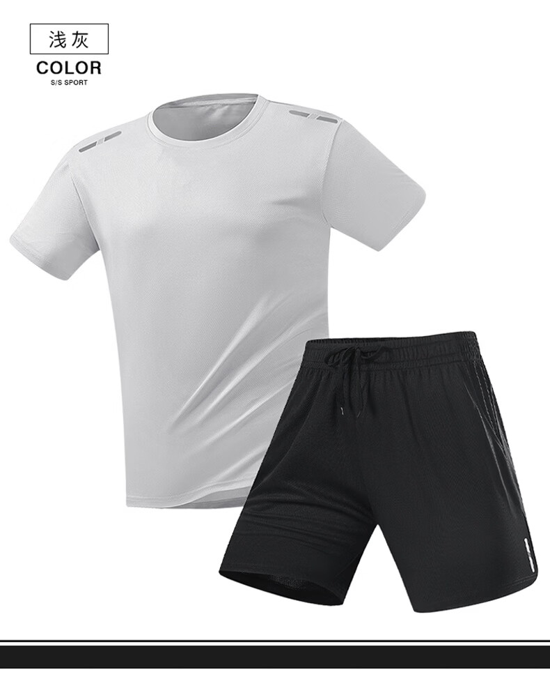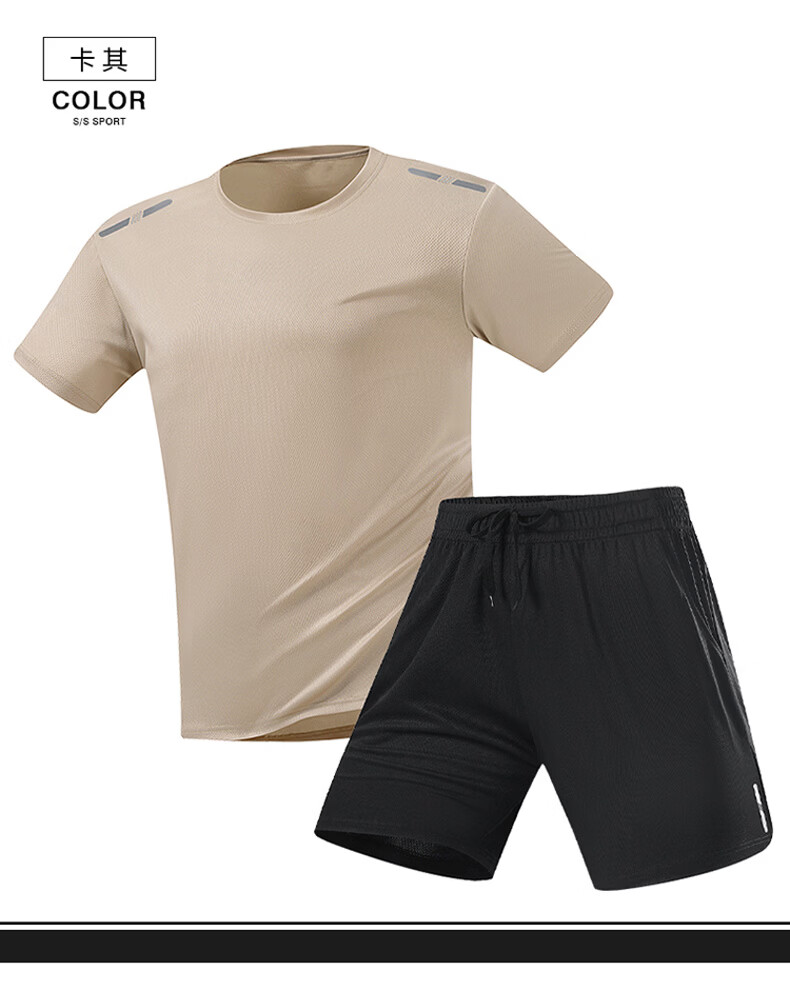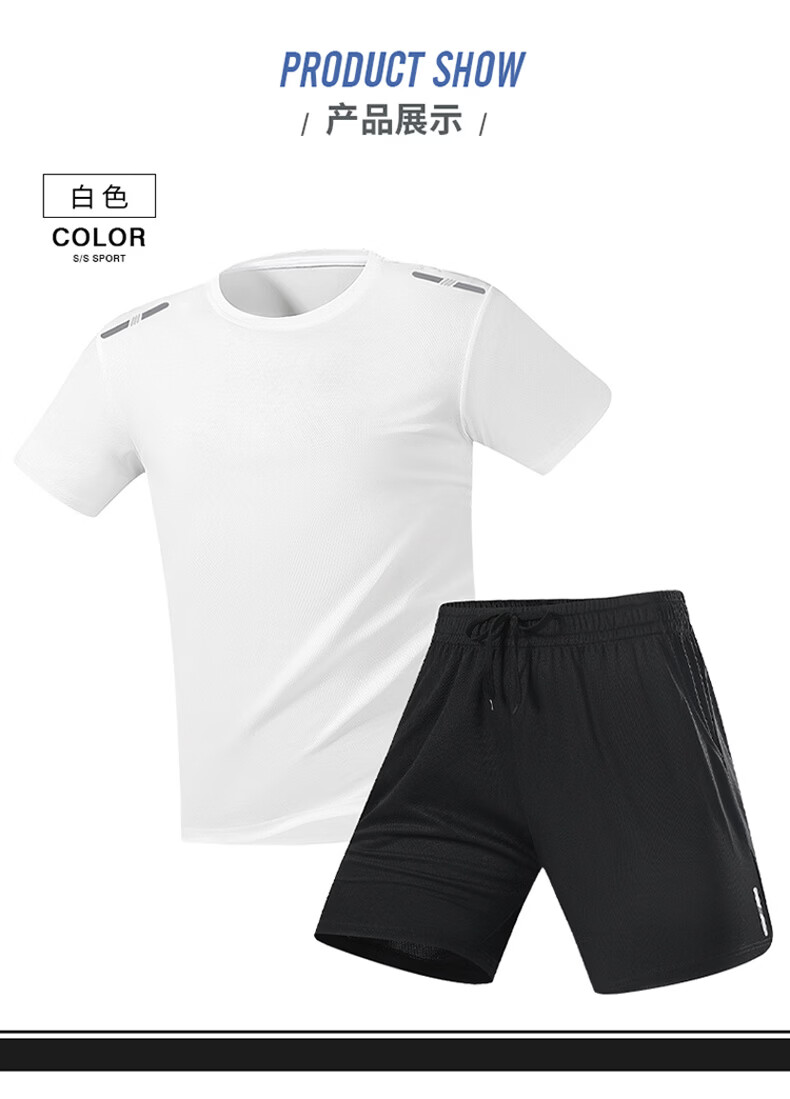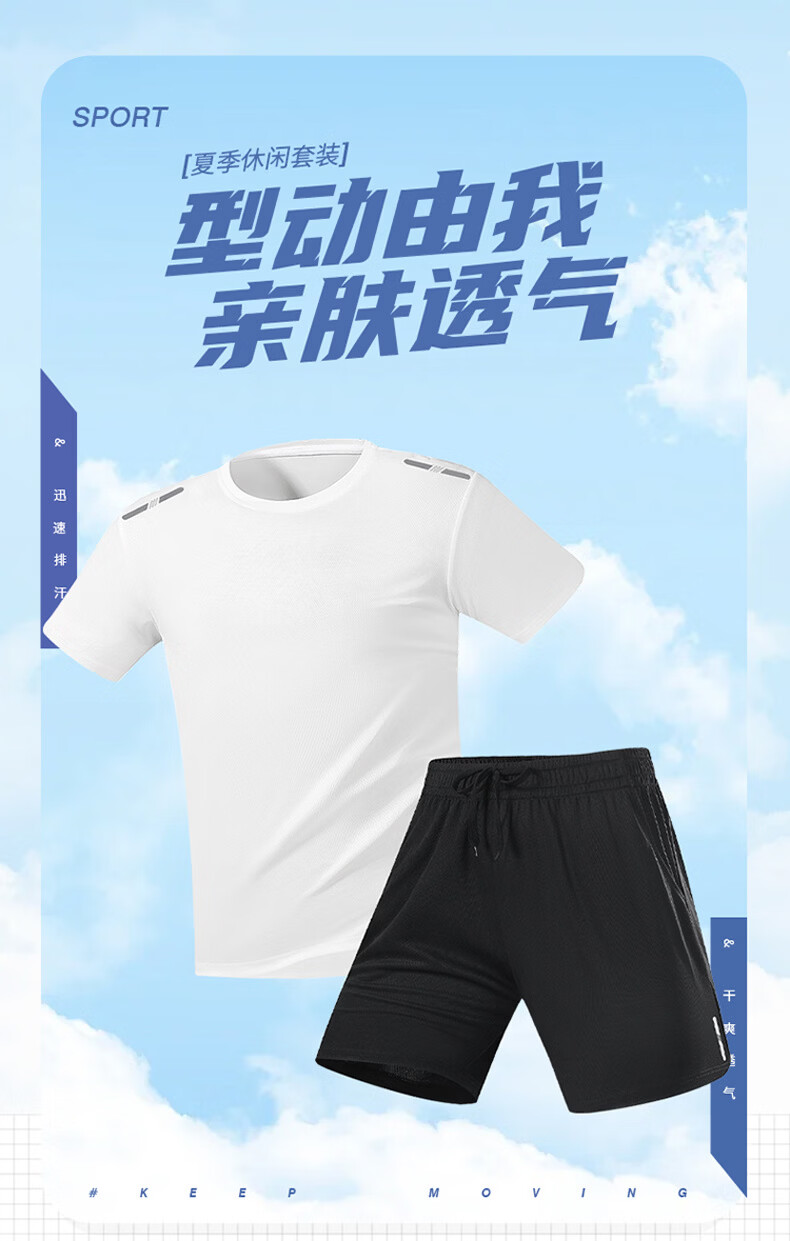 JEEP SPIRIT吉普男士冰丝速干套装夏季圆领t恤运动宽松短袖短裤两件短装 白色套装 XL