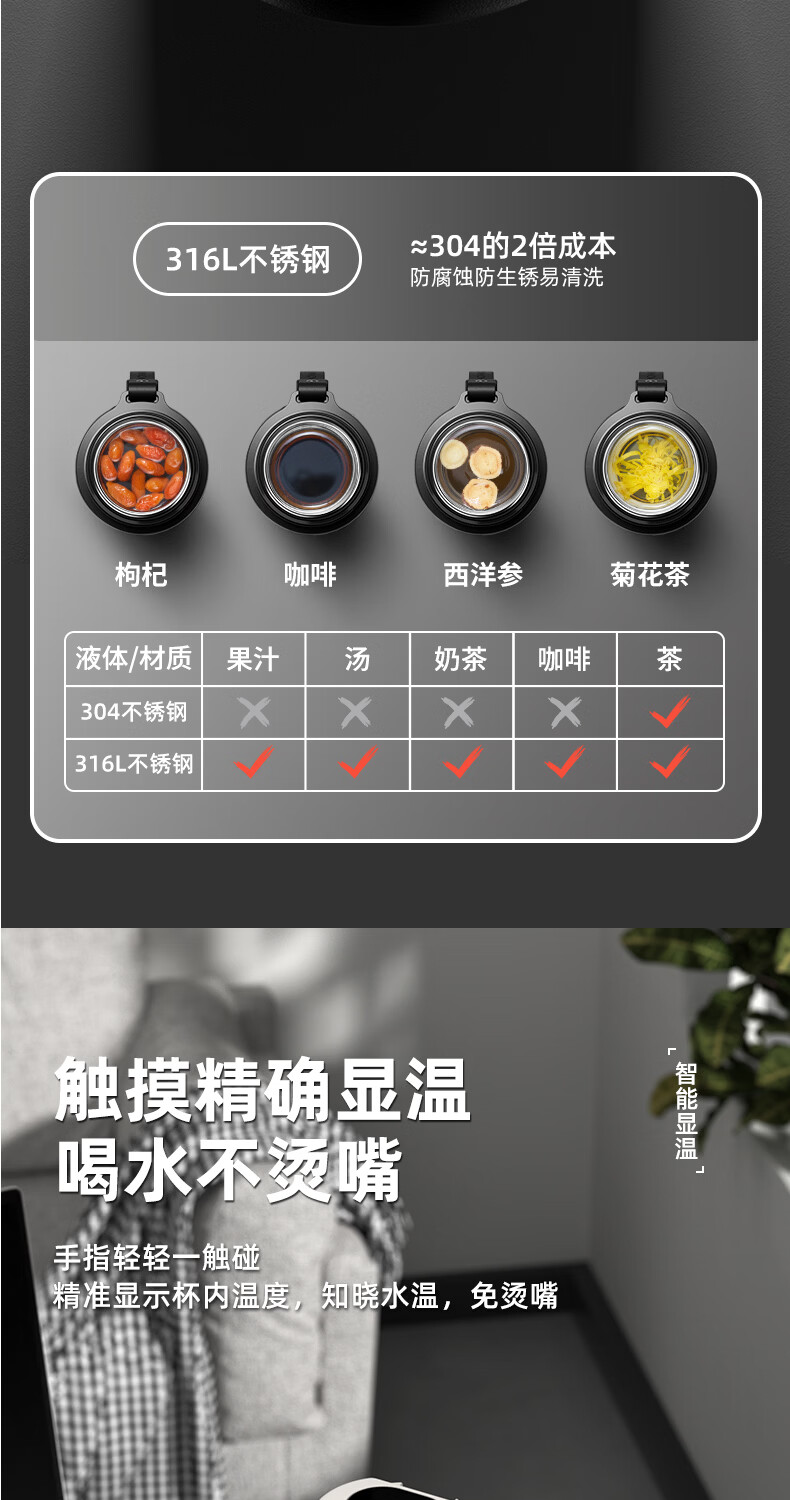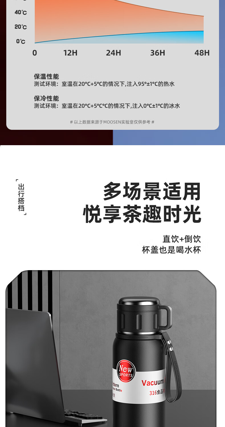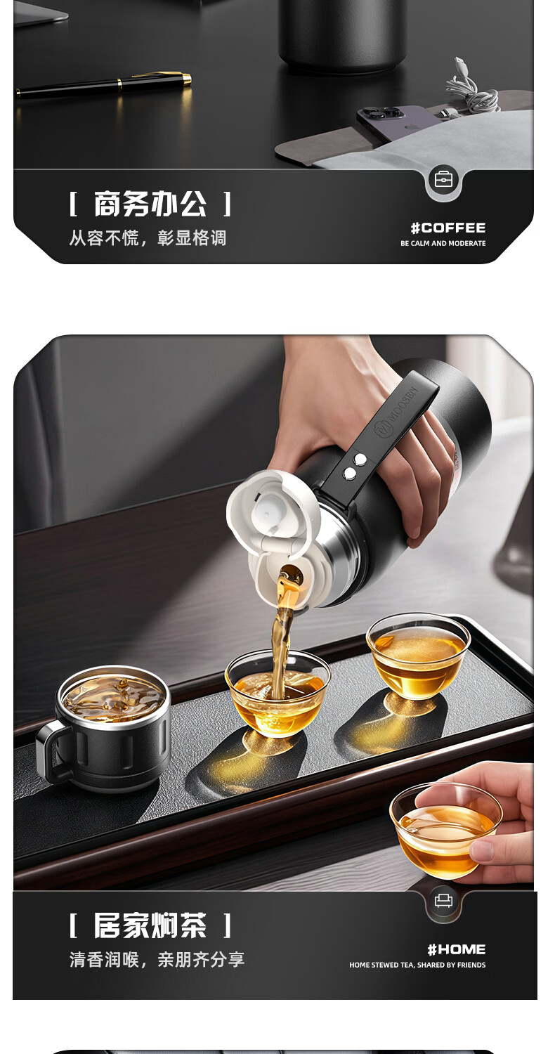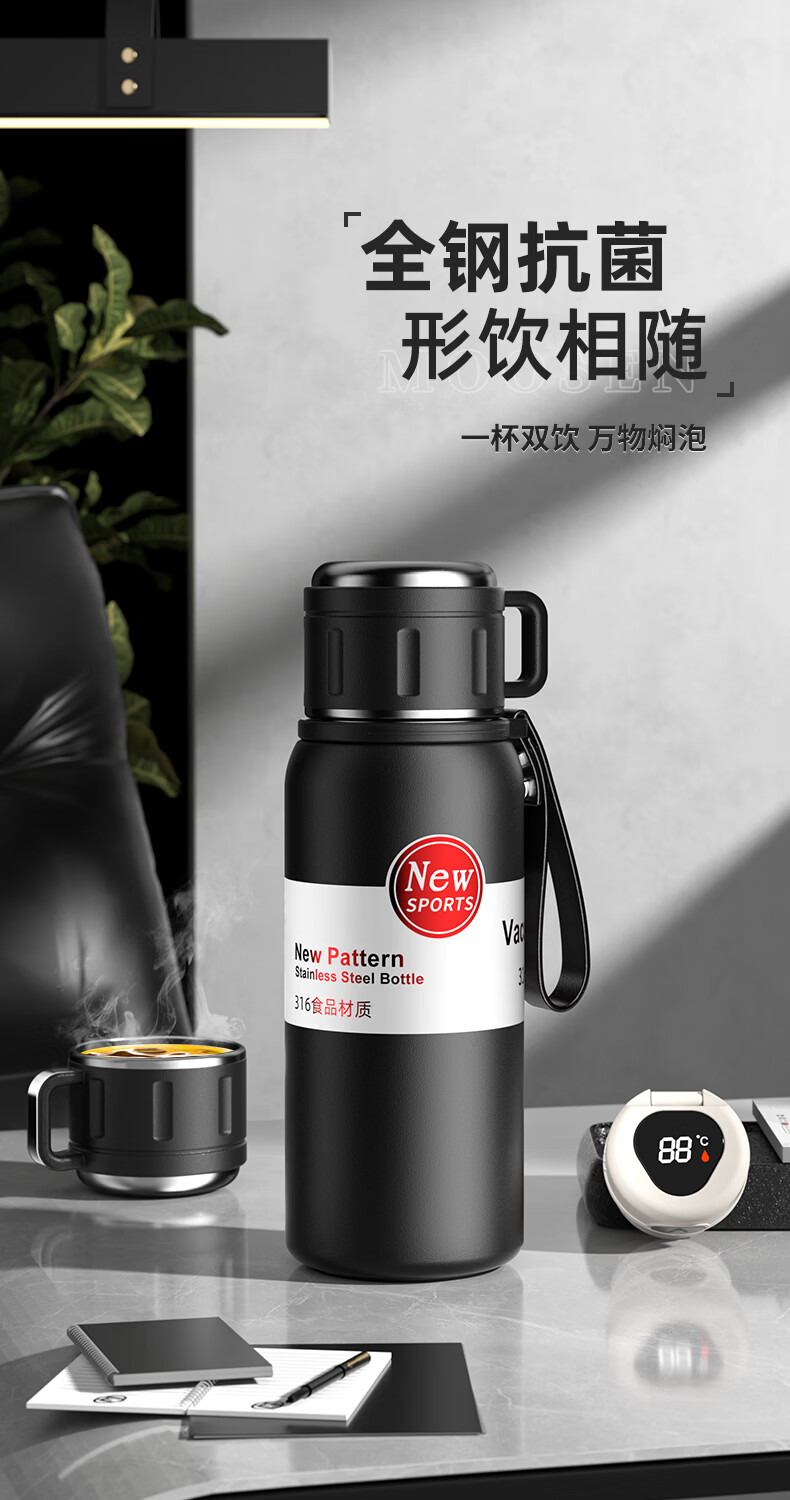 慕馨(moosen)保温杯男款大容量316不锈钢学生保冷水杯智能茶水分离泡茶杯子 【智能款】黑600ml-保温保冷