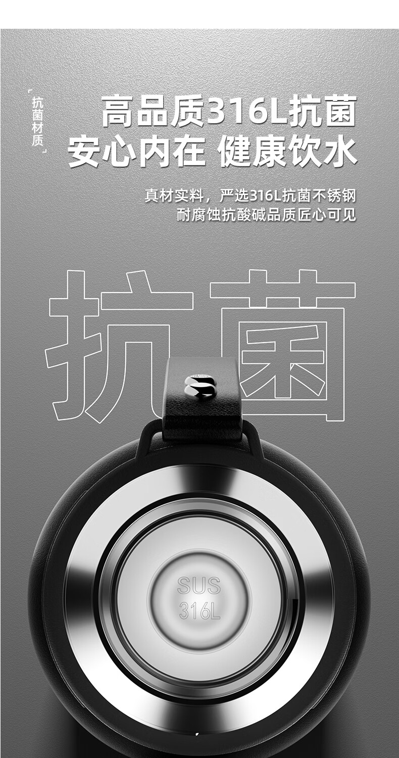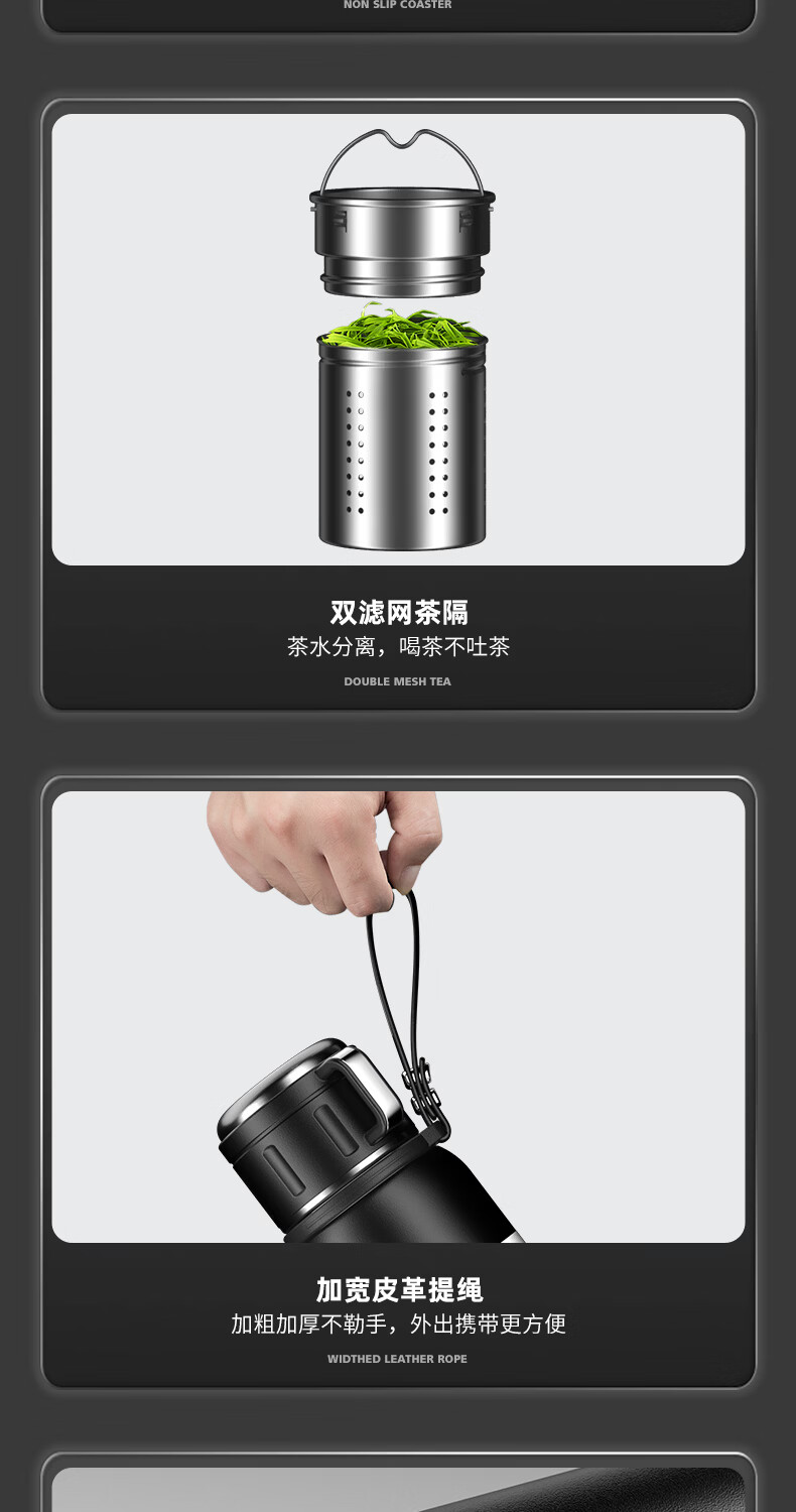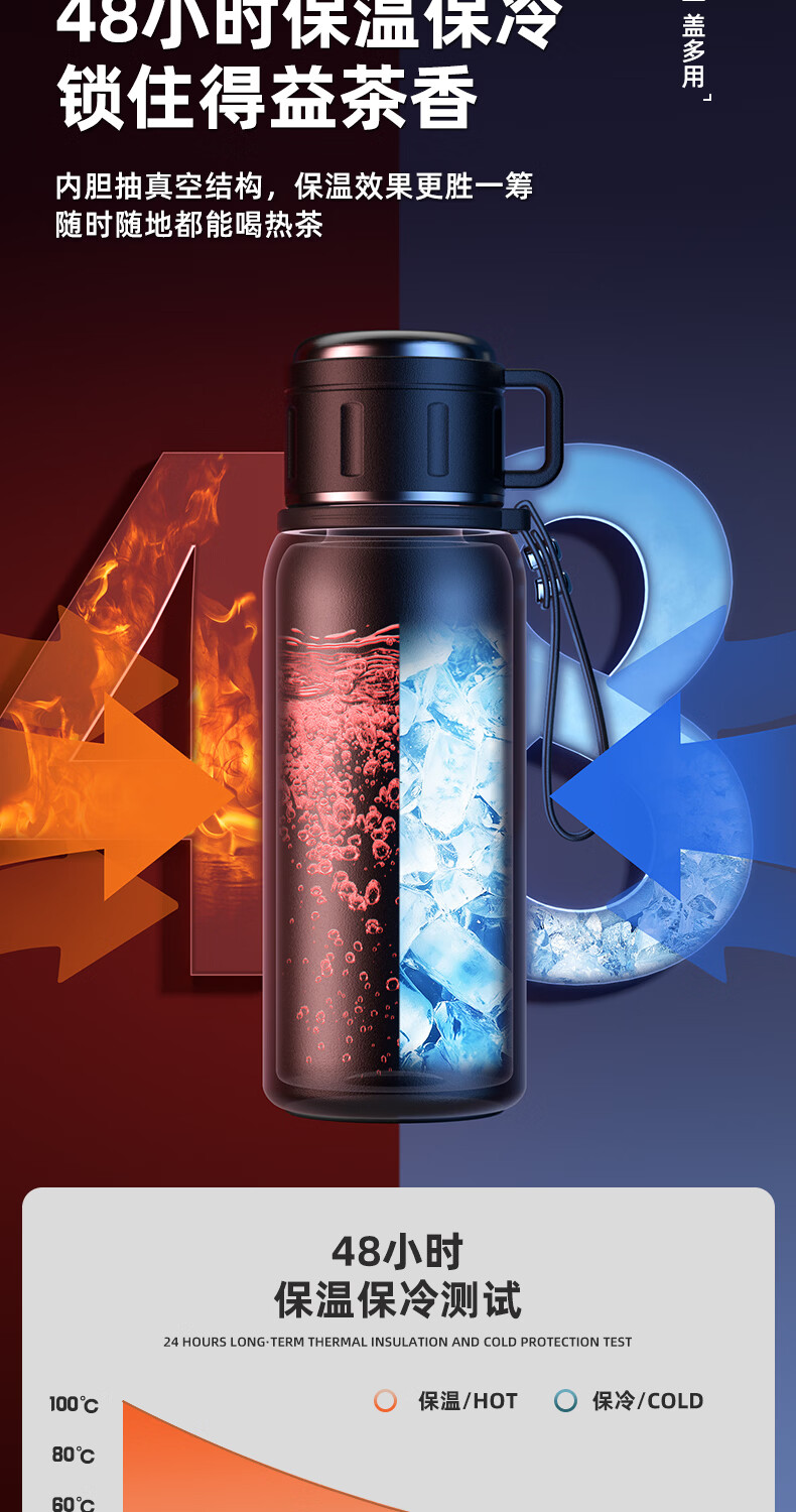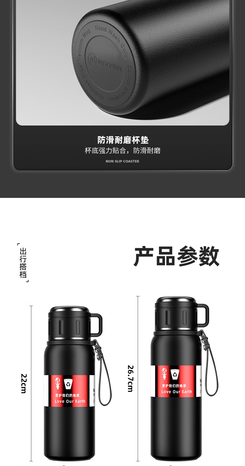 慕馨(moosen)保温杯男款大容量316不锈钢学生保冷水杯智能茶水分离泡茶杯子 【智能款】黑600ml-保温保冷