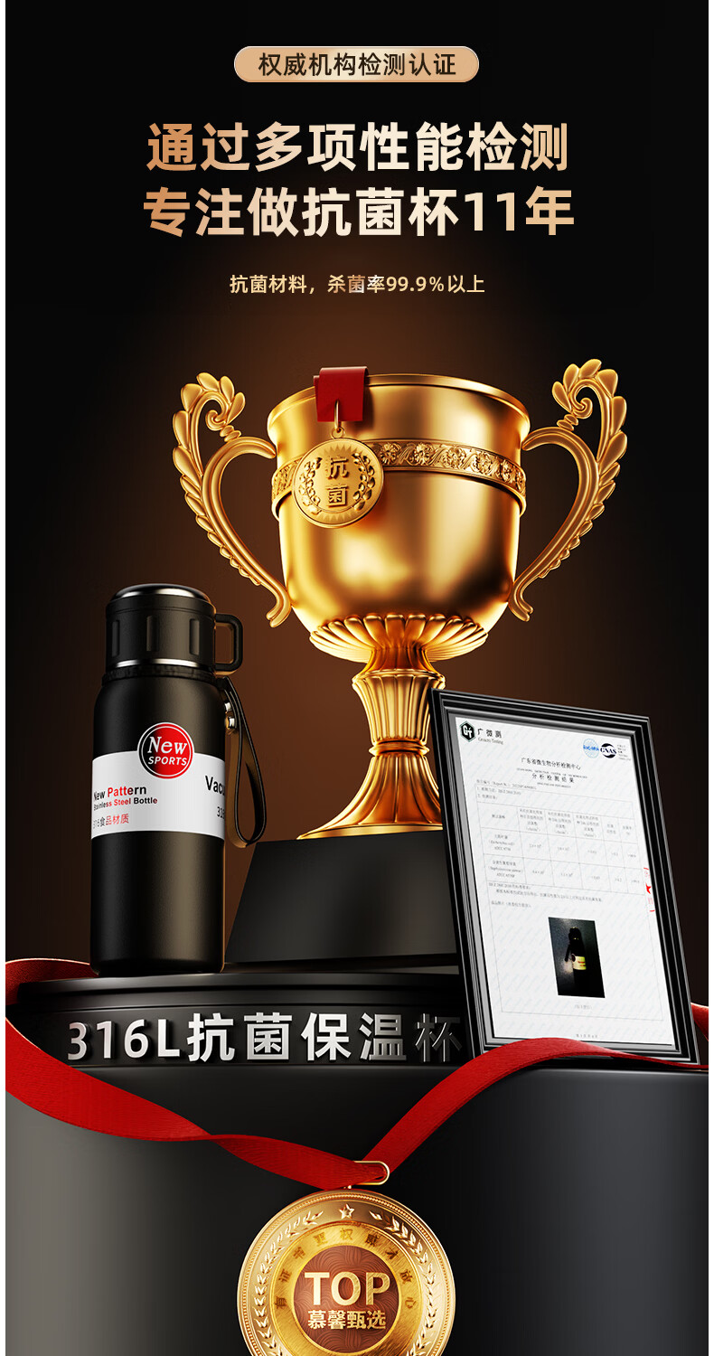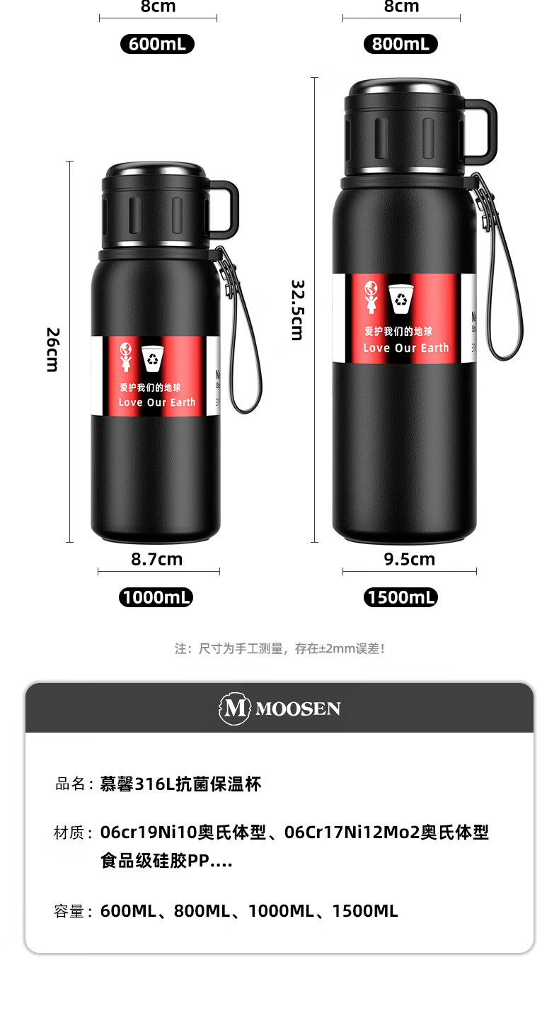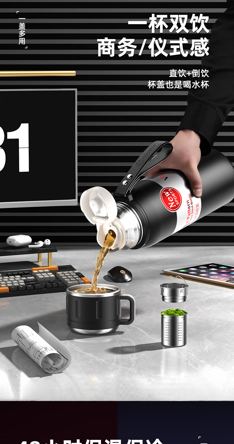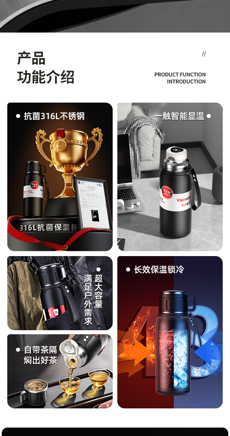 慕馨(moosen)保温杯男款大容量316不锈钢学生保冷水杯智能茶水分离泡茶杯子 【智能款】黑600ml-保温保冷