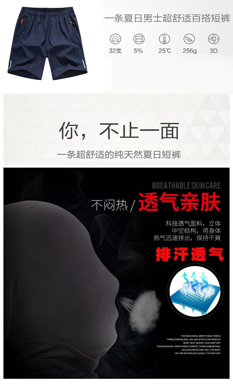 绿蜜蜂男士短裤夏季冰丝运动速干裤宽松5分大裤衩外穿沙滩休闲中裤批发 黑色 M