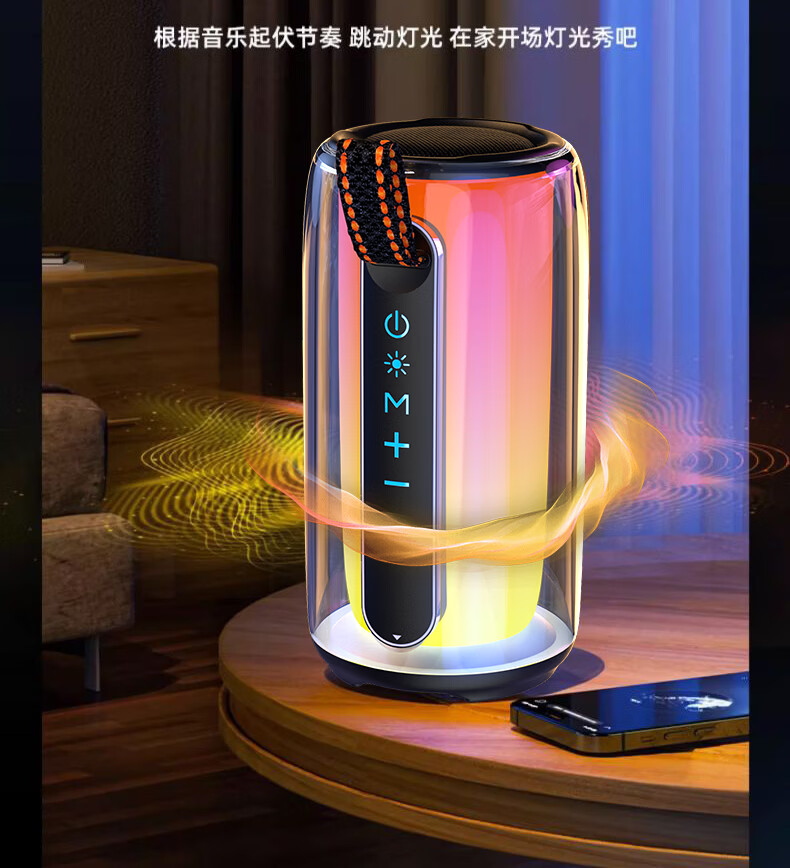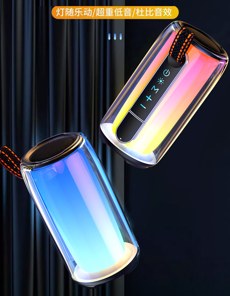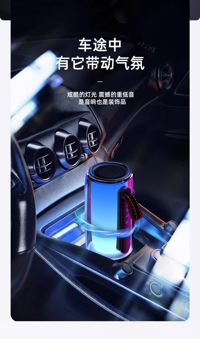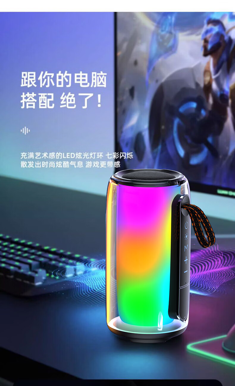GloryKylin柏林之声无线便携TWS蓝牙音箱桌面户外性能防水重低音小钢炮音响全景立体音效可插卡U盘生日礼物 PULSE7黑色【支持插卡/U盘+9D立体音效+HIFI级音质】 官方标配