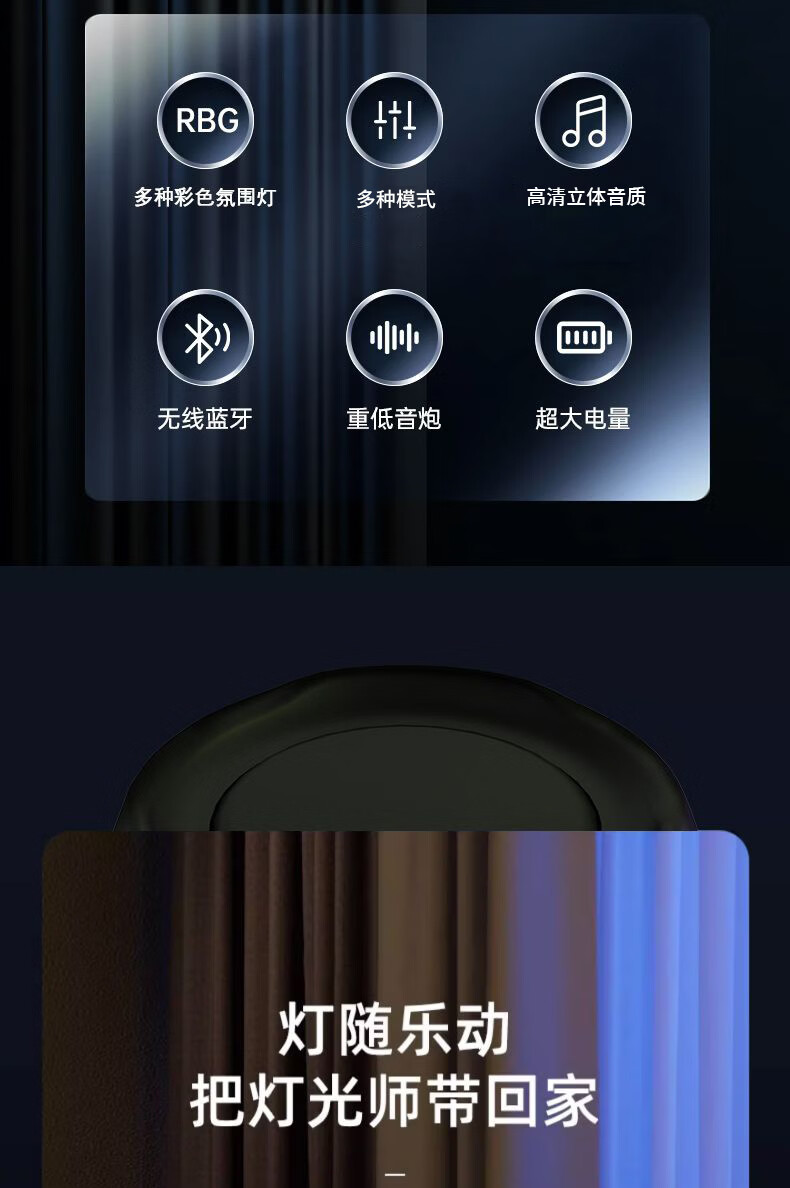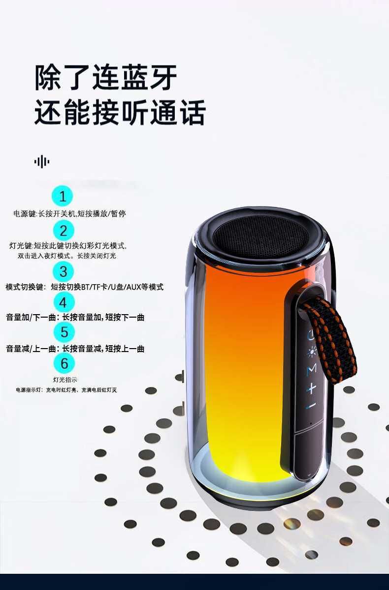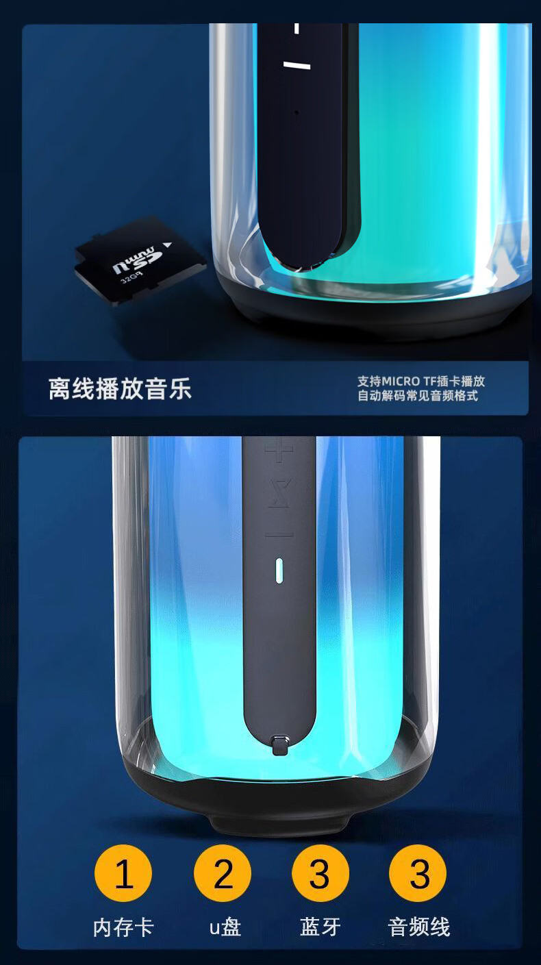 GloryKylin柏林之声无线便携TWS蓝牙音箱桌面户外性能防水重低音小钢炮音响全景立体音效可插卡U盘生日礼物 PULSE7黑色【支持插卡/U盘+9D立体音效+HIFI级音质】 官方标配