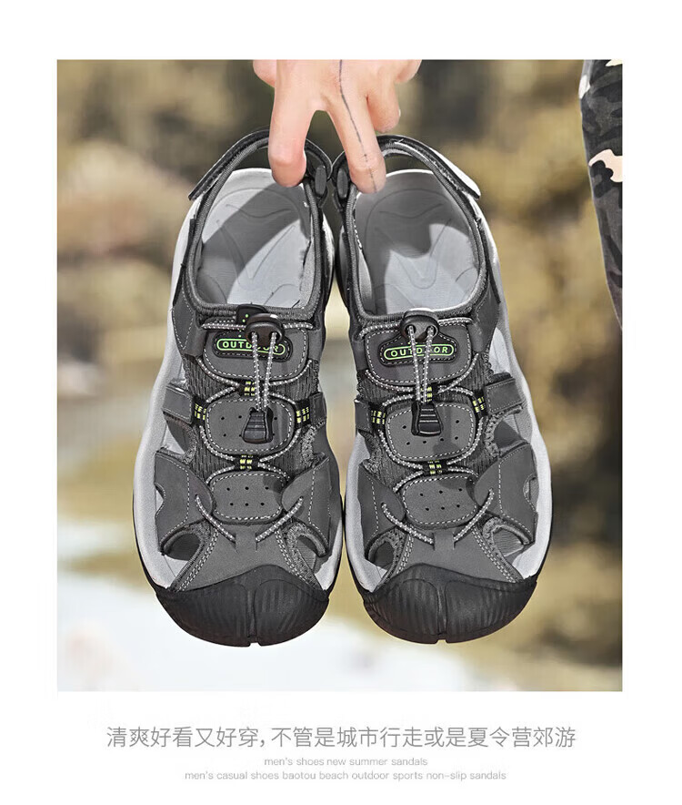 双星(shuangxing)男鞋2026新款夏季包头沙滩鞋户外休闲运动凉鞋男士防撞外穿凉拖鞋 黑色WDSM-66275 41