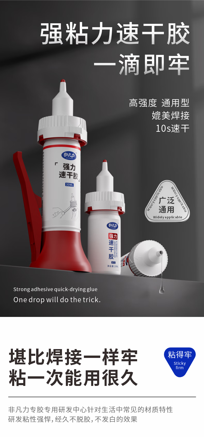 非凡力强力万能胶水京东粘鞋底补鞋模型塑料金属陶瓷亚克力木头玻璃铁家具速干胶 【超值】强力万能速干胶30ml