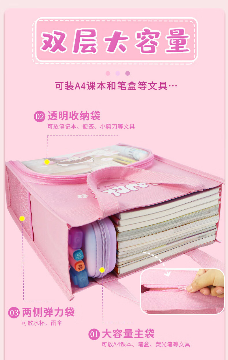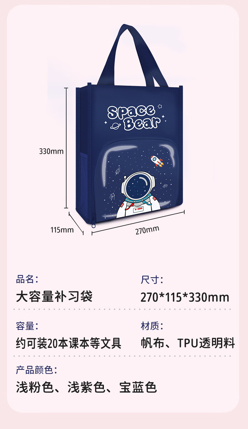 【严选百货】高颜值加厚补习袋ins手提拎书袋小学生作业补课包防 8001-1北极熊(1个装)
