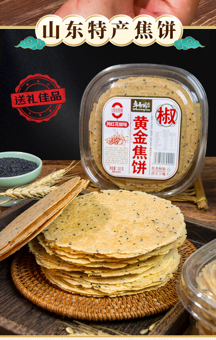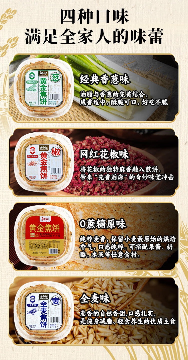 卓香园黄金焦饼香酥焦饼老式饼干糕点心香葱花椒味薄脆煎饼全麦休闲零食 【原味+香葱味+全麦杂粮味+花椒味】4盒