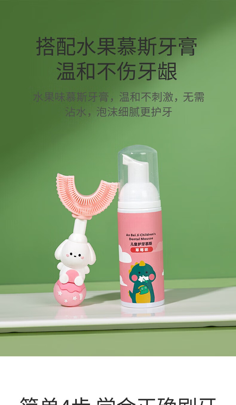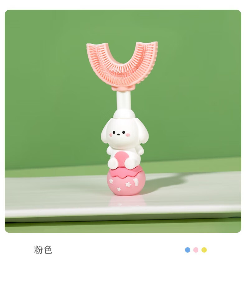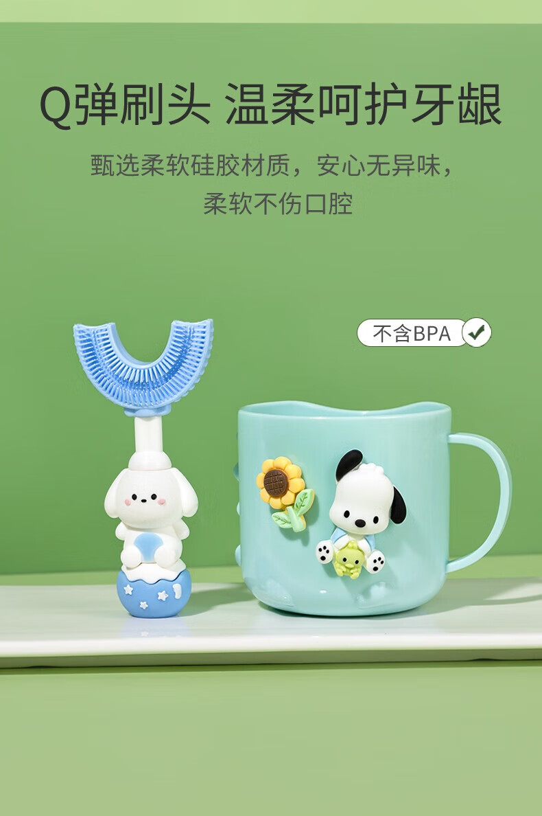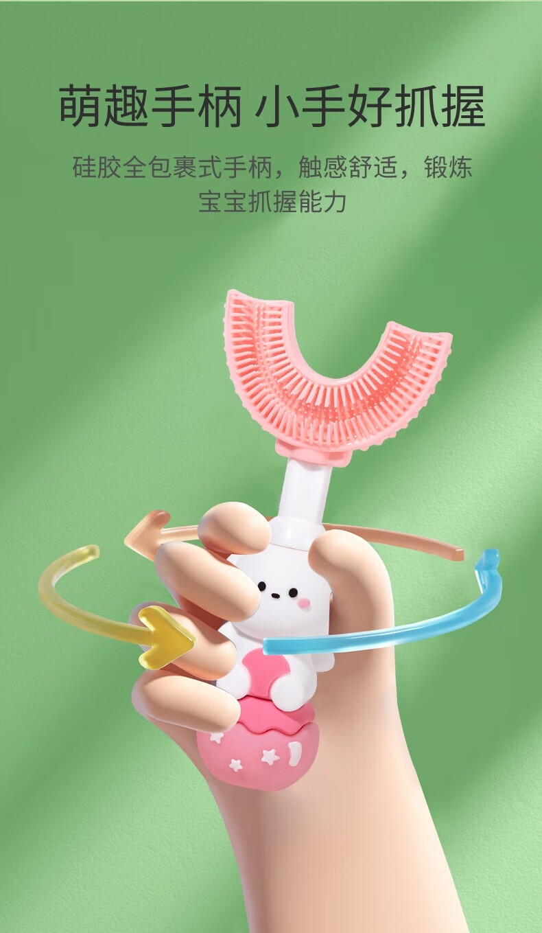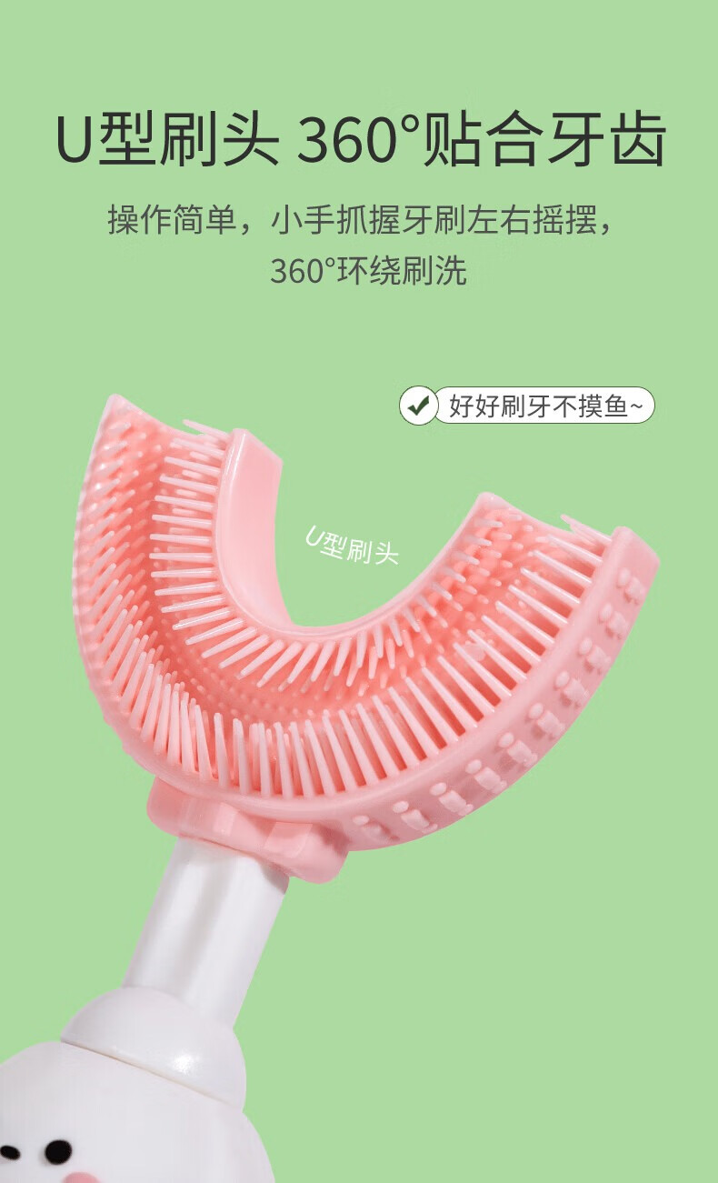 煦凛日本儿童u型牙刷1-2-3-4-6-8岁以上硅胶婴刷牙神器软毛宝宝专用 (3-10岁)天蓝色+洗漱杯+慕斯