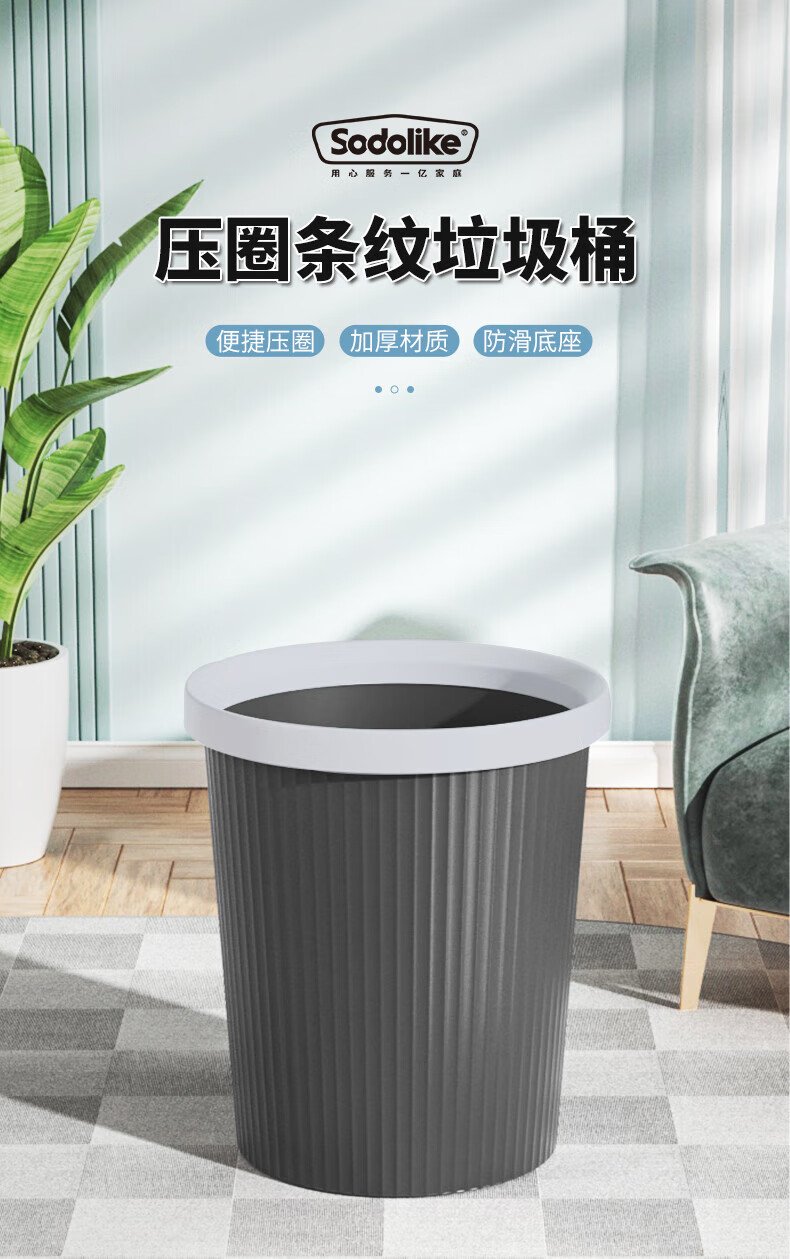 Sodolike 尚岛 压圈垃圾桶环保分类塑料垃圾篓11L 家用厨房卫生间办公