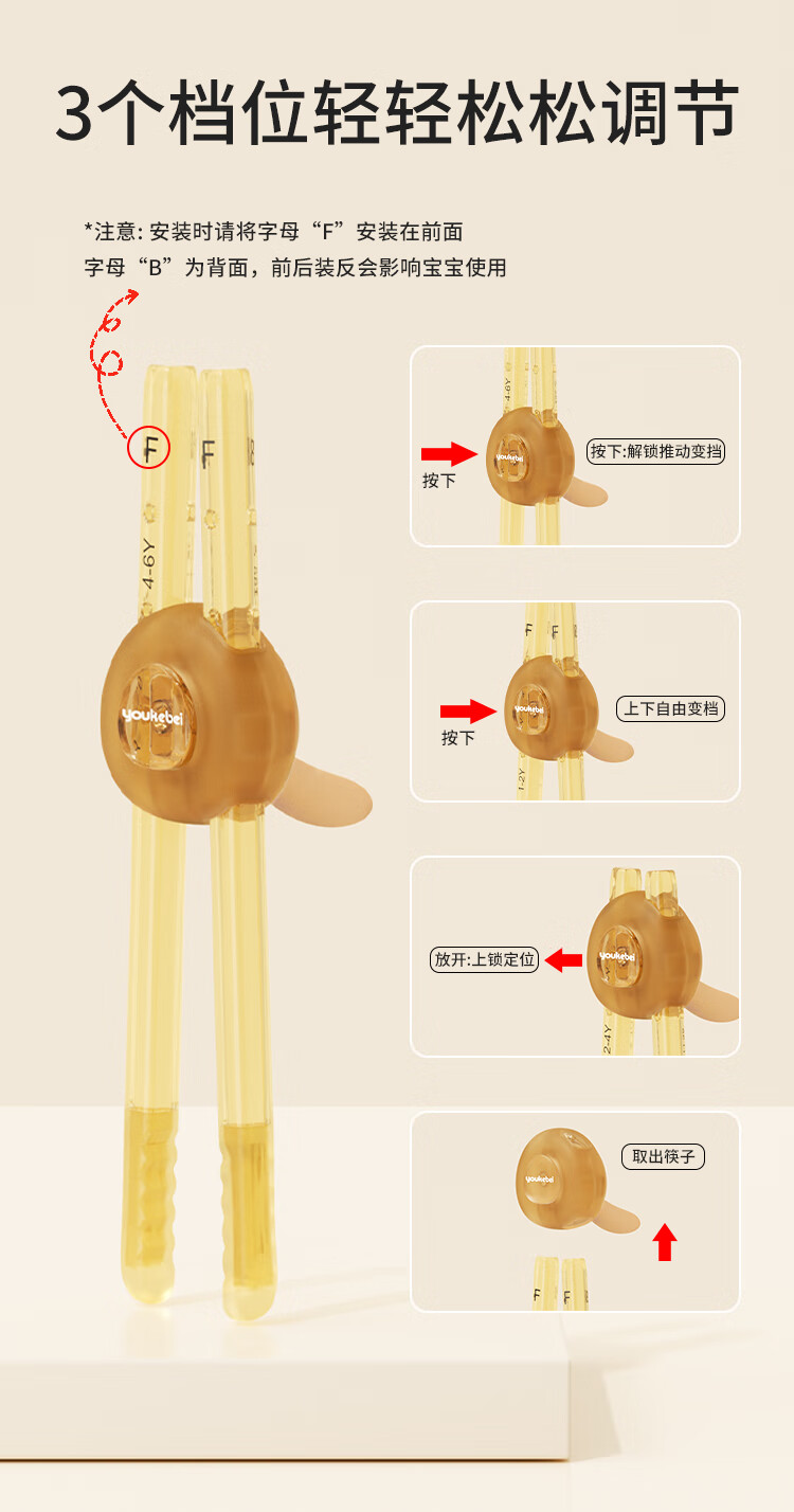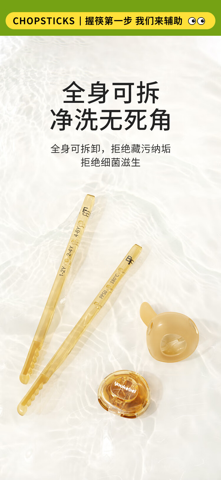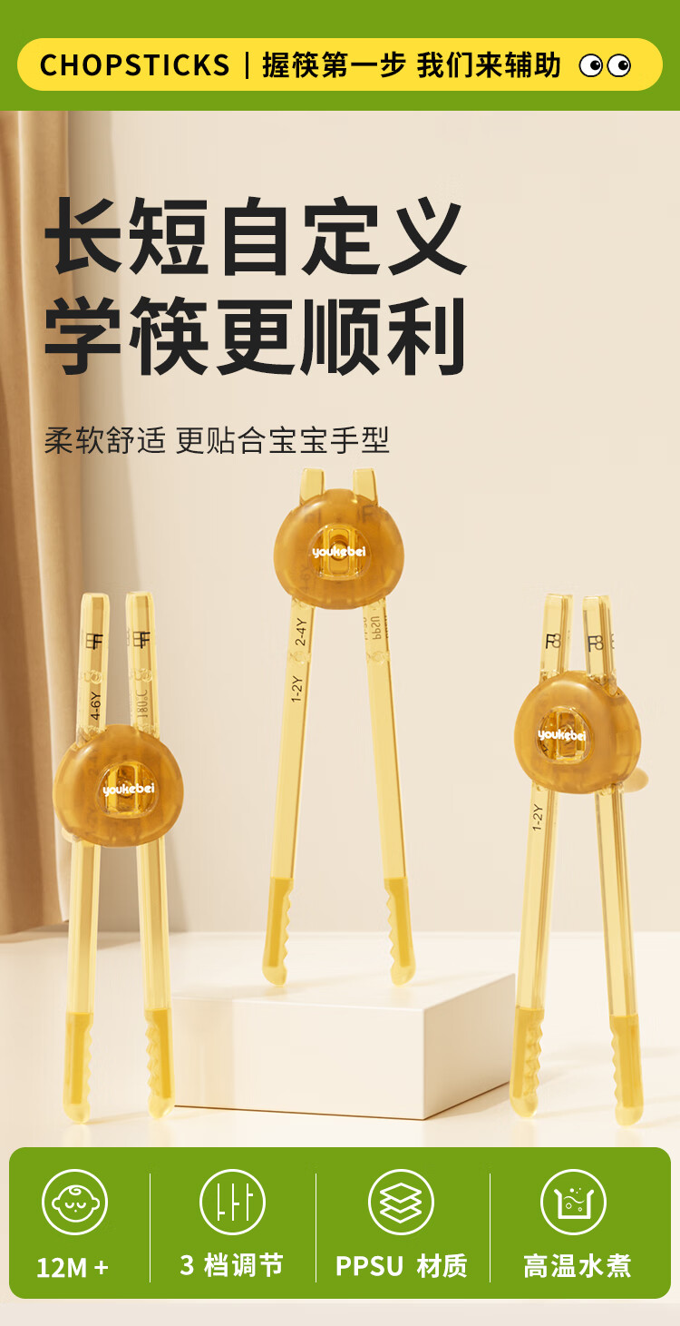 COOKSS儿童筷子训练筷2-3-6岁虎口学习筷二段PPSU宝宝家用儿童餐具
