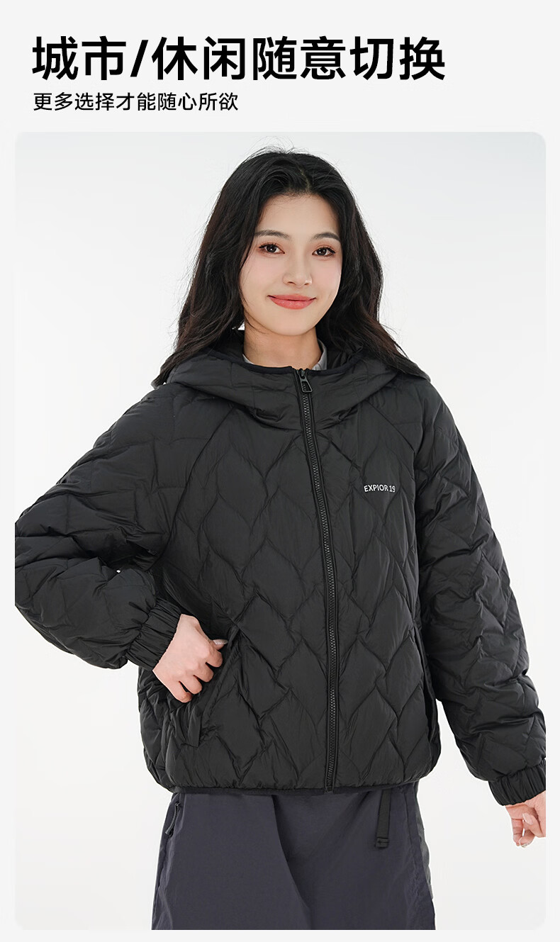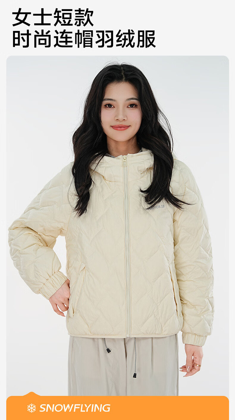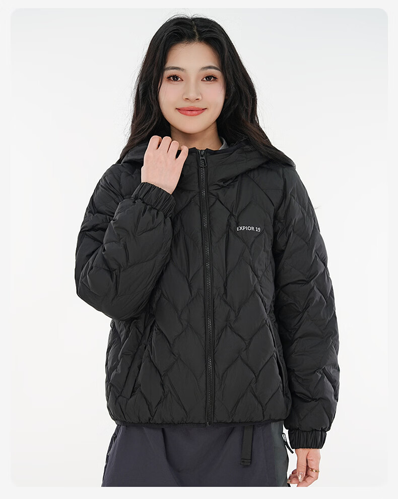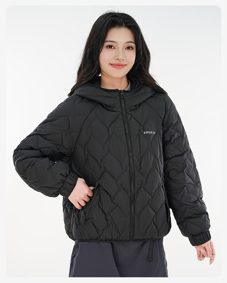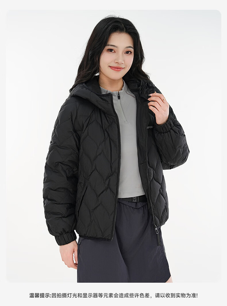 雪中飞连帽轻薄羽绒服女短款2026年新款时尚休闲轻便百搭秋冬保暖外套 黑色 160 160/84A
