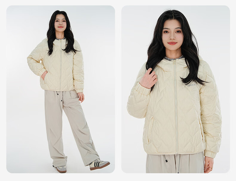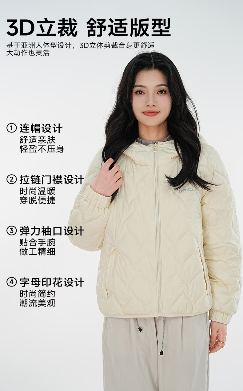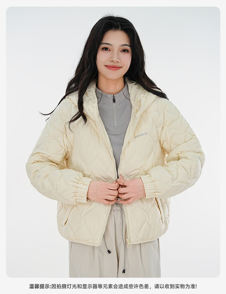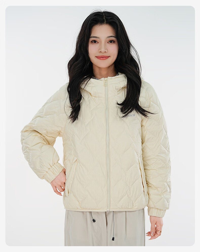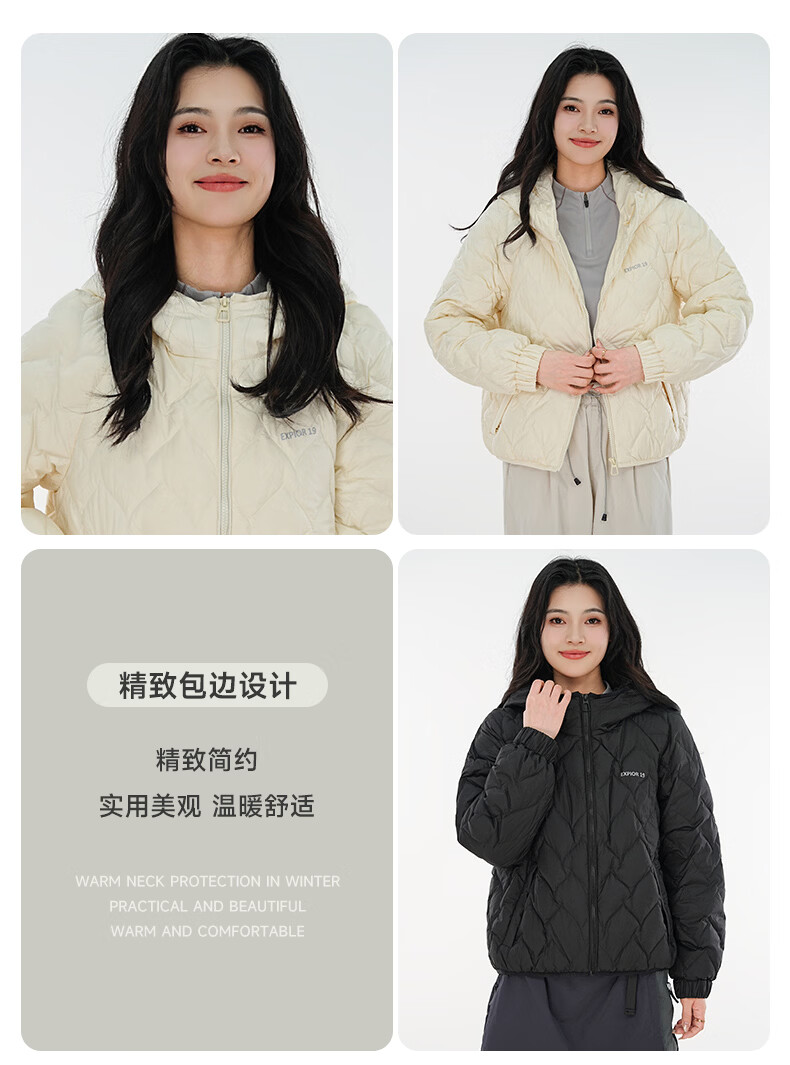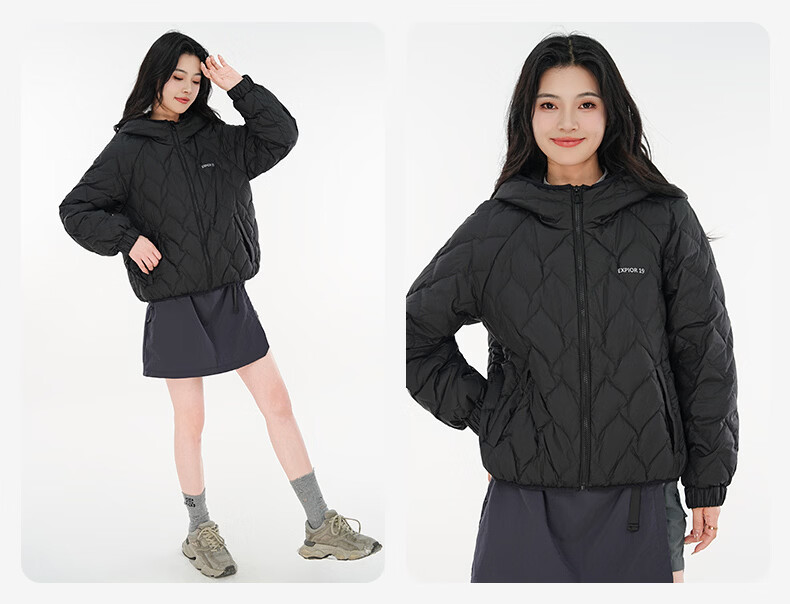 雪中飞连帽轻薄羽绒服女短款2026年新款时尚休闲轻便百搭秋冬保暖外套 黑色 160 160/84A