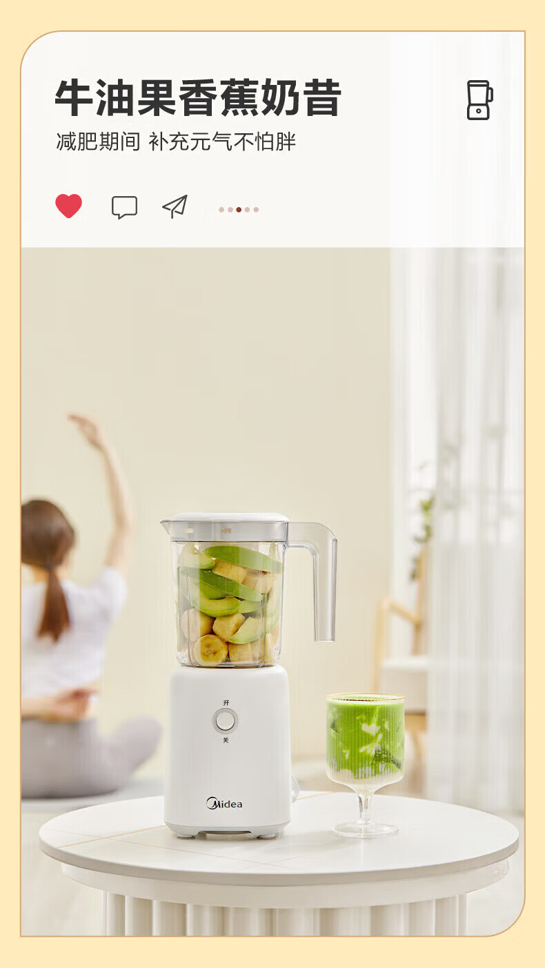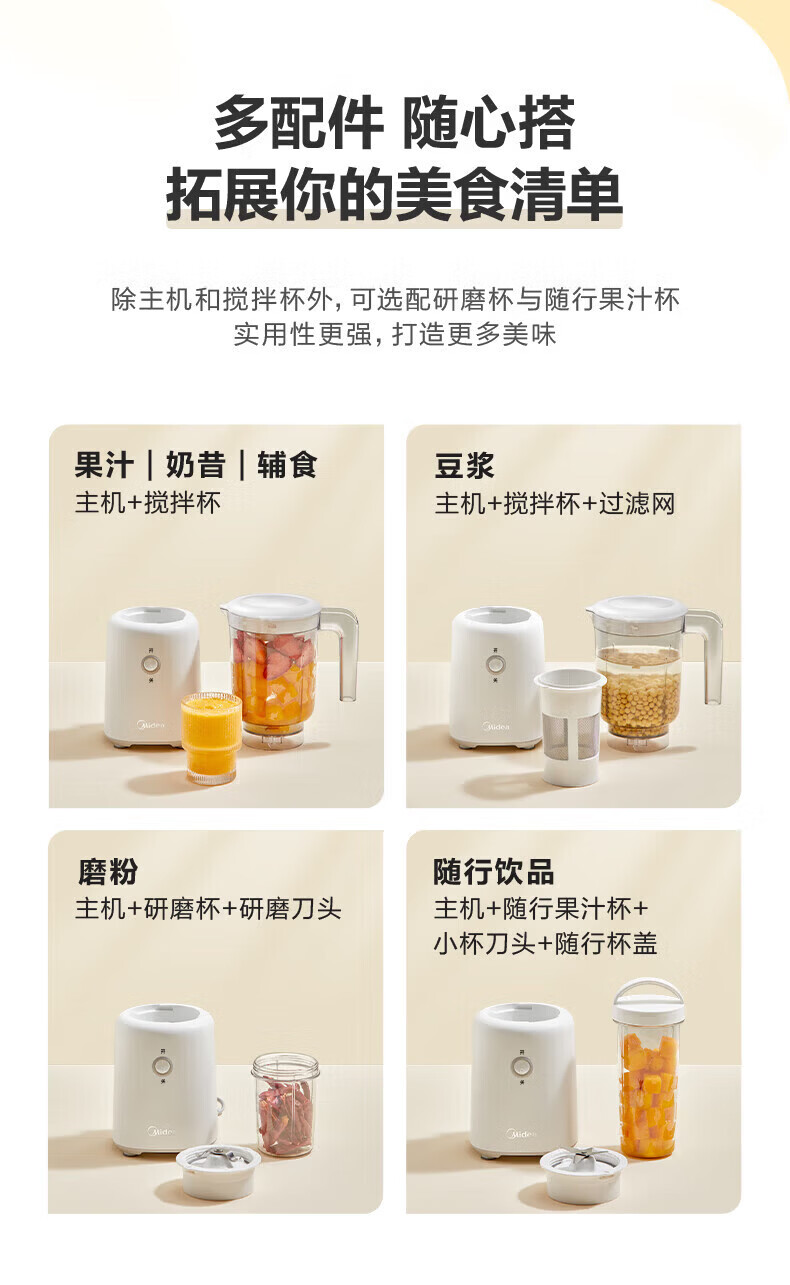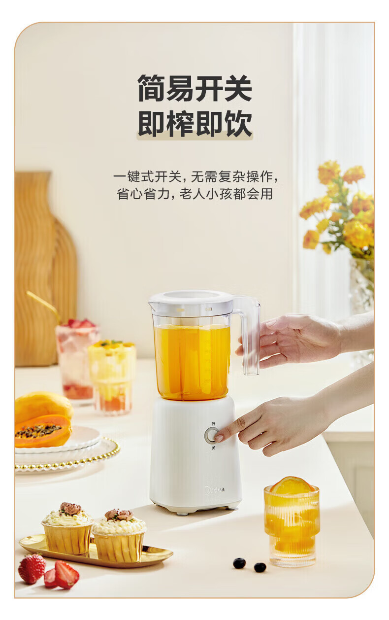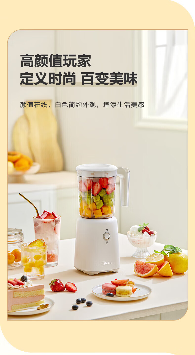 美的(Midea)榨汁机便携式榨汁机多功能家用养生料理机婴儿辅食机果汁机搅拌机 精钢双刃低音低噪